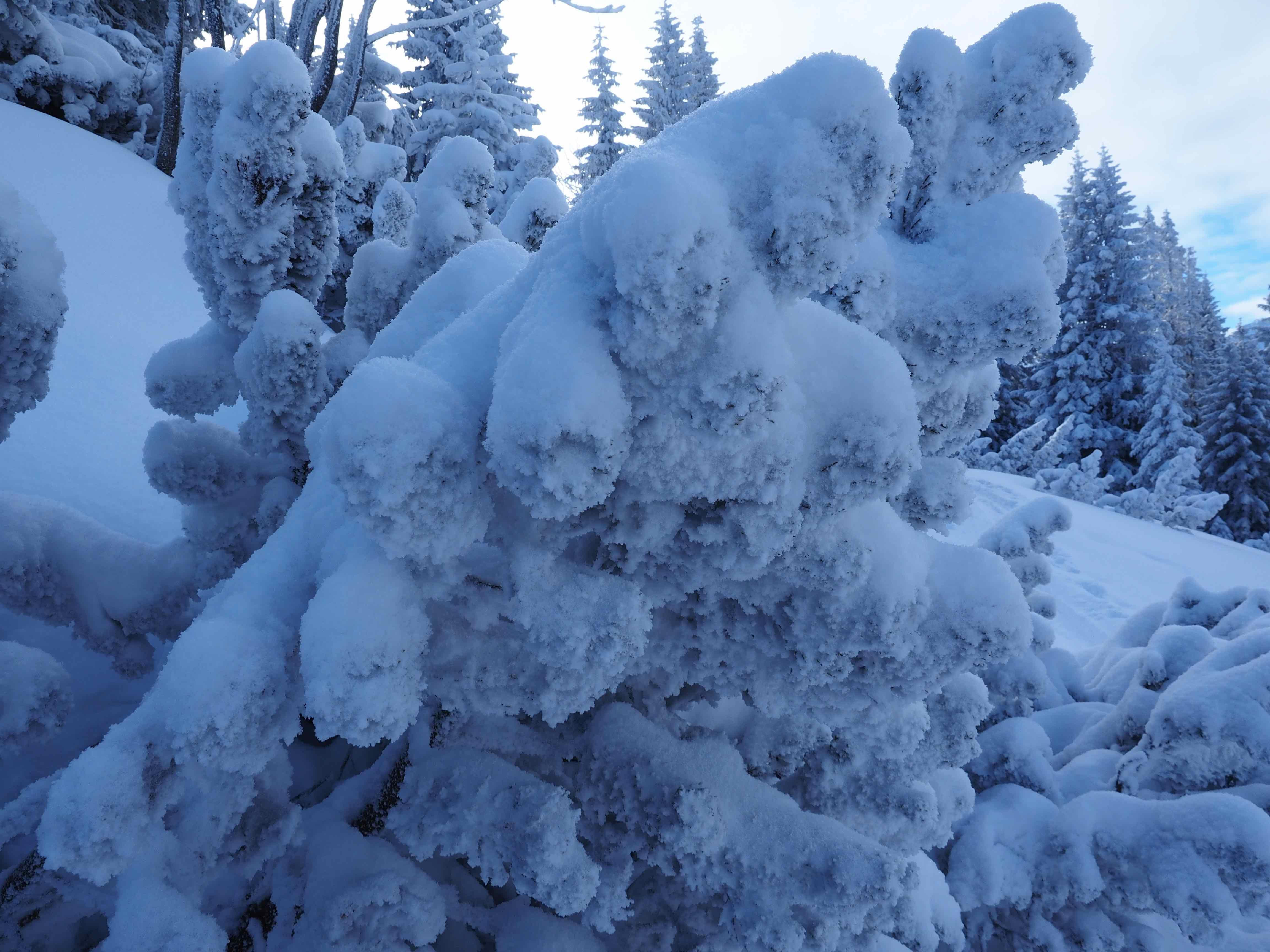 Schnee: Champagner Powder: Beim Ausgangspunkt gabs davon nur ca. 15 cm, dann ansteigend auf 30 cm. Altschneeunterlage erst ab ca. 1200 HM. Oben perfekte Abfahrt bei traumhaften Bedingungen. Westflanke zweimal runter.