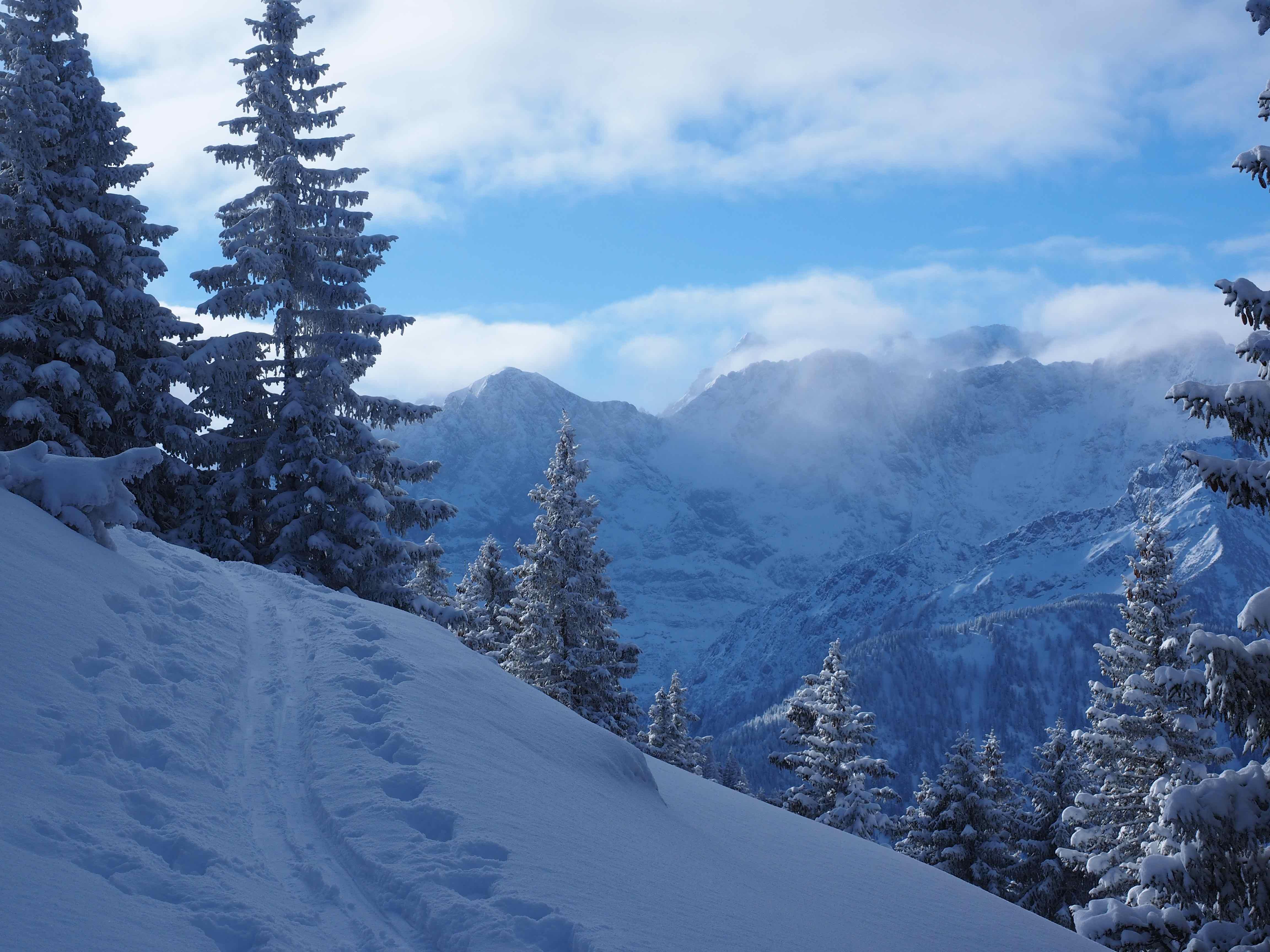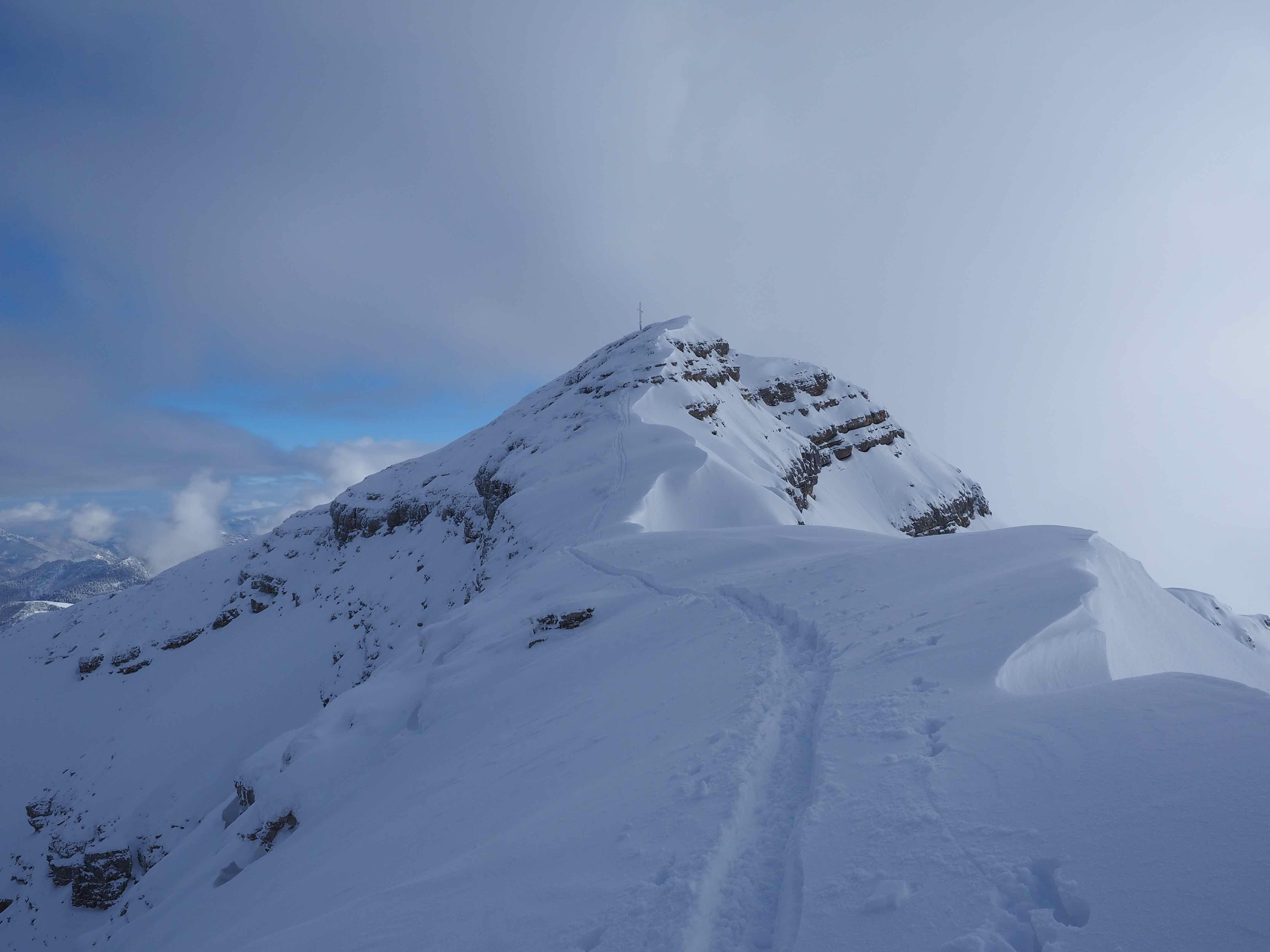 Wetter: Anfangs heiter, dann zunehmend sonnig. Kein Wind. Im Tal –4 °C. Perfekte Tourenbedingungen.