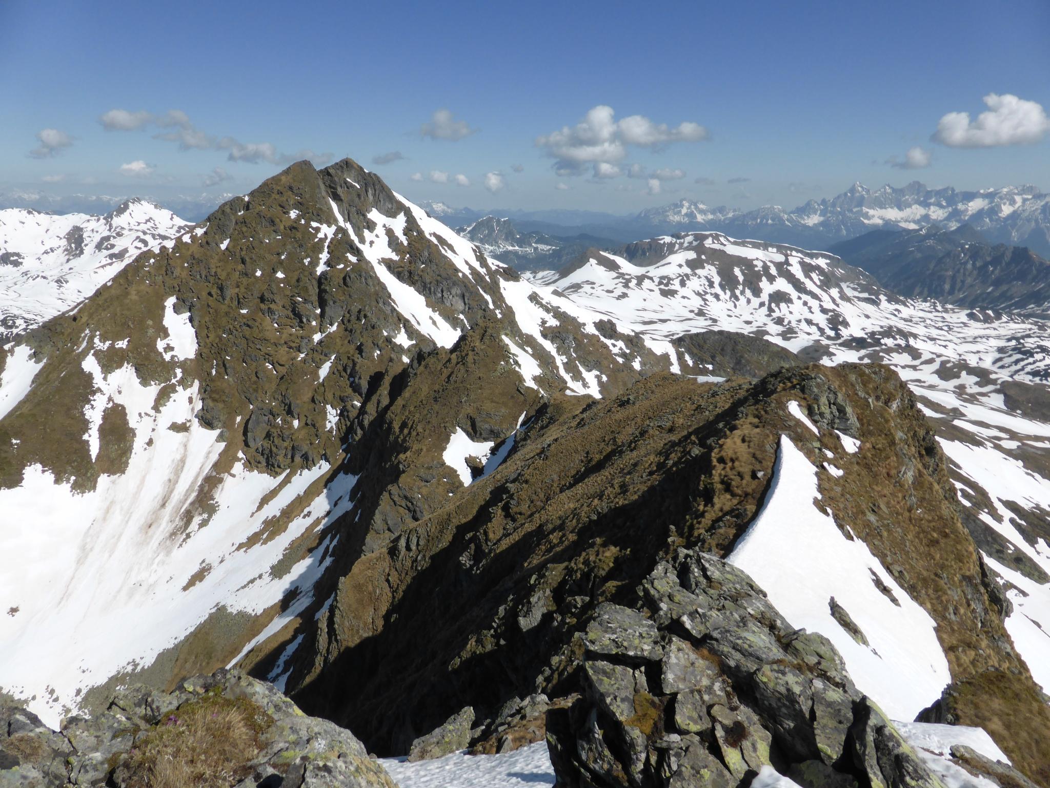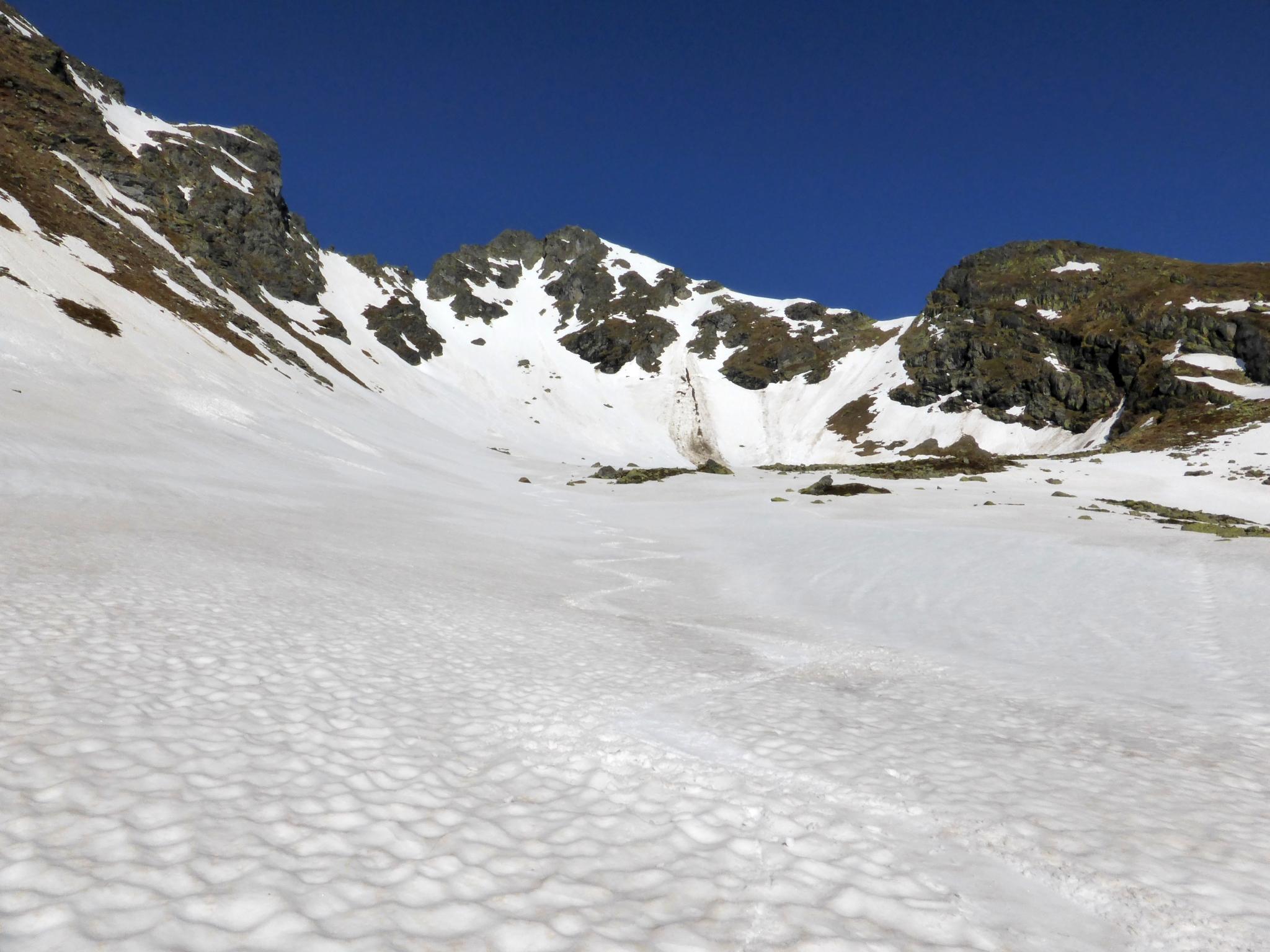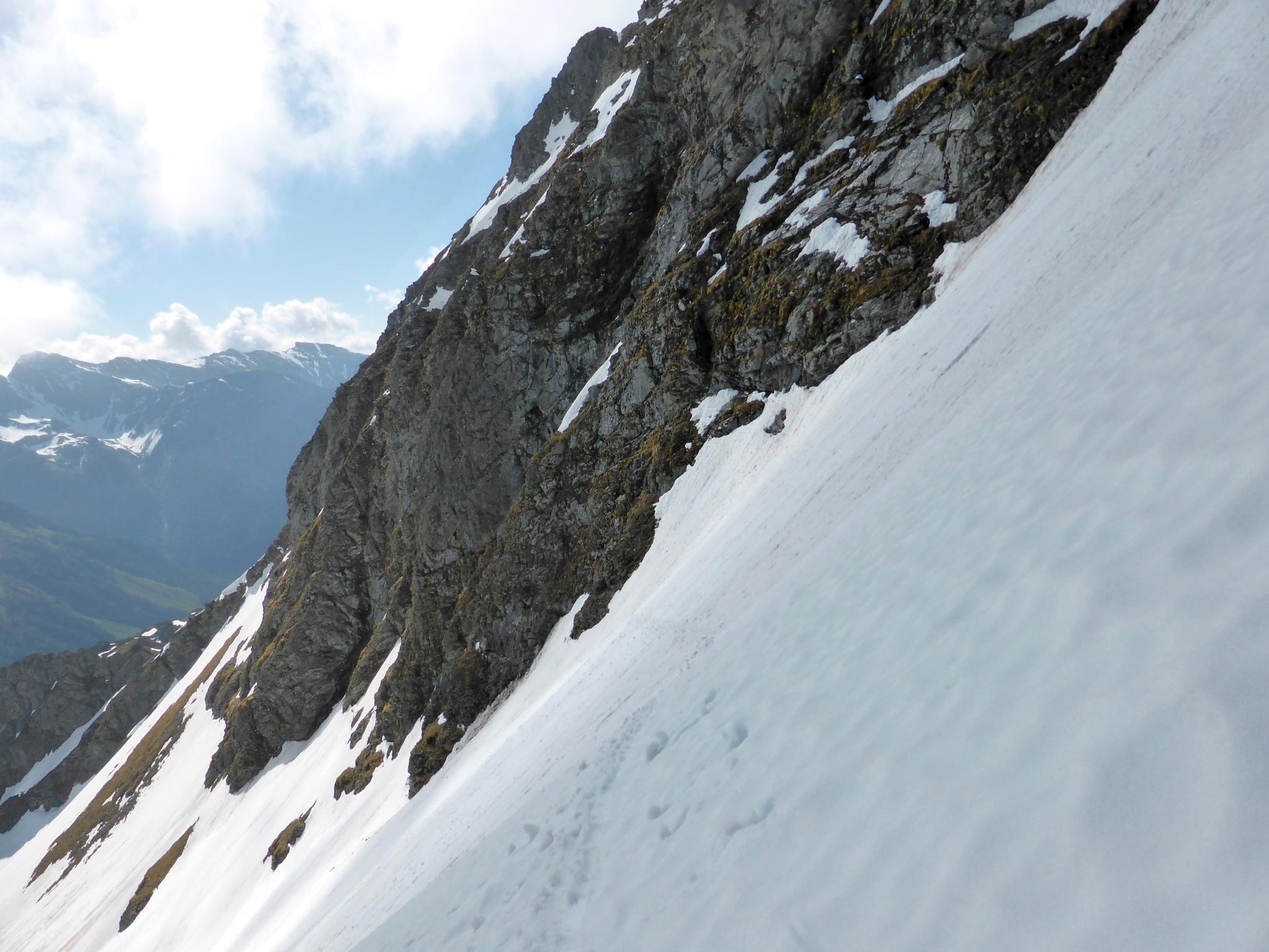 Allgemeine Verhältnisse, Schnee: Schattseitig hart gefrorener Firn, tagsüber Sommerfirn, in der Pernerkopf Nordostflanke bei der Abfahrt abrutschend