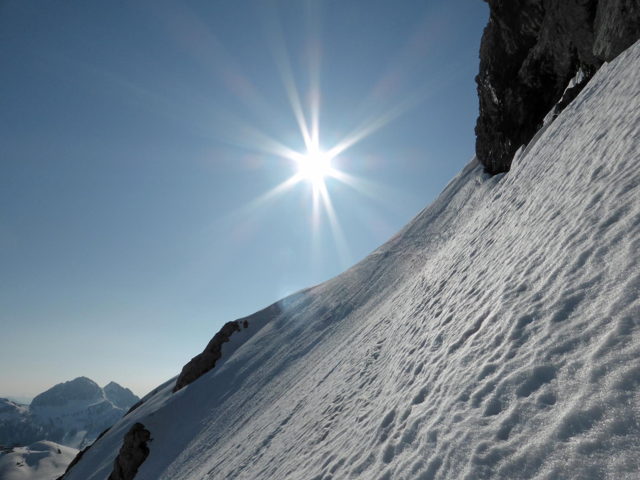 Allgemeine Verhältnisse, Schnee: Durch die nächtliche Abstrahlung beim Aufstieg pickelhart gefrorener Schnee, der bei der Abfahrt vom Rosskofel in der Querung immer noch hart war, sonst tagsüber guter Firn, auch noch am Nachmittag am Gartnerkofel