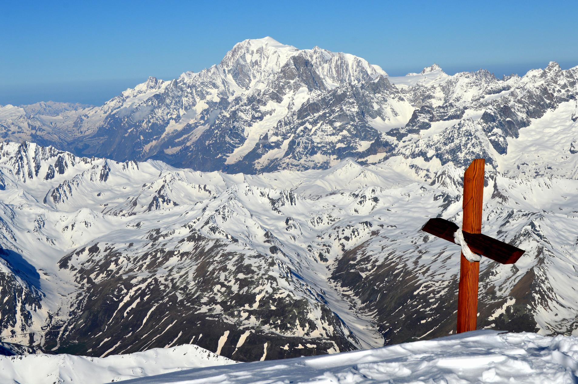 Am Gipfel des Combin de Valsorey - Im Hintergrund der Mont Blanc