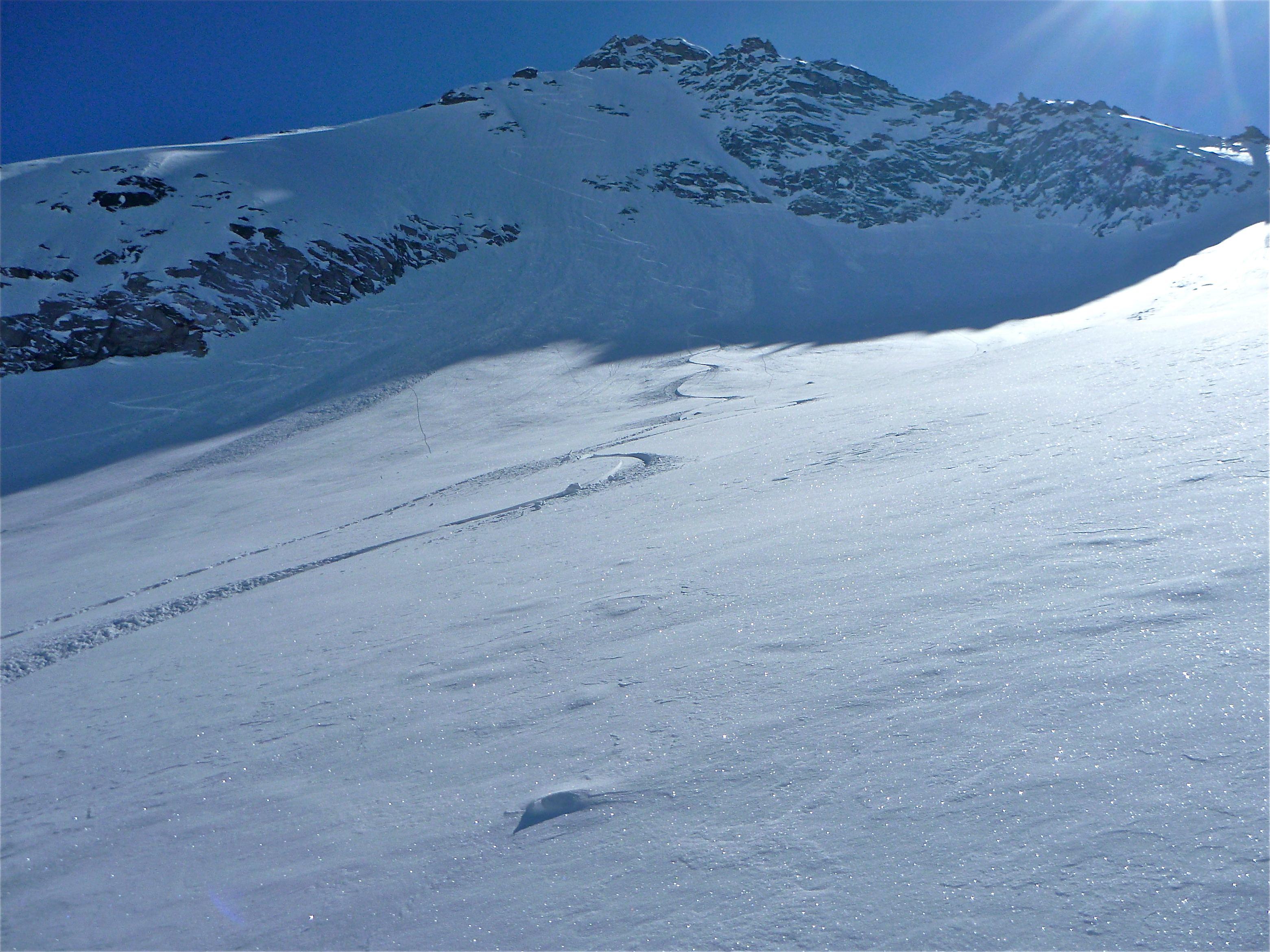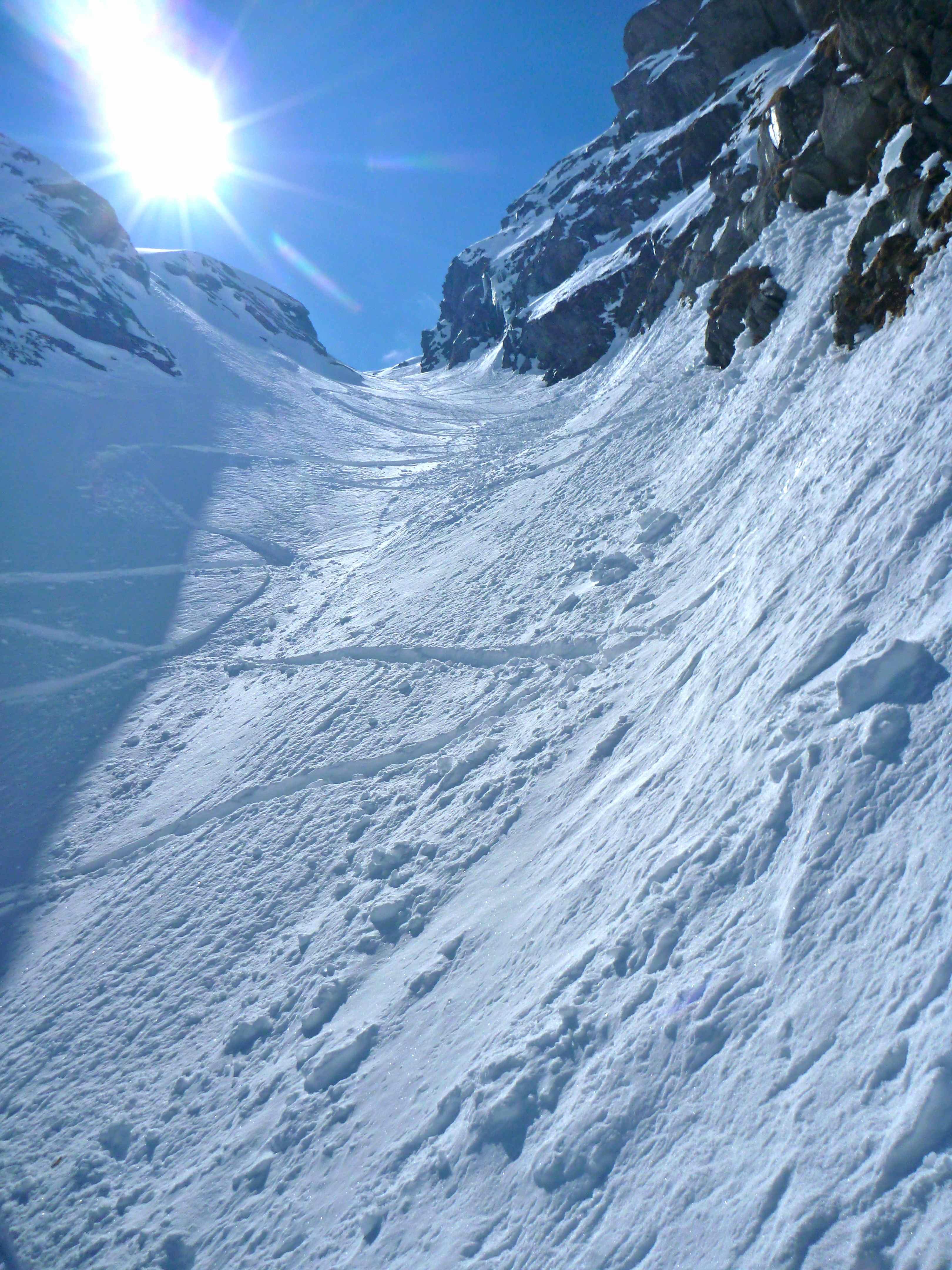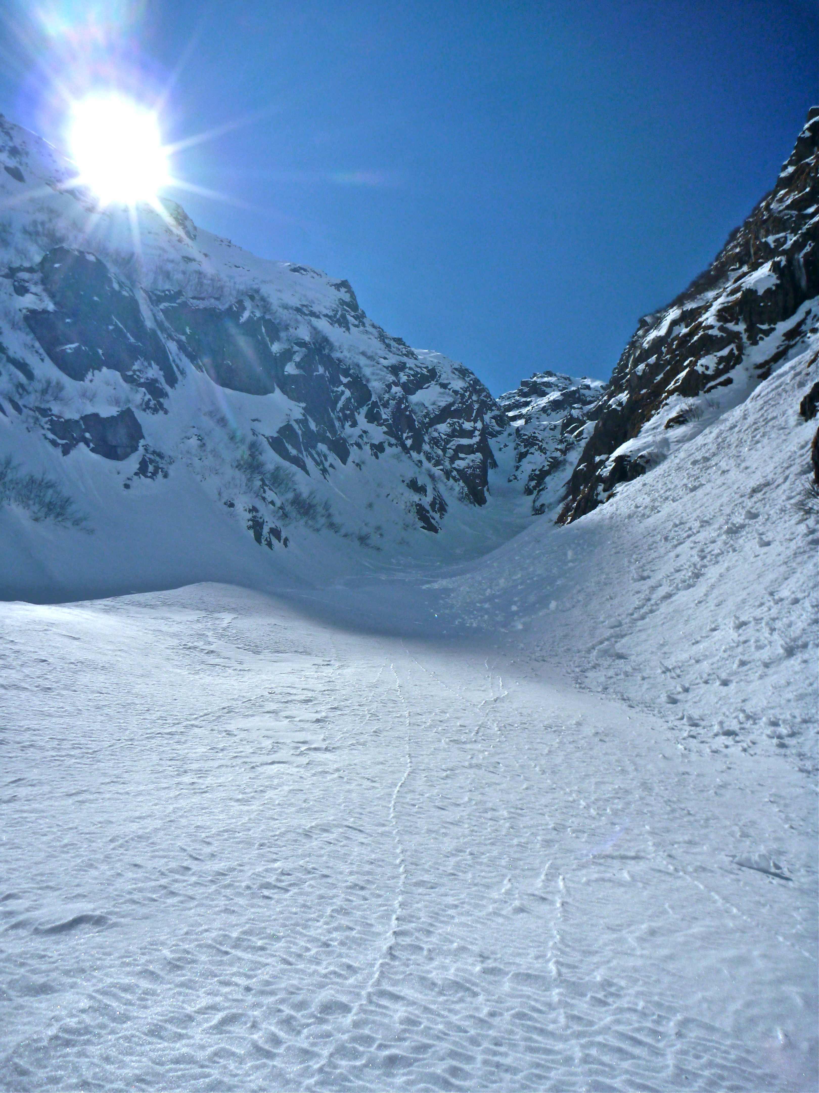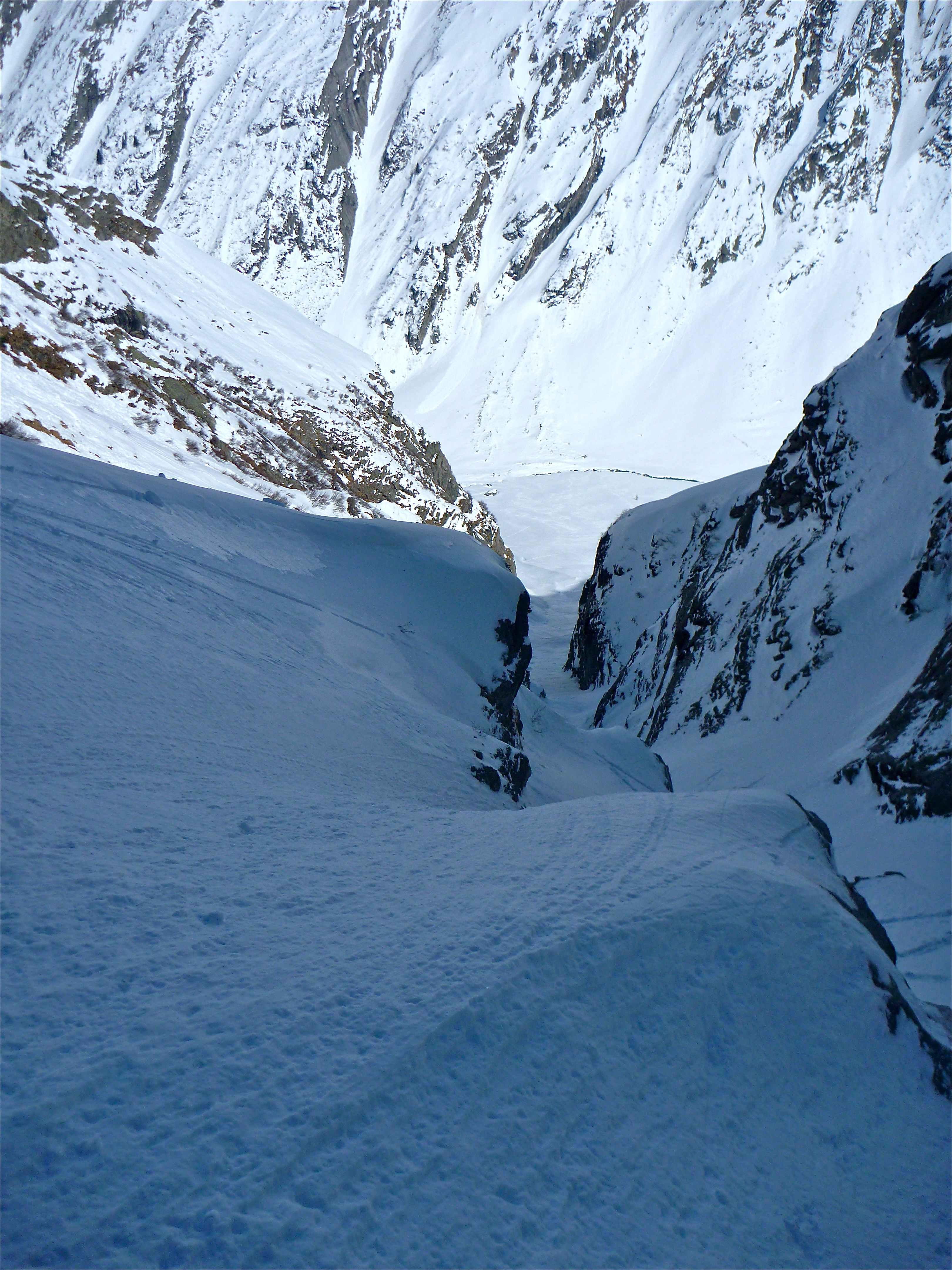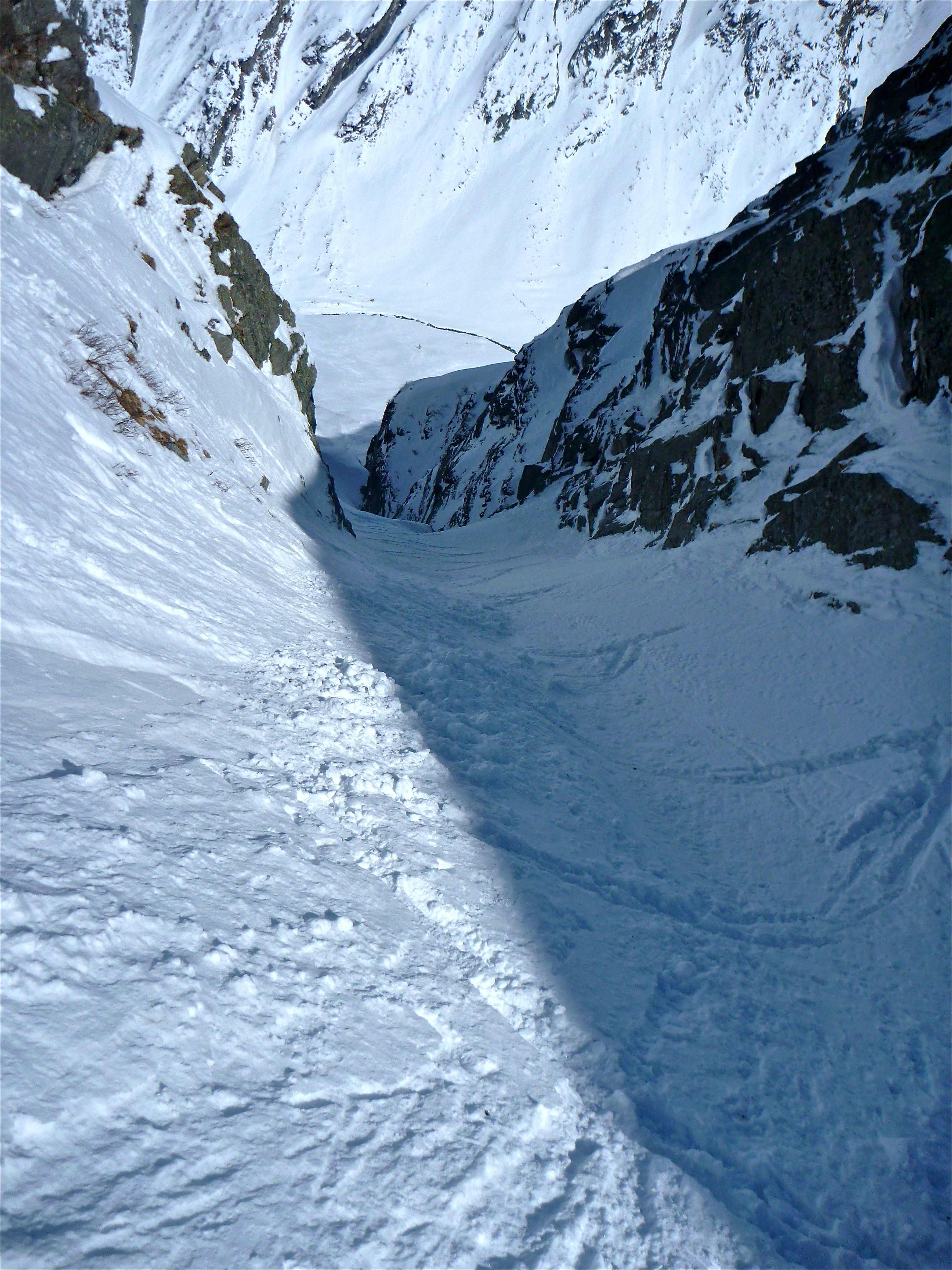 Die Klamm war bis auf eine kurze sehr steile Stelle angenehm zu gehen/fahren, landschaftlich der Hammer! Die N-Wand bot bis auf 10-15hm, die mich min. 30min. Wühlerei und Nerven gekostet haben, tollen Stapfschnee.