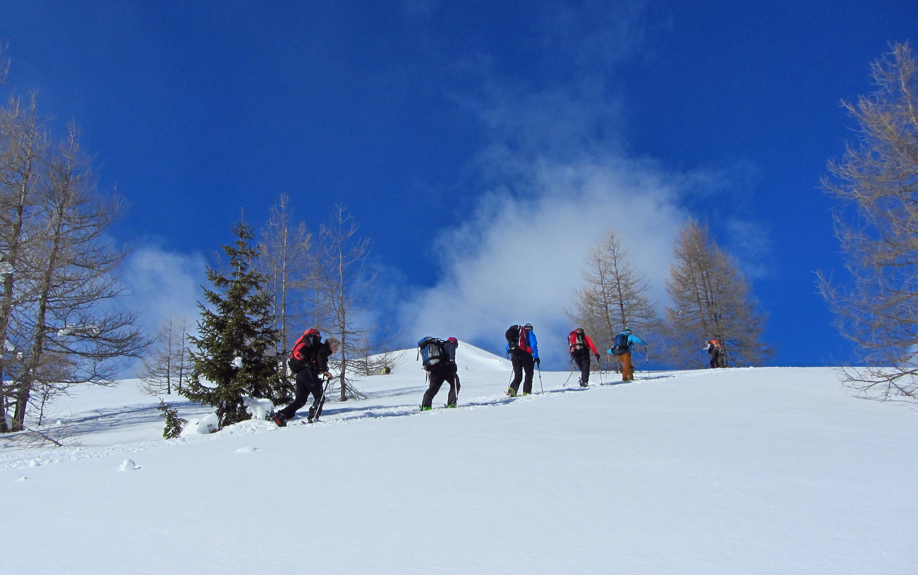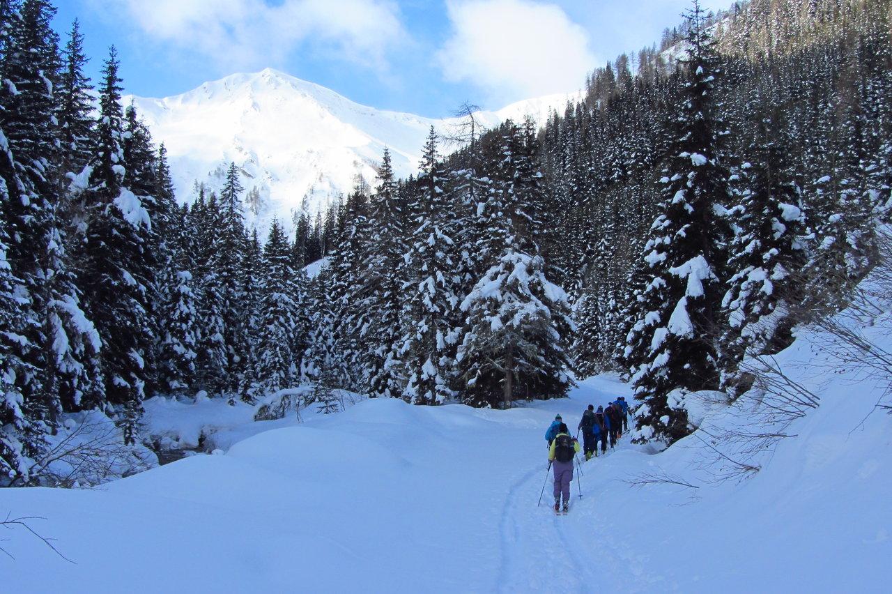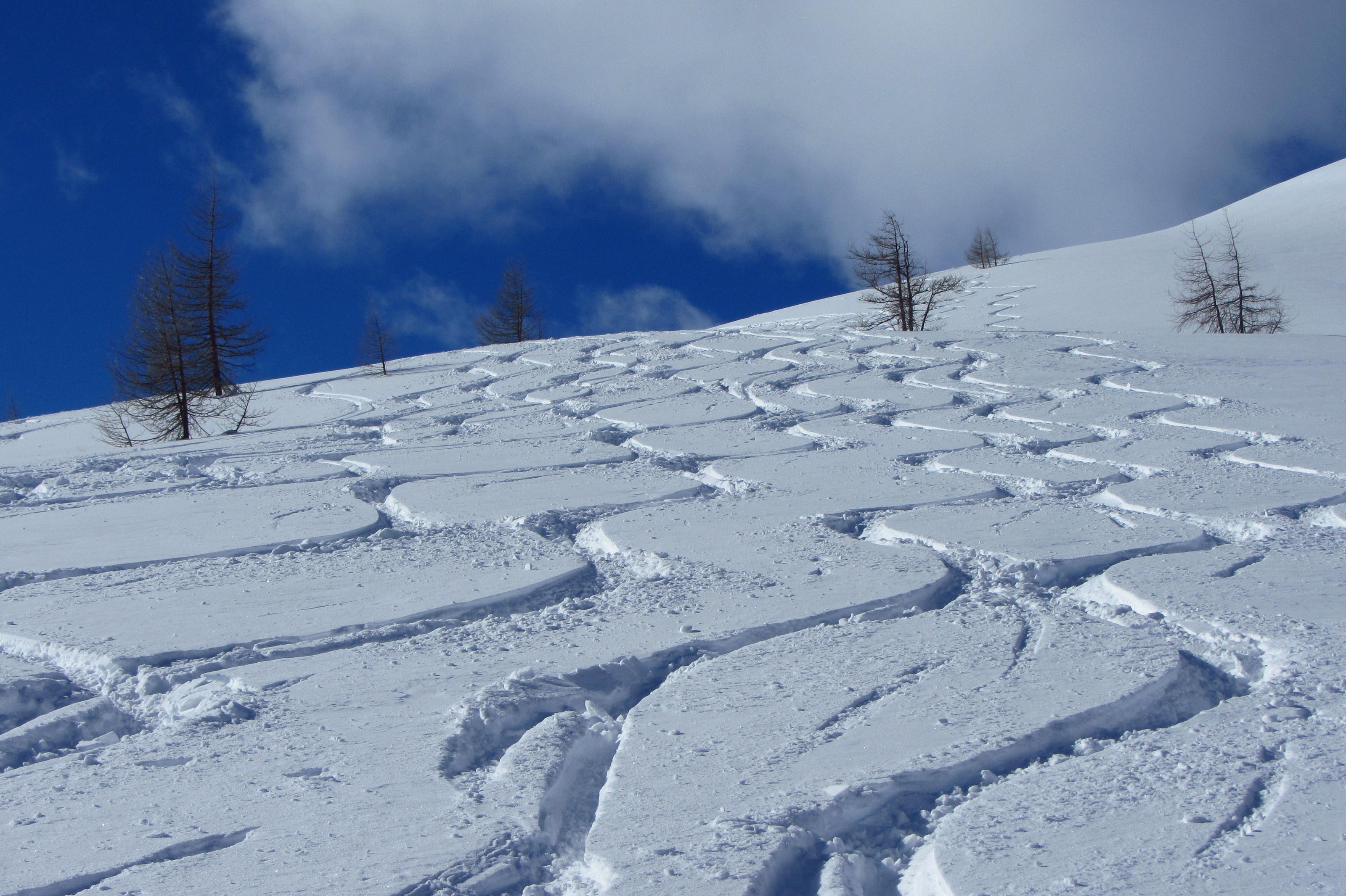 Auftakt unserer Tourentage in Zederhaus bei blauem Himmel und Pulver in Mengen, die man sich nördlich des Alpenhauptkamms dzt. nur erträumen kann. Der zeitweise kräftige NW-Wind vertrieb uns zwar rasch vom Gipfel, die Schneequalität in der Abfahrt war dagegen erfreulicherweise kaum beeinträchtigt. Ein spontan abgegangenes Schneebrett auf ca. 2150 m in der ostexponierten Mulde neben unserer Abfahrt gemahnte jedenfalls zu entsprechend überlegter Spurwahl, was aber bei den großzügigen Hängen mit viel Platz für uns alle nicht schwer fiel. Die abschließende Schussfahrt ab der Dicktlalm oberhalb des Nahendfeldbachs zurück zum Ausgangspunkt war diesmal so materialschonend und frei beschwingt wie schon lang nicht mehr.