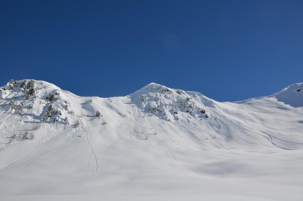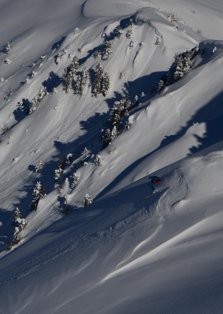 Heute wieder mal etwas Freeriden im Thurntaler Gebiet. Gestern hat es wieder einiges geschneit, jedoch muss die Nacht leider auch der Wind aktiv gewesen sein. Vor allem in östlicher bis NO-licher Ausrichtungen konnte man einige Minni Schneebretter, welche durch Selbstauslösungen abgegangen sind beobachten. Unterhalb der Waldgrenze fanden wir in allen Expositionen perfekten spannungsfreien Pulverschnee, welcher aufgrund der steigend Beliebtheit der Osttiroler Schigebiete aber auch schon langsam Mangelware wird, bzw. schon stark durchpflügt ist.