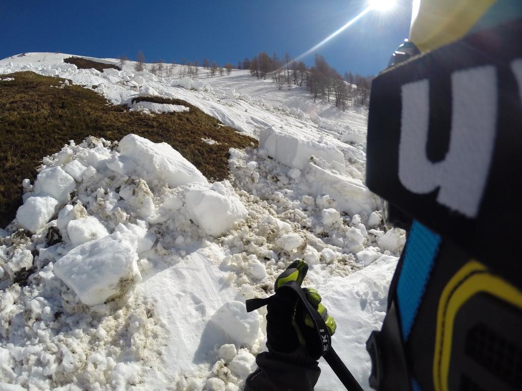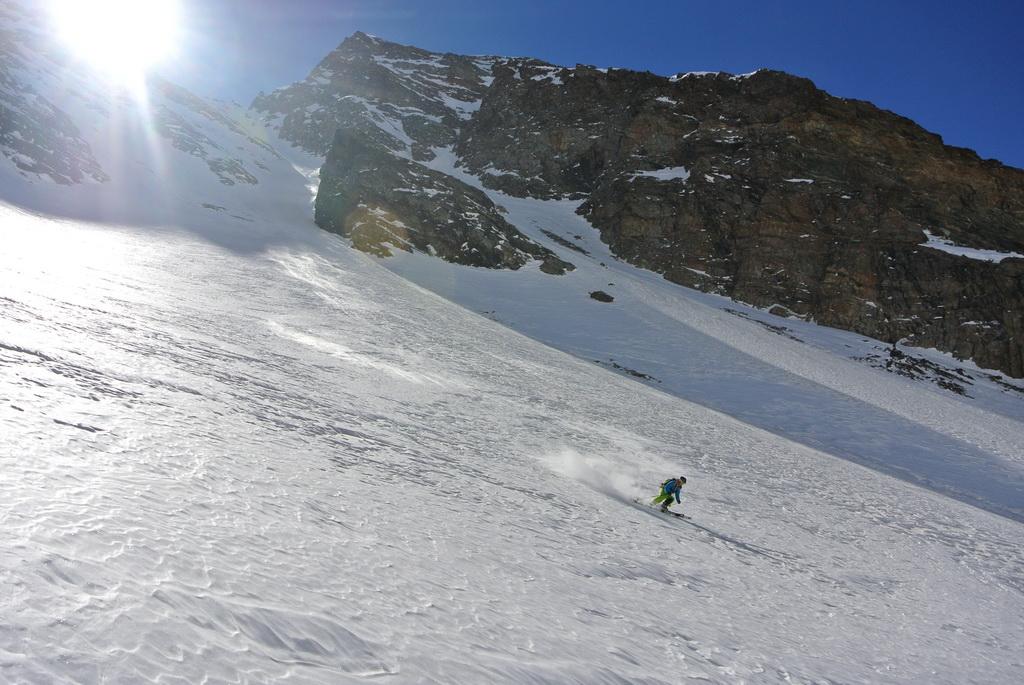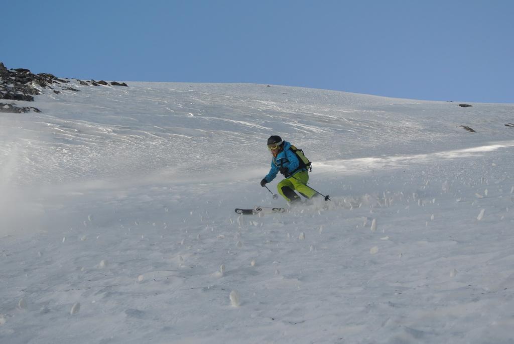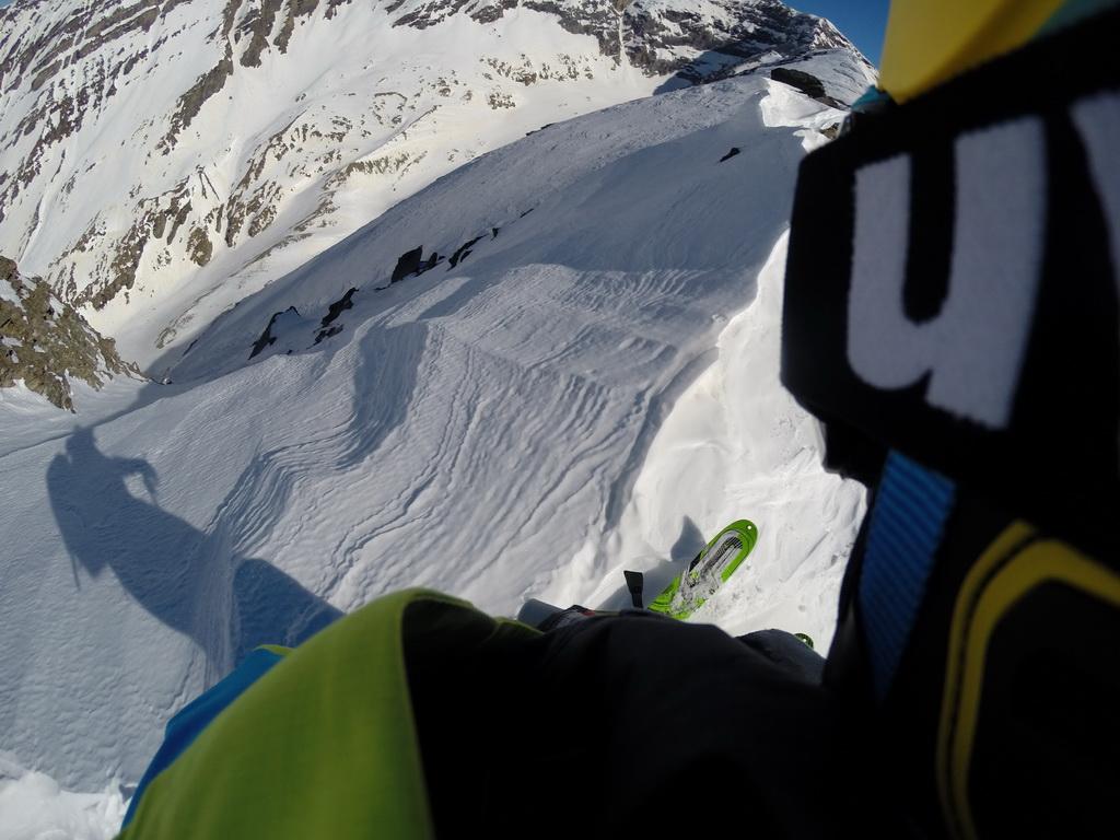 Heute war wieder etwas Schifahren mit Lifthilfe angesagt. Die Abfahrt über eine steile Nordrinne hinunter ins Großfleißtal war hart, windgepresst und gut griffig. Auch hier würde ich die Lage Nordseitig als stabil bezeichnen. Ostseitig haben wir auf einer Höhe von ca. 2100m eine ältere Gleitschneelawine, welche aus einem Westhang abgegangen ist, gequert. Ostseitig konnten wir ab dem späten Vormittag mehrere Selbstauslösungen beobachten