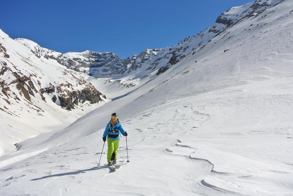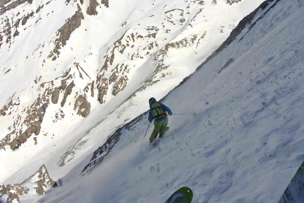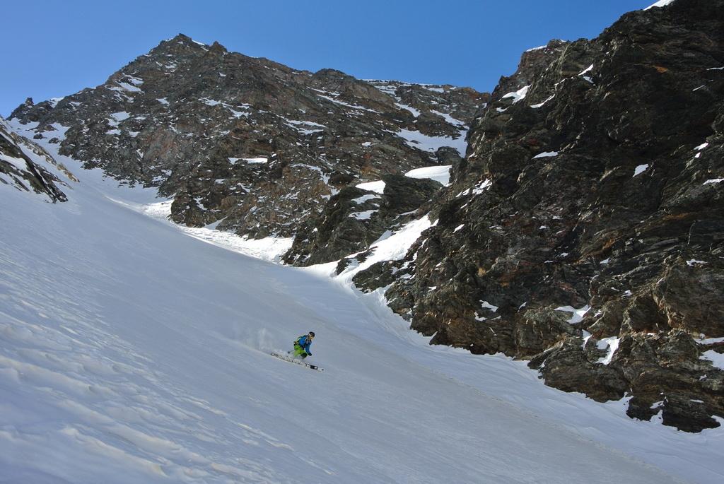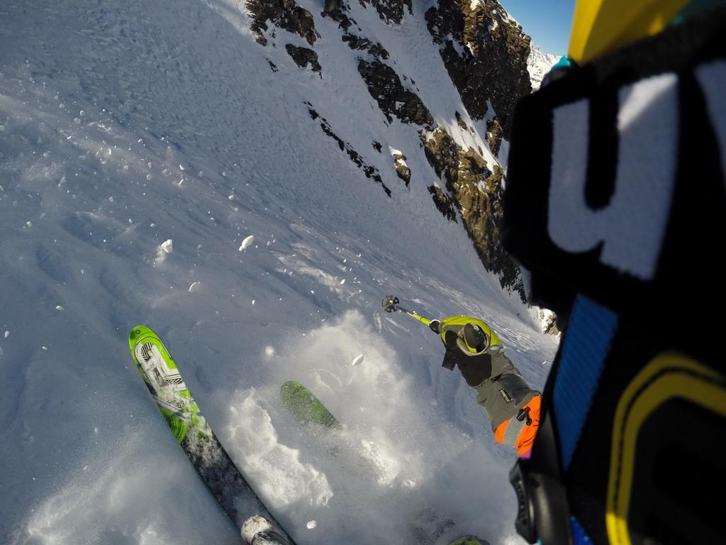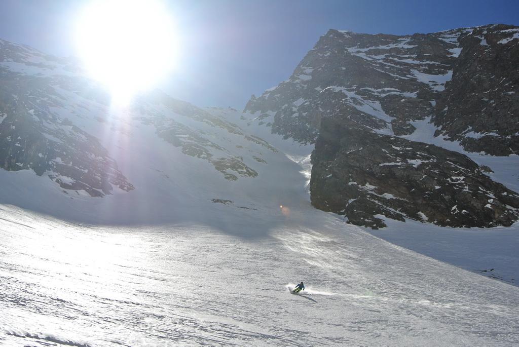 Heute war wieder etwas Schifahren mit Lifthilfe angesagt. Die Abfahrt über eine steile Nordrinne hinunter ins Großfleißtal war hart, windgepresst und gut griffig. Auch hier würde ich die Lage Nordseitig als stabil bezeichnen. Ostseitig haben wir auf einer Höhe von ca. 2100m eine ältere Gleitschneelawine, welche aus einem Westhang abgegangen ist, gequert. Ostseitig konnten wir ab dem späten Vormittag mehrere Selbstauslösungen beobachten