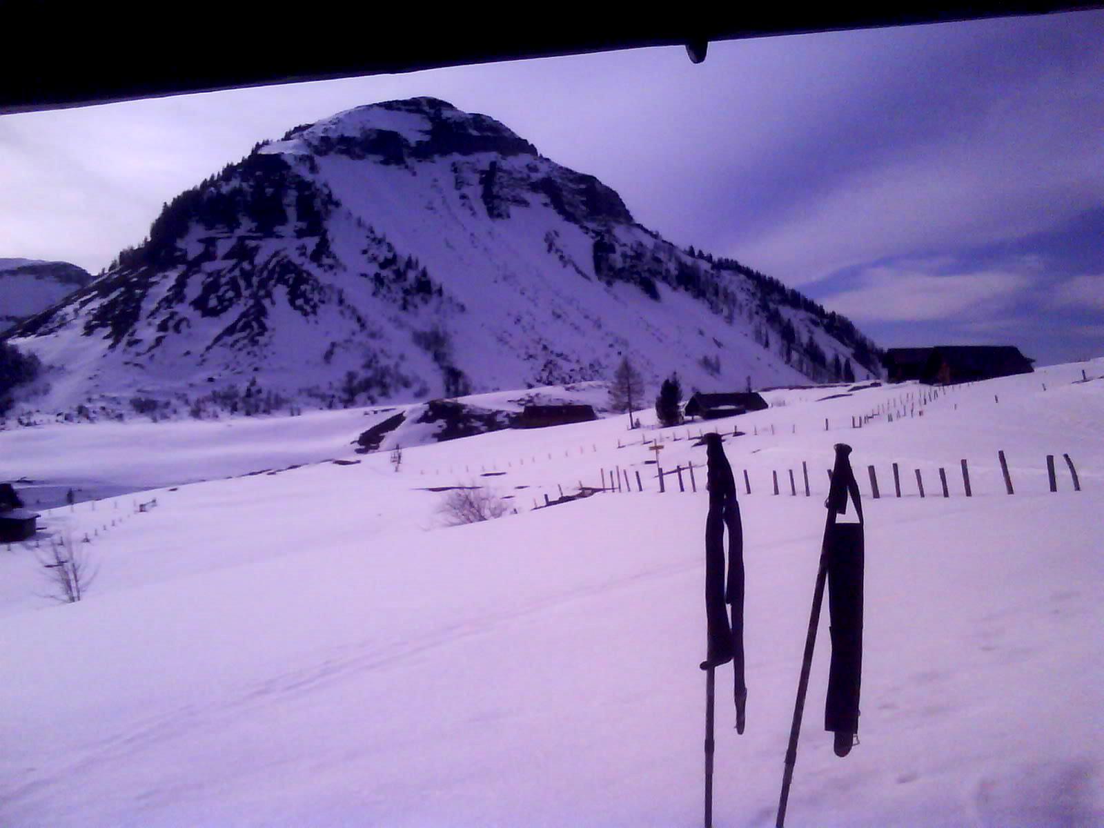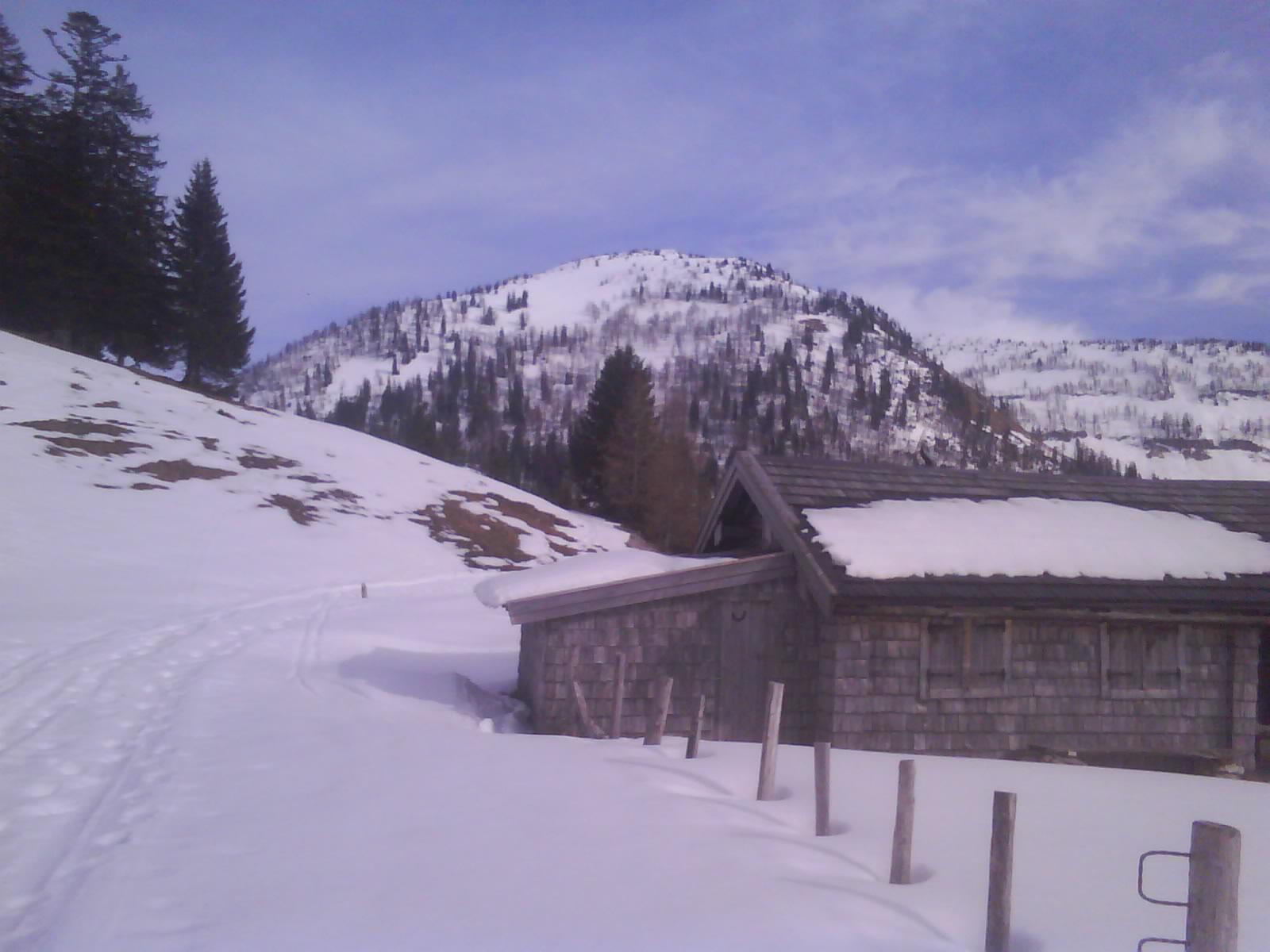 Der Zinken geht noch gut. Im Aufstieg die Schi durch den Wald getragen, geschlossene Schneedecke ab 1000m.