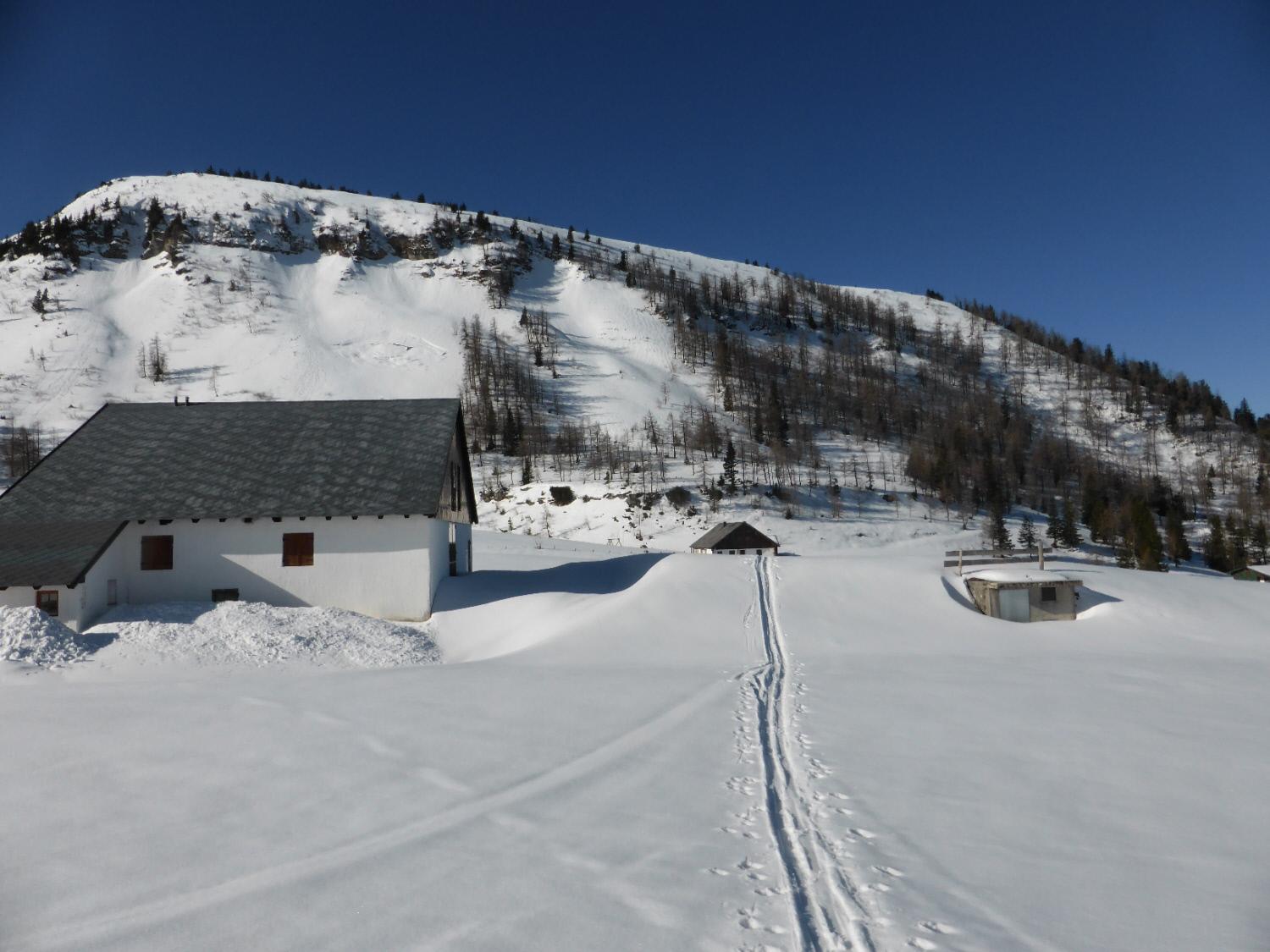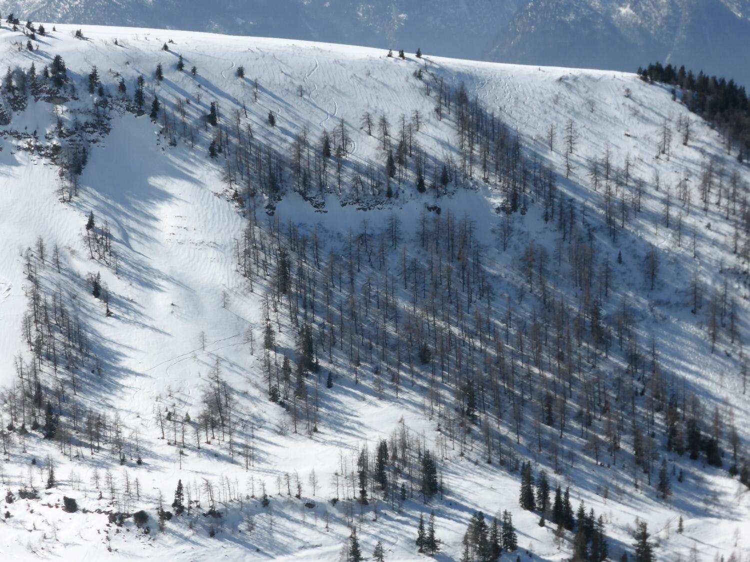 schnee: harsch, pulver, firn je nach hangausrichtung. auf grund der stellenweise schon recht "bescheidenen" schneeauflage auf dieser strecke keine lwg. die hintertrattbergstrasse ist aber von einer kleineren nassschneelawine erreicht worden.