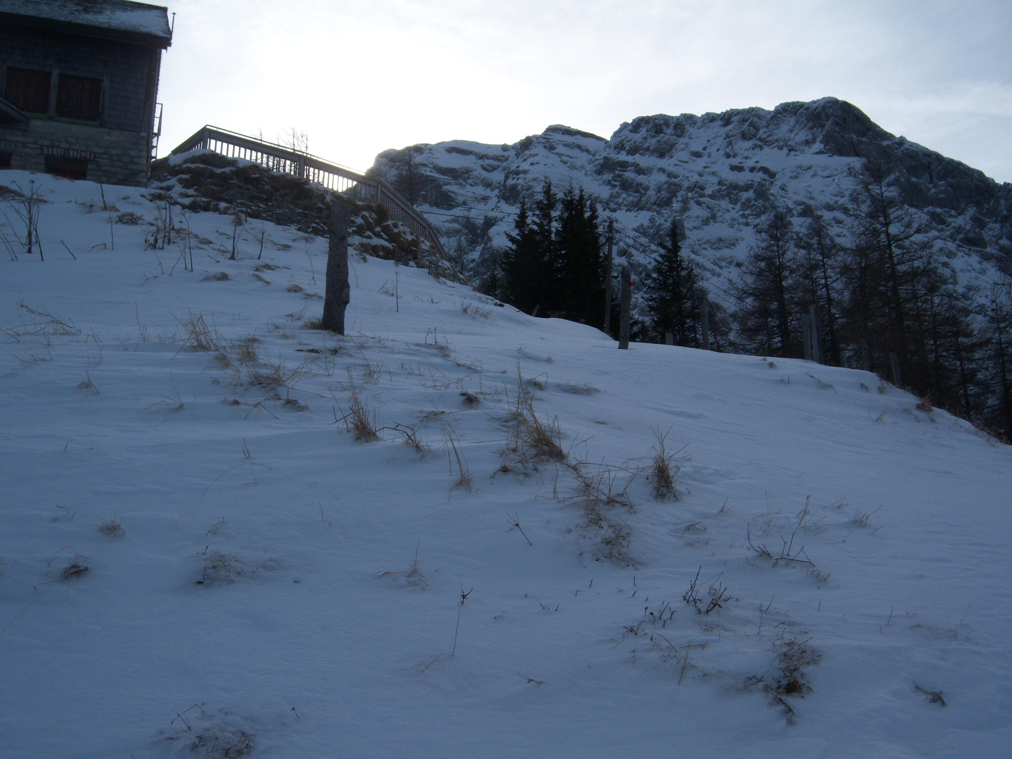 Der Westteil der Roßfeldstrasse ist von der Mautstelle bis zum Ahornkaser gesperrt. Also keine Zufahrt zur Enzian-Brennhütte. Ich bin die verschneite und gesperrte Strasse vom Ahornkaser hinuntergefahren und dann zum Purtschellerhaus aufgestiegen. Zurück über den Eggersattel. Das Ganze ist nicht besonders lohnend, wenn noch 10 cm Neuschnee kommen geht es.
