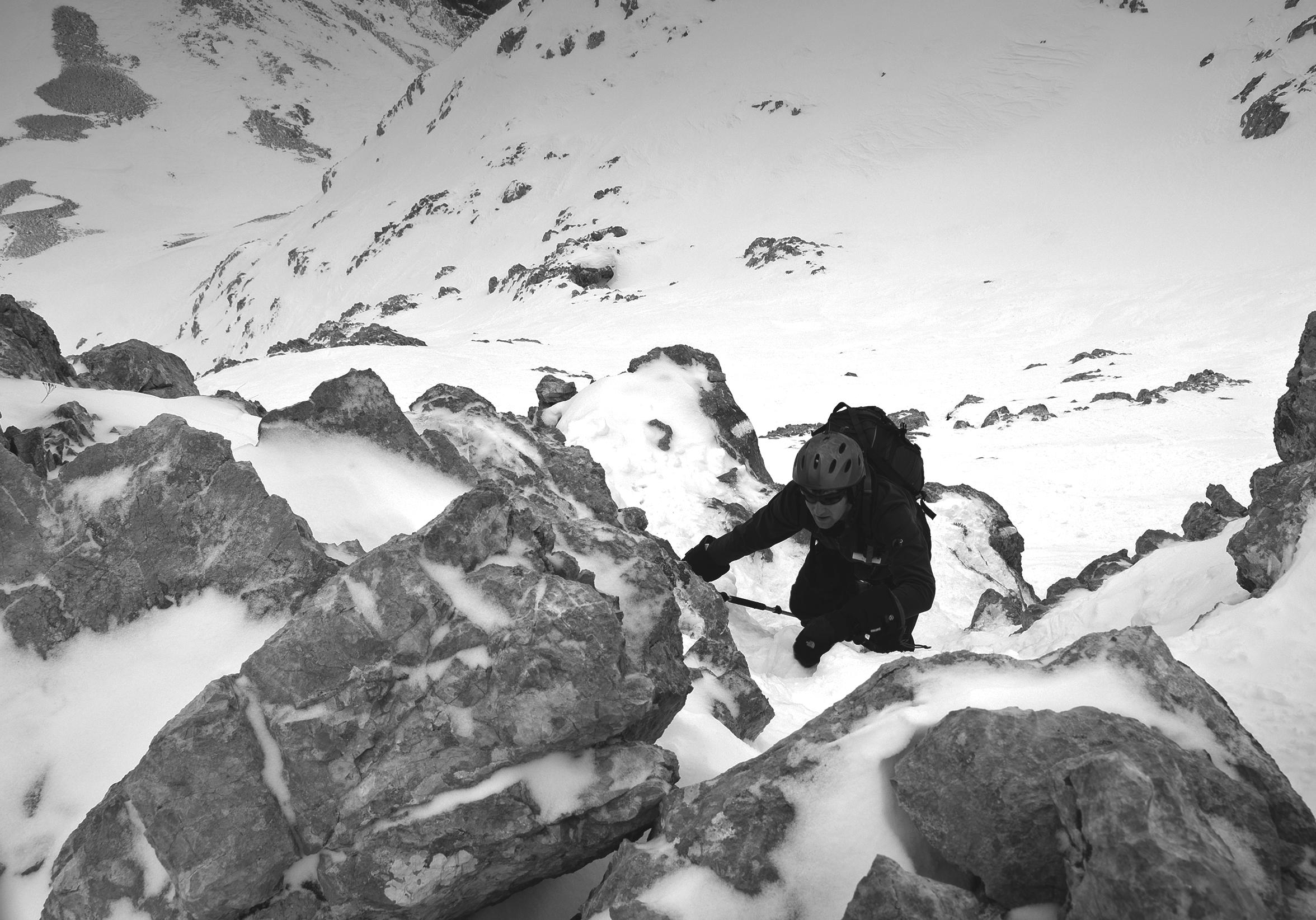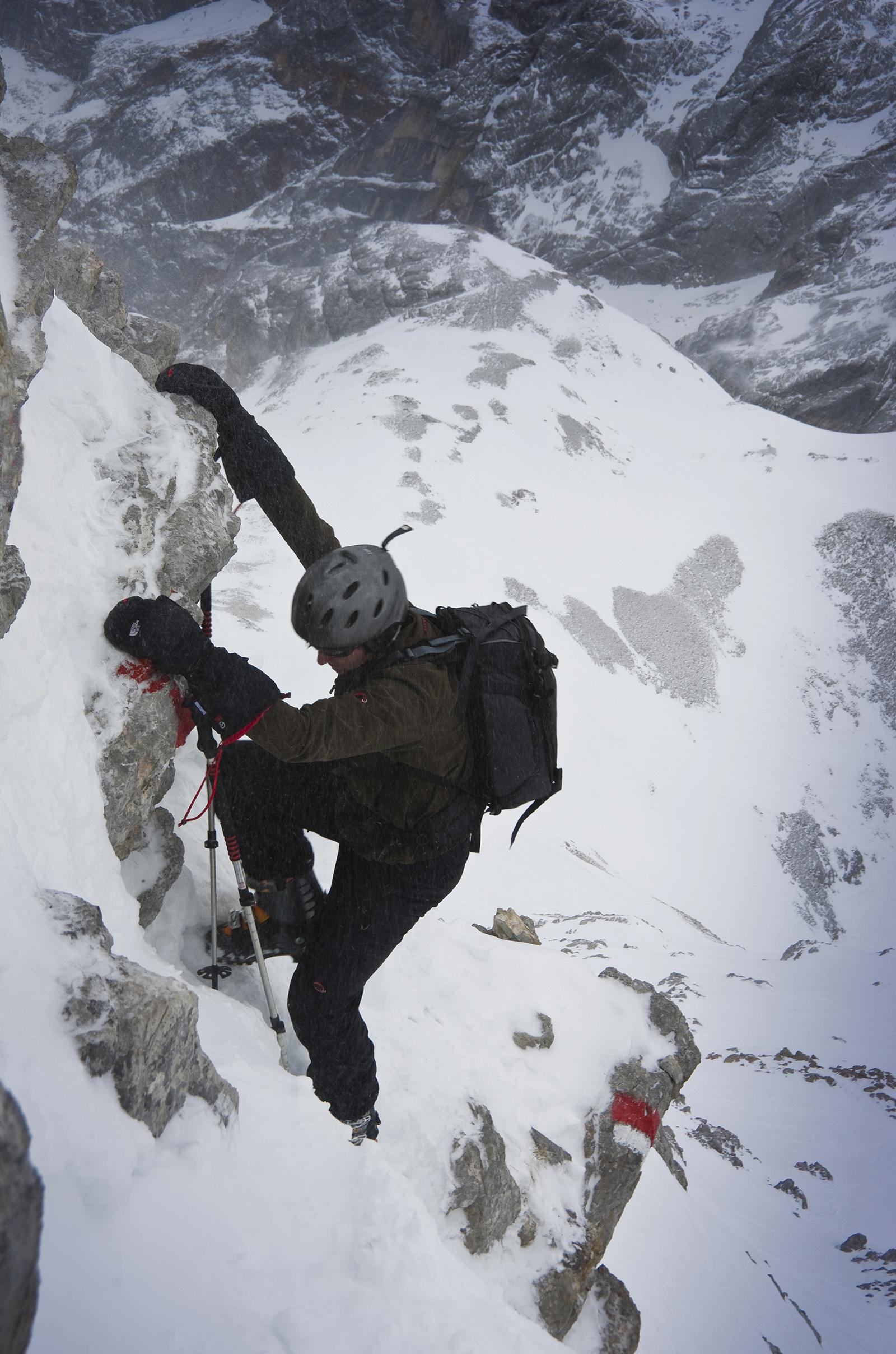 Die Felsen über dem Skidepot sind ein wenig vereist.