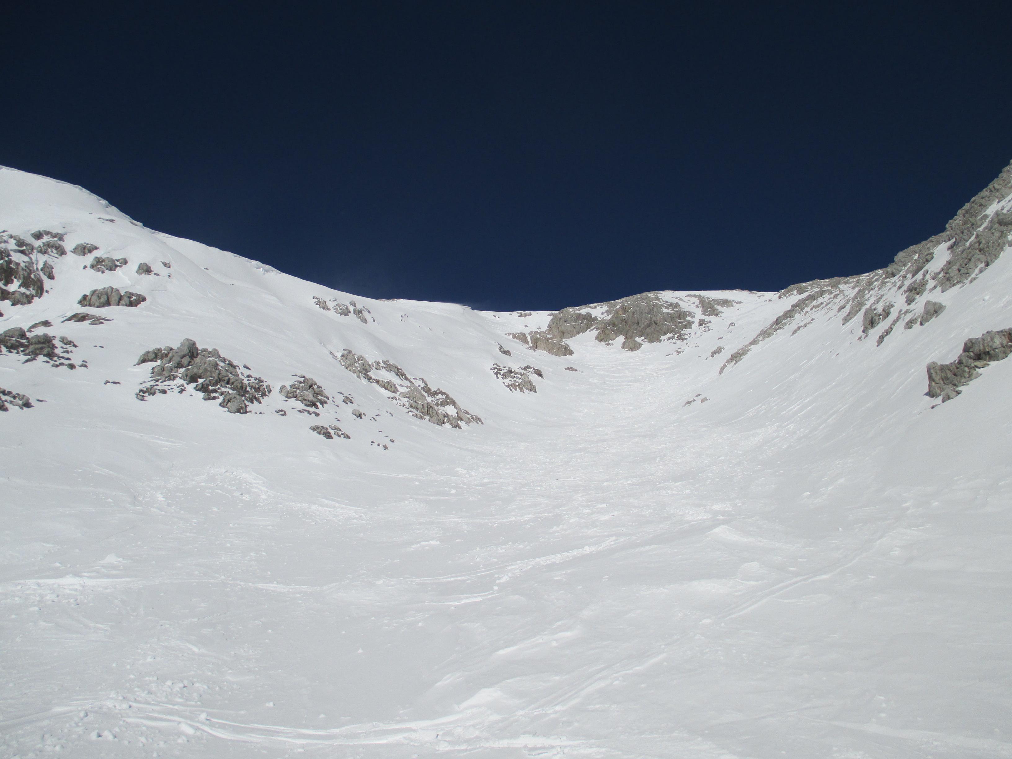 Abfahrt überraschend gut, Alpeltal angenehm fahrbar durch feuchten Schnee