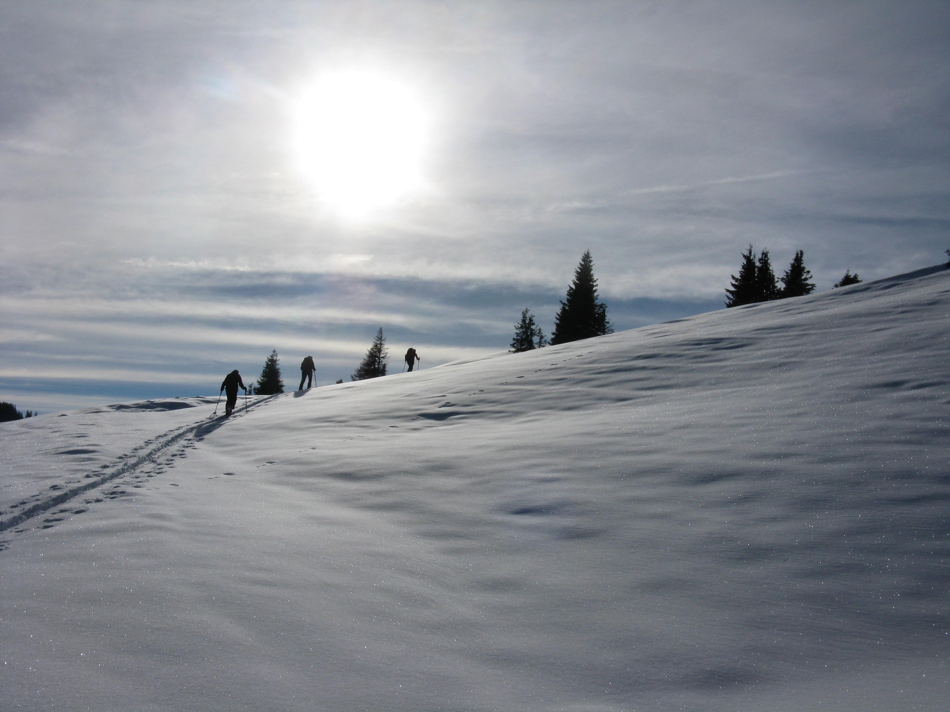 Leichte Eingehtour mit netter Kammwanderung.Start bei der Talstation kurz nach dem Dientner Sattel,Schneehöhe ca 10cm steigend bis zur Bergstadion auf ca 35-40 cm.angenehm milde Temperatur über der Nebelsuppe und herrliche Fernsicht,Schnee in der Sonne schon leicht angewärmt im Schatten noch Pulver,Abfahrt ohne Feindkontakt