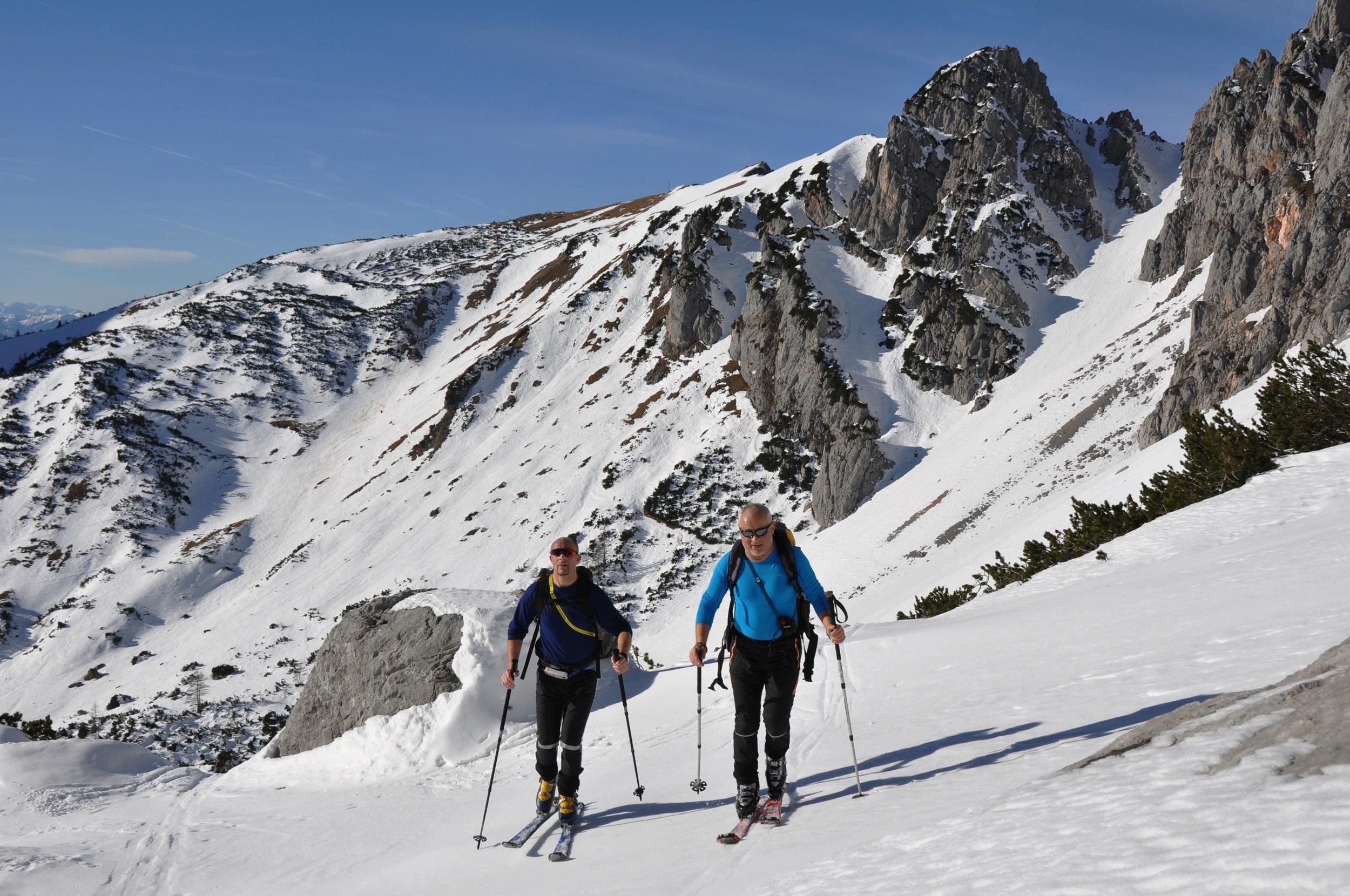 Aufstieg im gut tragenden und griffigen Harsch - nur der letzte Hang hinauf ab Tor war mit Harscheisen angehmer zu gehen.