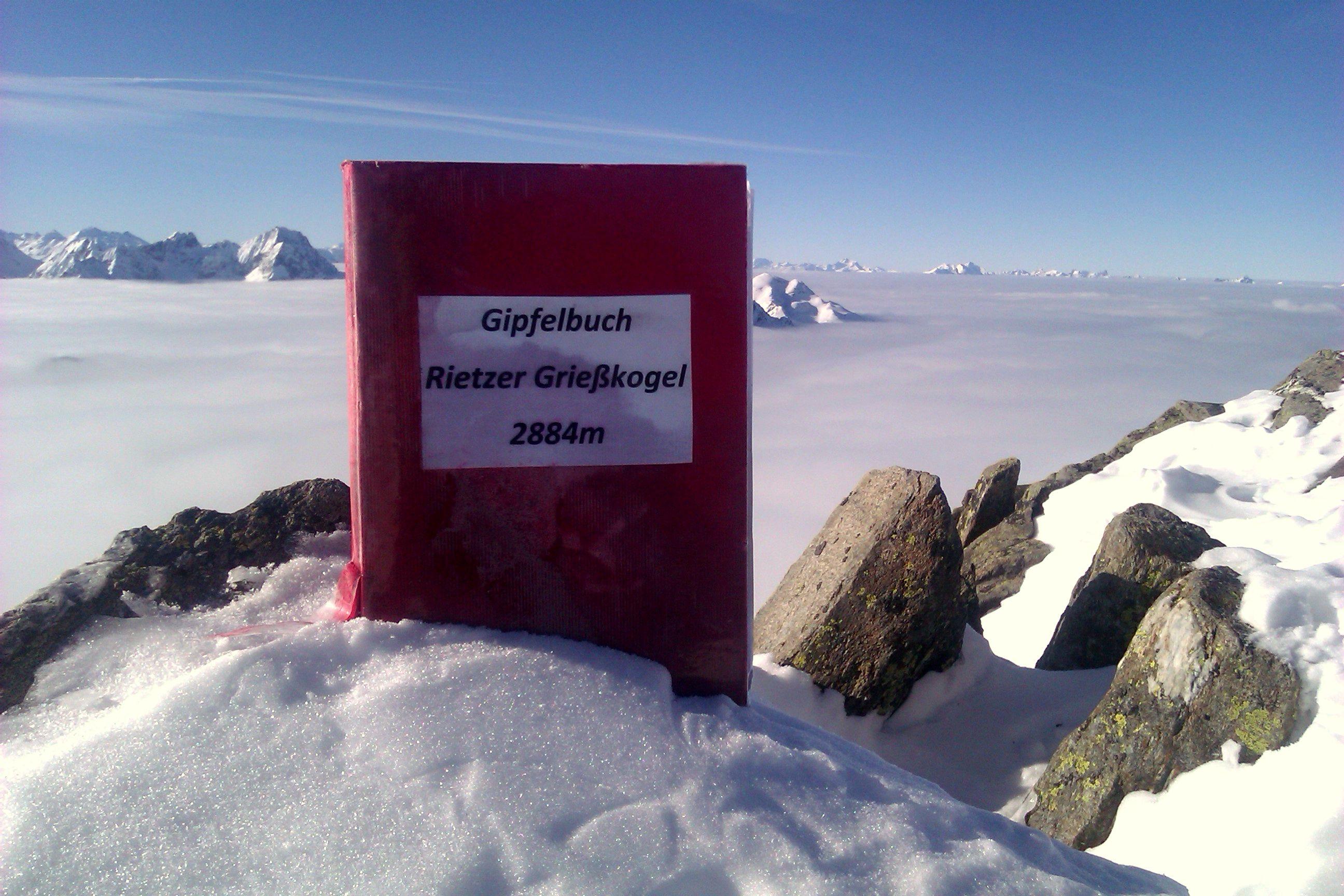 Hier Schidepot und zu Fuss in etwa 20 Minuten über den Rücken zum Gipfel des Rietzer Grieskogels.
