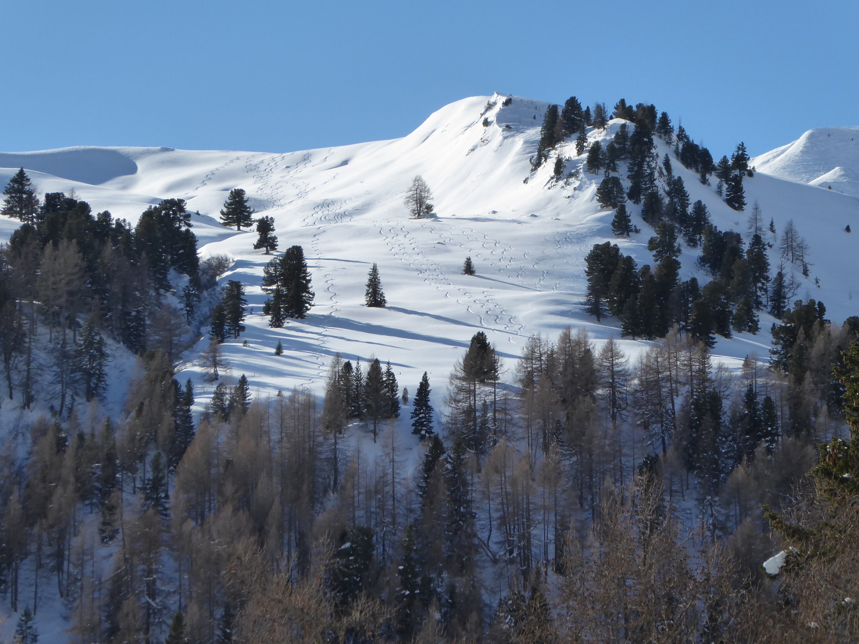 Viel gut gesetzter Pulverschnee, auch im Wald völlig problemlos zu fahren. (endlich nicht mehr wie auf rohen Eiern...) Kleine Rutsche in den steilen Flanken und einige eingeblasene Steilhänge ansonsten alles sehr entspannt.