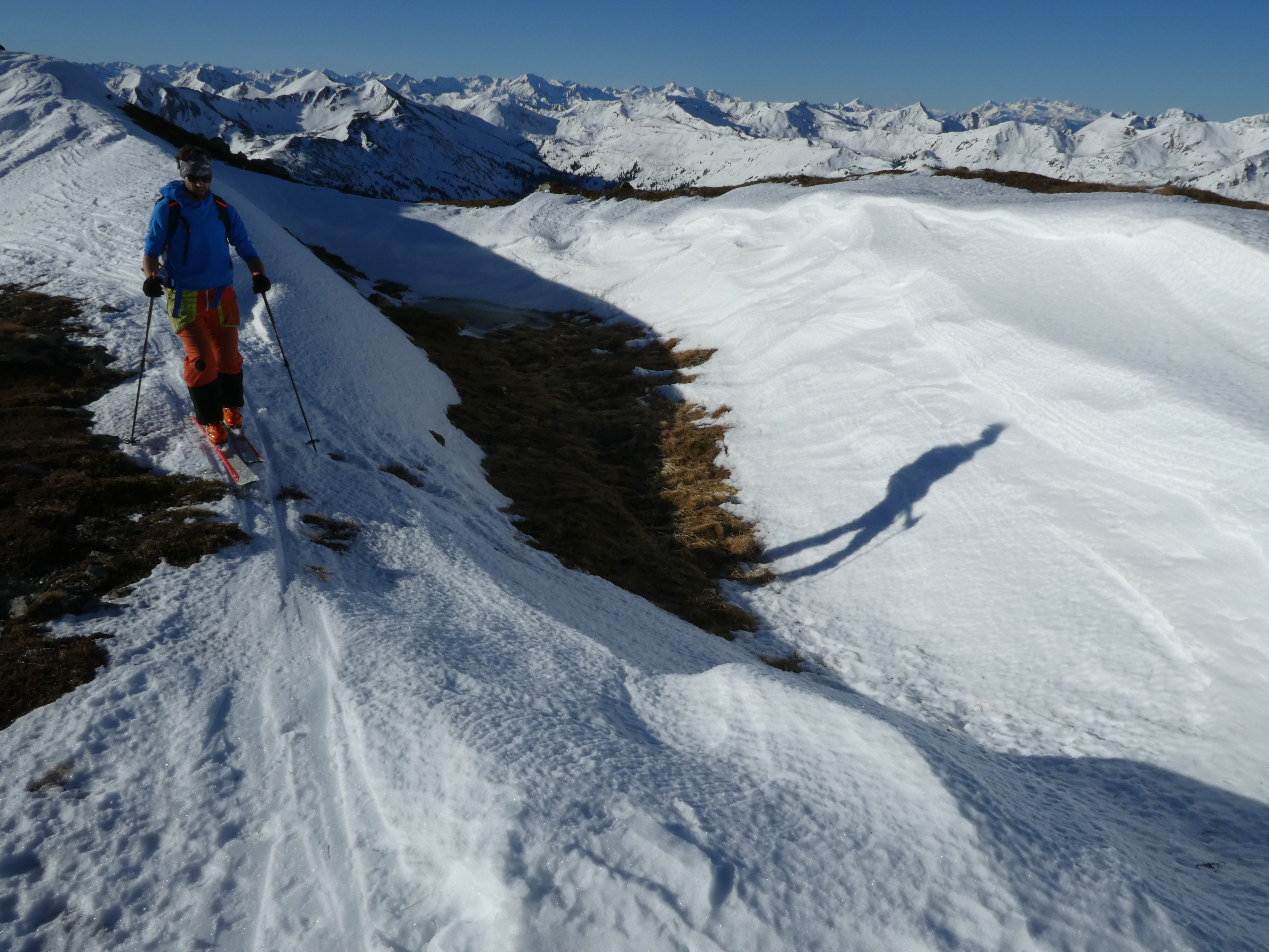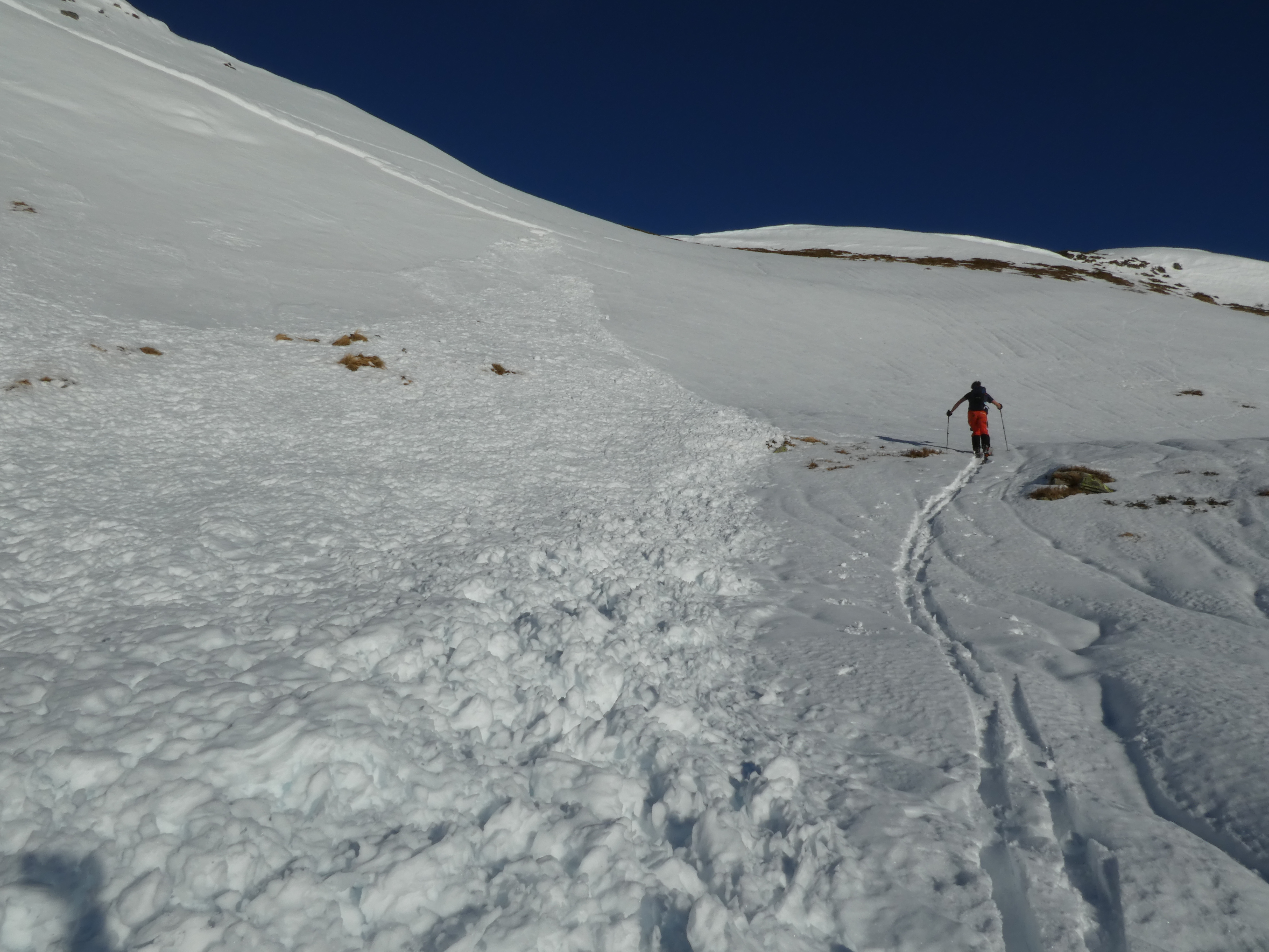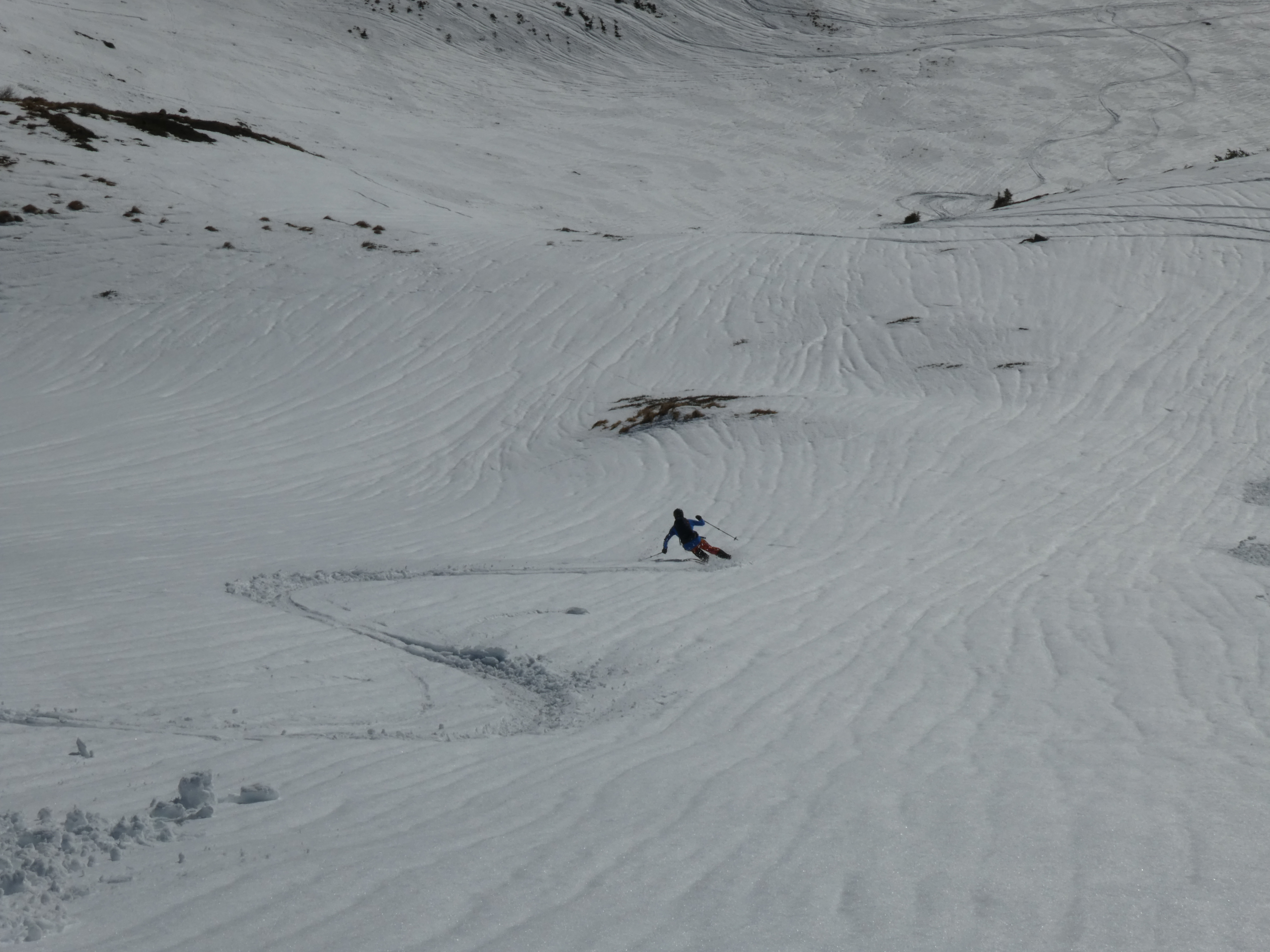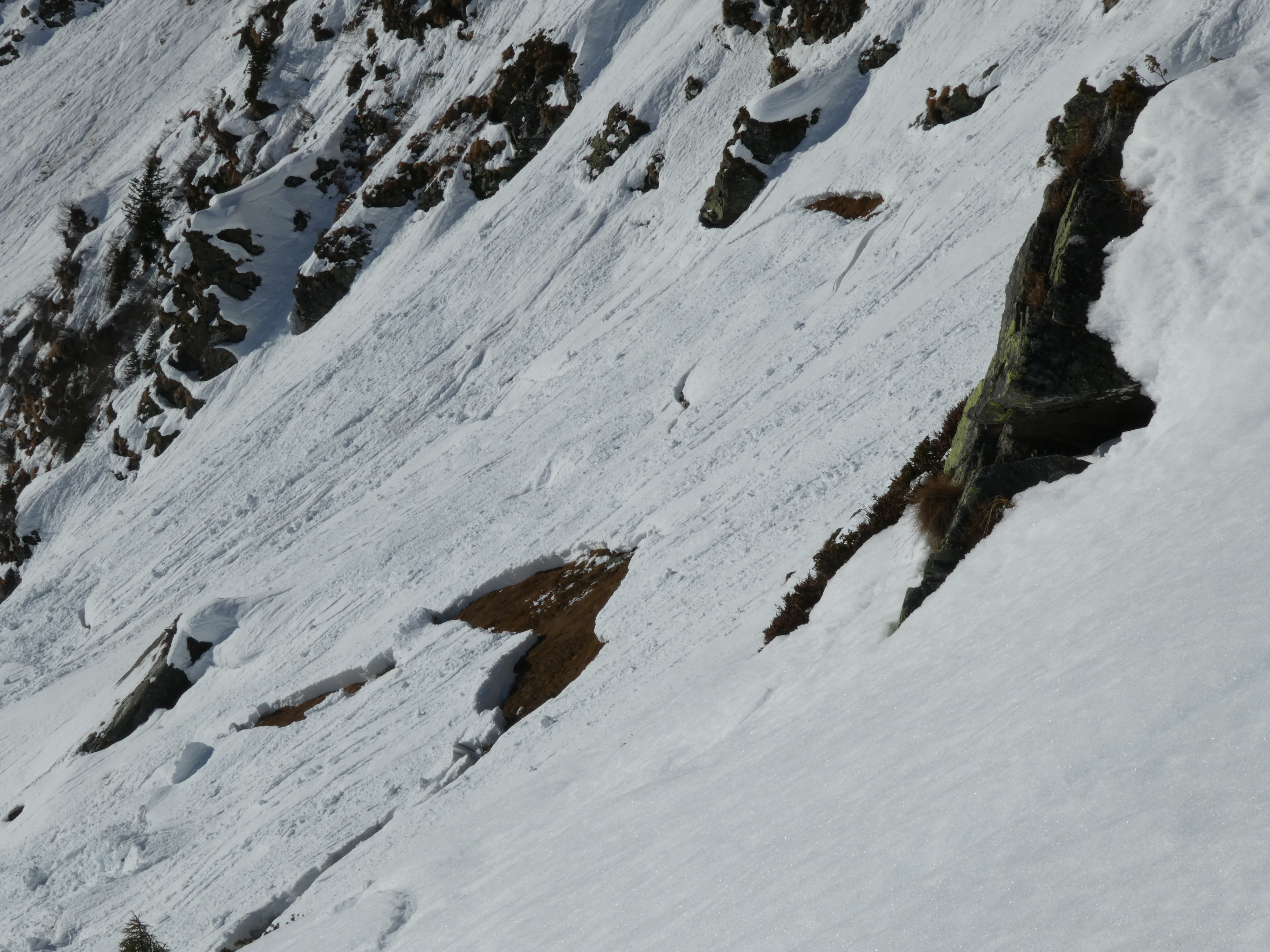Der vom Bretsteingraben über die Falbalm 2 mal erstiegene namenlose Glapf (Einheimische sagen wegen seiner oftmaligen Besteigung zum Jahresschluss "Silvesterkogel" - das wäre für diese Tour sogar sehr passend) zwischen Schattner- und Seitnerzinken hat wegen seiner südseitigen Ausrichtung die besten Abfahrtsbedingungen an diesem Tag geboten. Die kritschen Bereiche rundum waren durch Nasschneelawinen nach dem Regeneintrag der Vortage entladen, daher die Anstiege und auch die Abfahrten absolut sicher. Einen weitern Anstieg auf den Schattnerzinken haben wir verworfen, da dort in vielen Bereichen wenig Schnee liegt und zudem die für die Abfahrt vorgesehene Westrinne durch Grundschneelawinen verwüstet ist. Ich wünsche dem Team des LWD, allen Besuchern des Tourenportals und auch den Lesern meines Tourenblogs (www.schittertour.at) ein Gutes Neues jahr mit vielen schönen und unfallfreien Touren.