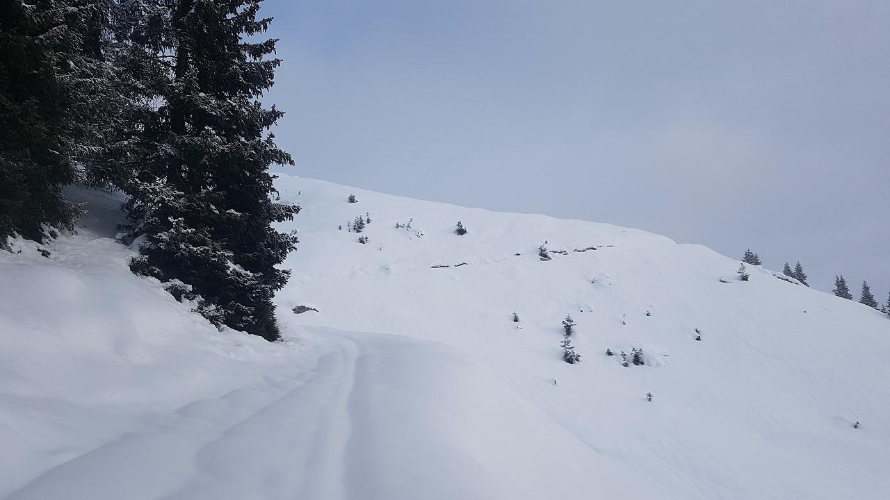 Daher sind Hänge im Auf- und Abstieg ab 25 Grad Steilheit derzeit kritisch zu beurteilen und erfodern alpine Erfahrung!