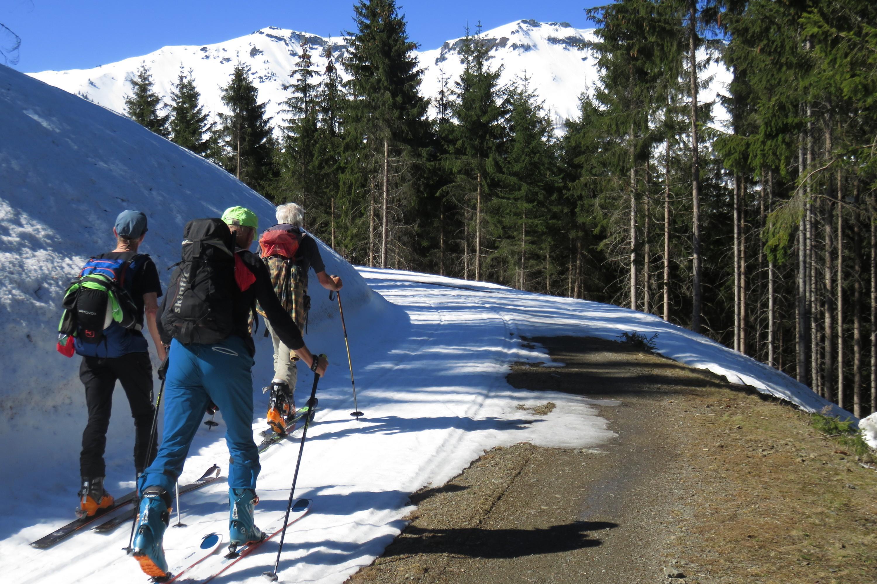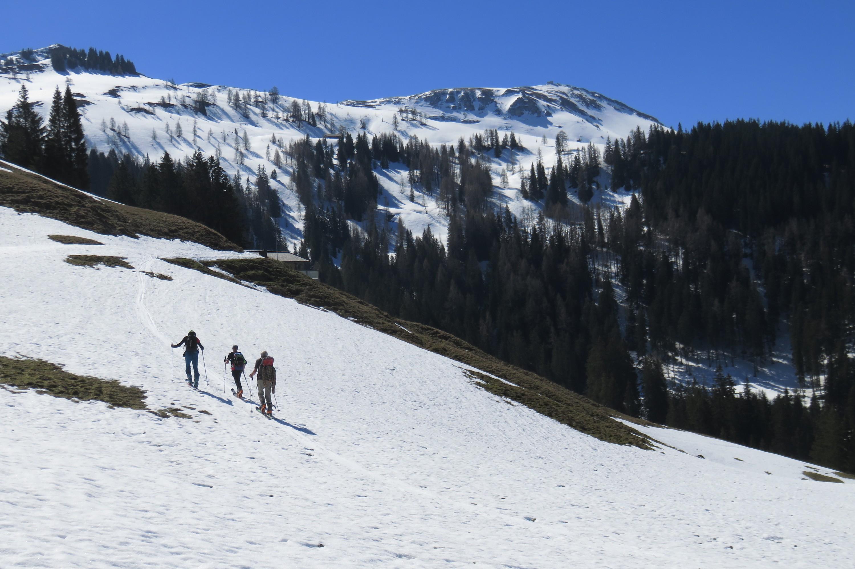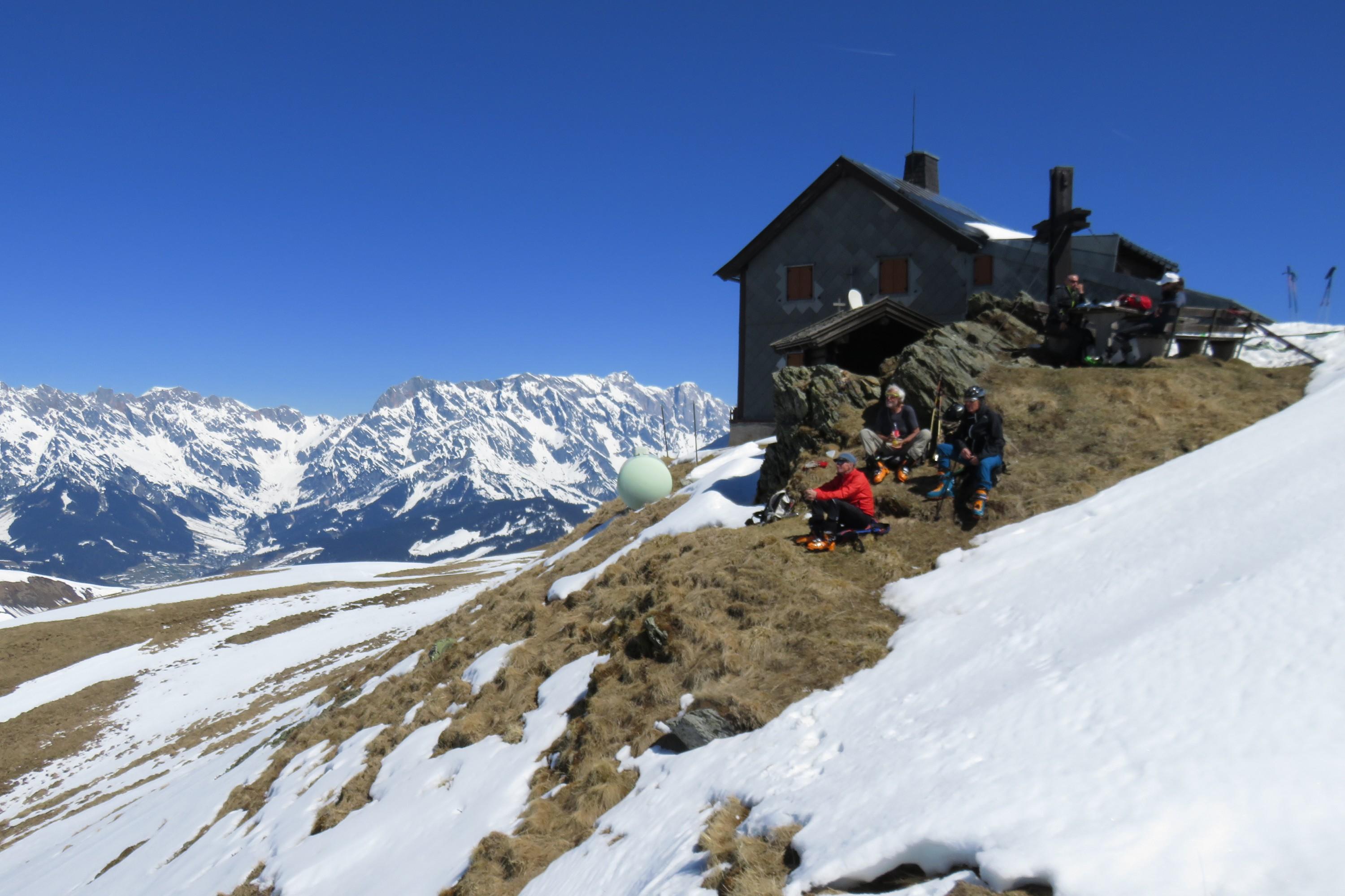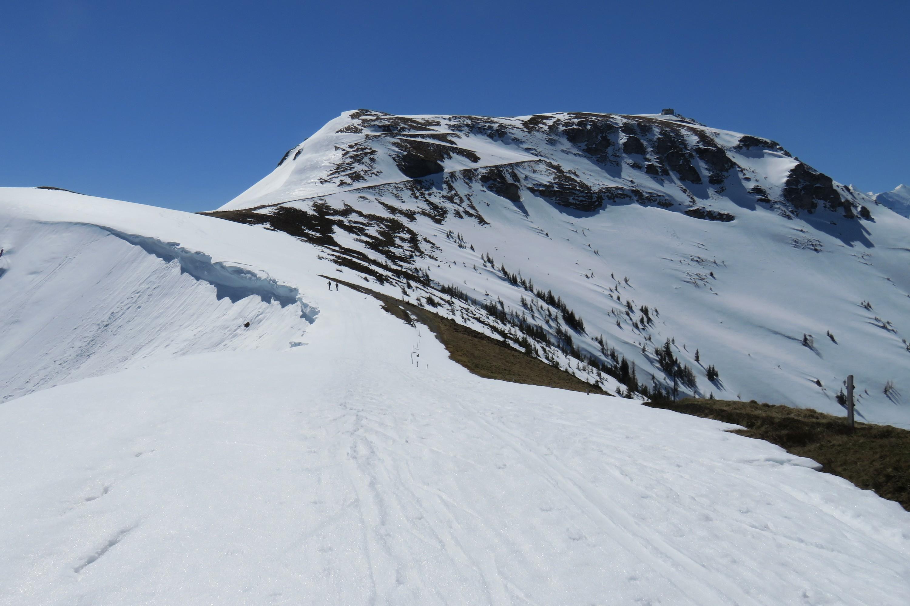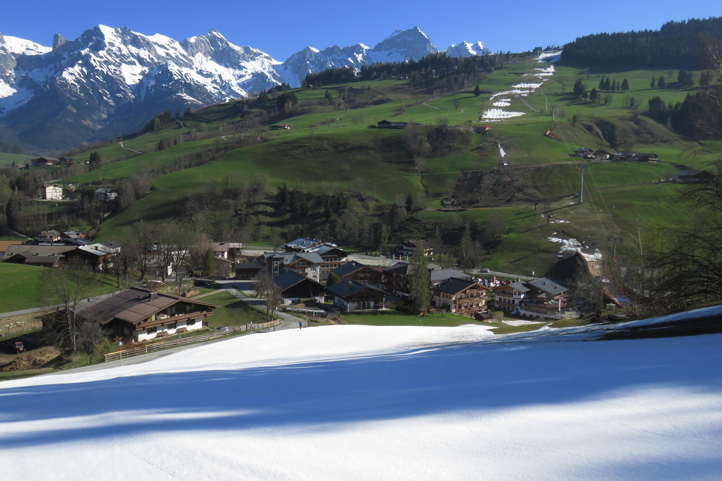 Vor einer Woche hat Uta einen Sachstandsbericht über die Schneelage in den Pinzgauer Grasbergen veröffentlicht und den Anstieg auf den Hundstein von Maria Alm aus empfohlen. Danke für den Tipp, war heute ein Traumtag! Nur eine Stunde am Pistenrand, dann über die Skiroute an der Griesbachalm vorbei Richtung Langegg und weiter zum Hundstein. Im Aufstieg wie bei der Abfahrt bester Firn, sogar nach 15 Uhr (sind im Bergstadl versumpft) bei der Pistenabfahrt sehr gut zu fahrender Sulz. Man merkt, die Lifte sind nur noch bis Ostersonntag in Betrieb, beim Einkehrschwung mehr Leute als auf den Pisten.