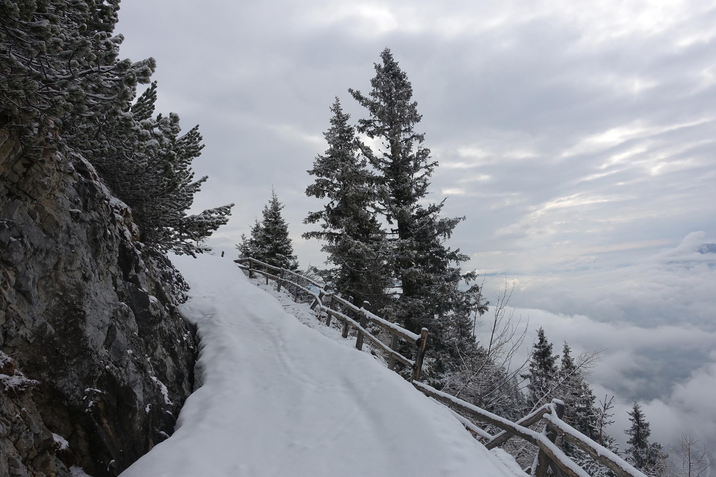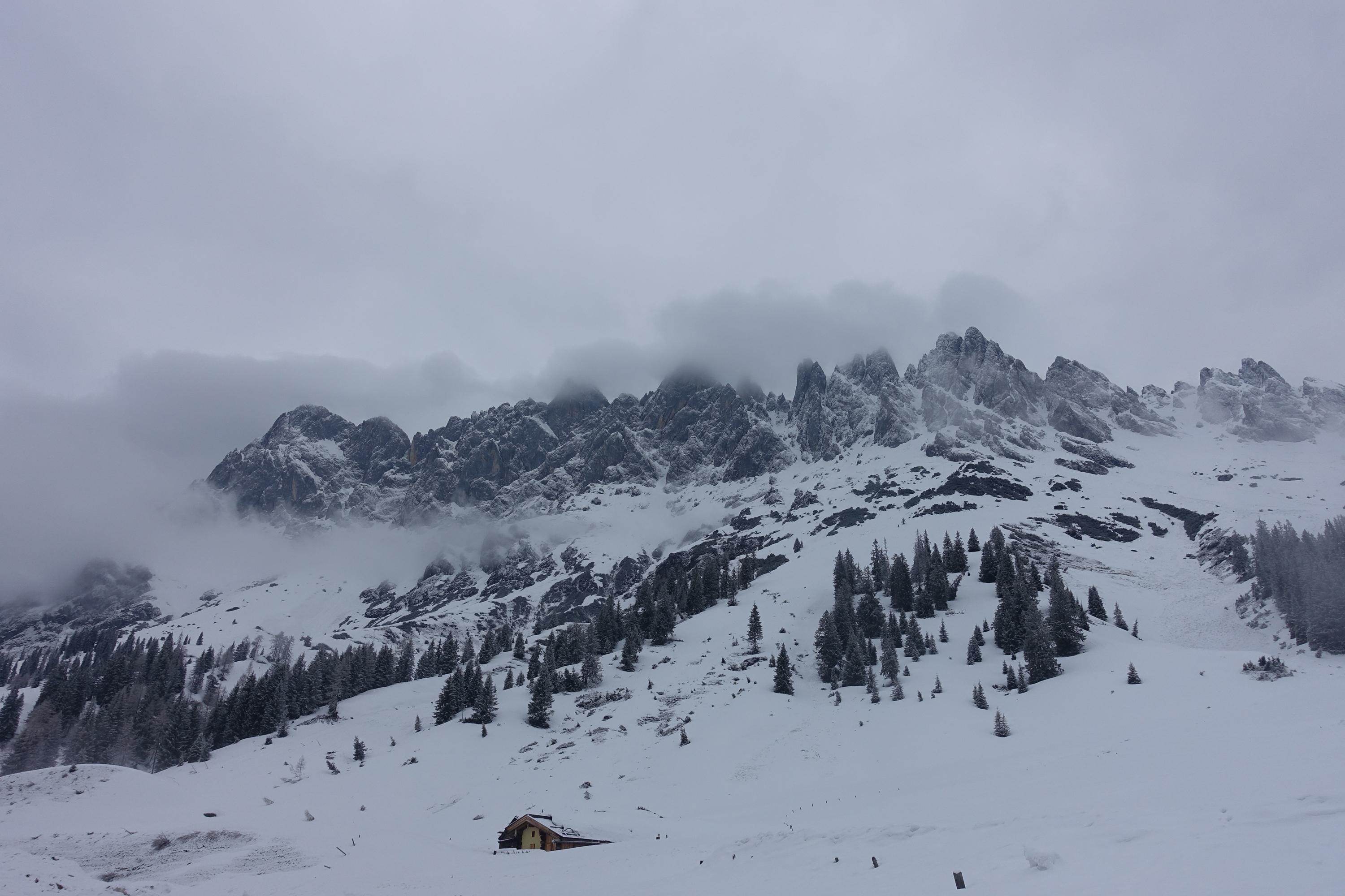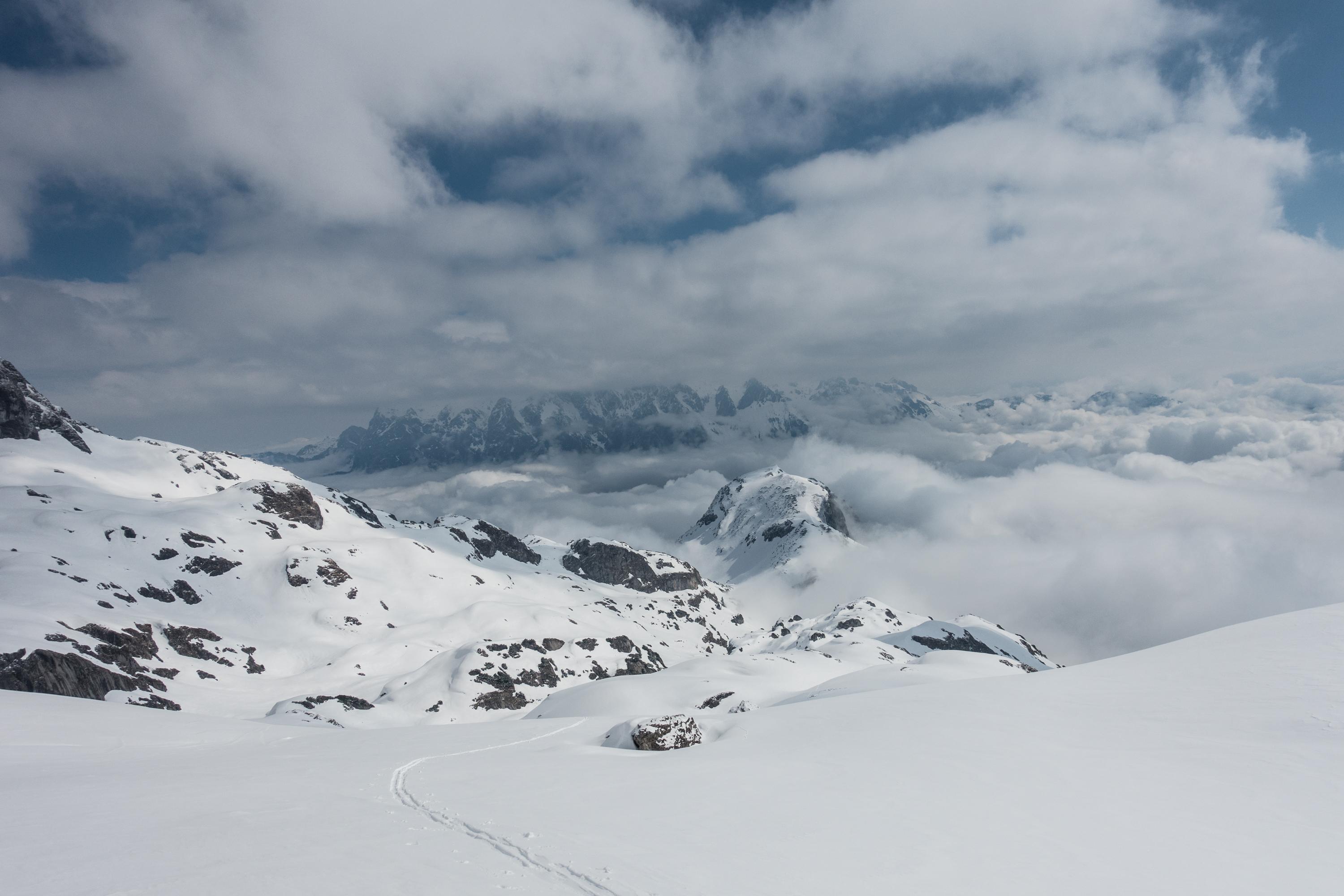 Großer Bratschenkopf vom Arturhaus am Montag. 5-10cm Neuschnee in der Nacht von Sonntag auf Montag. Von Beginn an beim Arturhaus können bereits die Ski angeschnallt werden. Über den Forstweg zur Mitterfeldalm. In der folgenden Querung sind bereits einige kleine abgegangene Lawinen zu bewältigen. Die "Schlüsselstelle" eventuell tiefer umgehen, die Schneebrücke wirkt schon instabil. Nach aufziehenden Nebel im Ochsenkar Orientierung schwierig, die Steilstufe darin mit Harscheisen besser als ohne. Wegen anhaltenden Nebels am Wanderweg gehalten und an einigen Stellen abgeschnallt. In der Aufstiegsrinne zum Bratschenkopf leider viele scharfe Steine unter der Auflage. Abfahrt ein Traum, ab 2000M Höhe wirds dann sulzig.