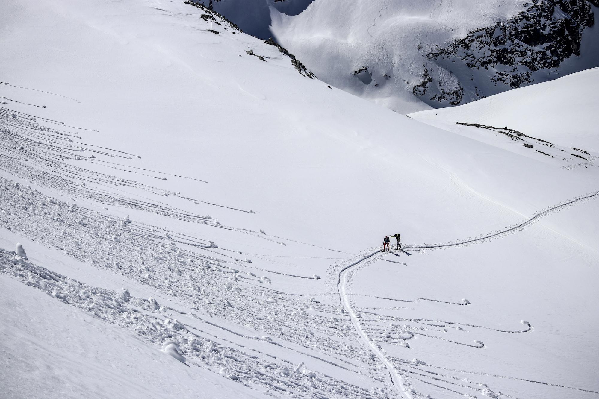 Ausgangspunkt der Tour war das Berghotel Rudolfshütte. Von dort aus Abfahrt zum See. Das erste Mal anfellen und ganz einfach mit den Schiern an den Fuße der Granatspitze. Dort ist meistens der Punkt, wo man die Steigeisen benötigt, aber die aktuellen Verhältnisse machten es uns möglich ohne die letzten 70hm raufzuklettern. Vom Gipfel denselben Weg zurück und Abfahrt Richtung Kalser Tauernhaus. (ca. 11:00 Uhr) "Im Grund" kleben wir die Felle wieder auf unsere Schi und Steigen auf zur Medelzlacke. Felle runter und wir versuchen möglichst hoch auf das Ödwinkelkees zu queren. Von dort aus geht es in unzähligen Spitzkehren und zum Schluss die Schier tragend hoch zur Oberen Ödwinkelscharte. Dort kurz wieder mit den Schiern an den Füßen und dann wieder die letzten Meter tragend auf den Gipfel. Um ca. 14:30 fahren wir vom Gipfel ab und sind froh, dass wir nicht früher dran waren. Die "Querung" hatte zu diesem Zeitpunkt gerade aufgefirnt und war wie der rest super zu fahren.