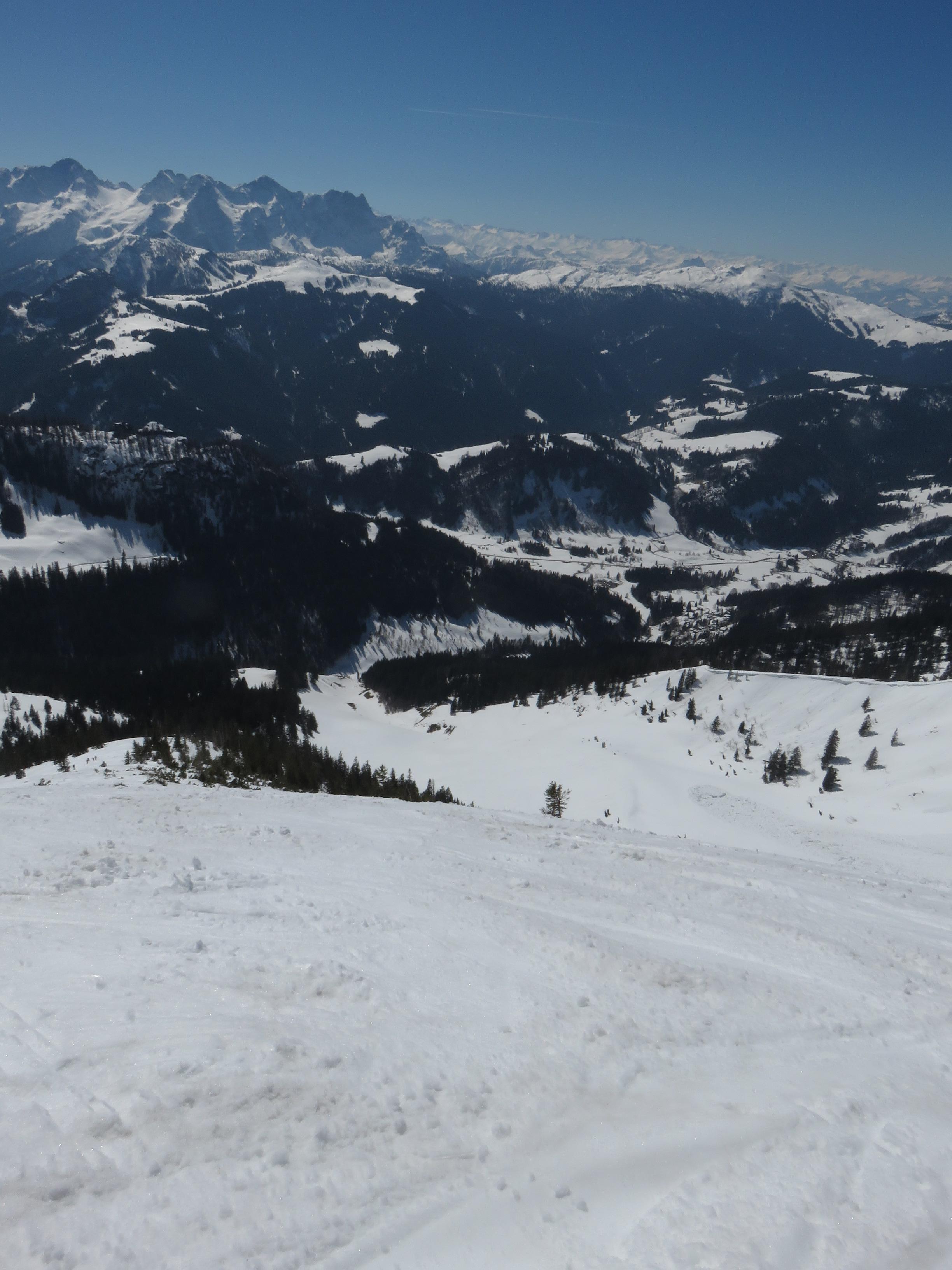 Schnee: bei der Abfahrt um 12 Uhr super Firn vom Gipfel bis ins Tal.