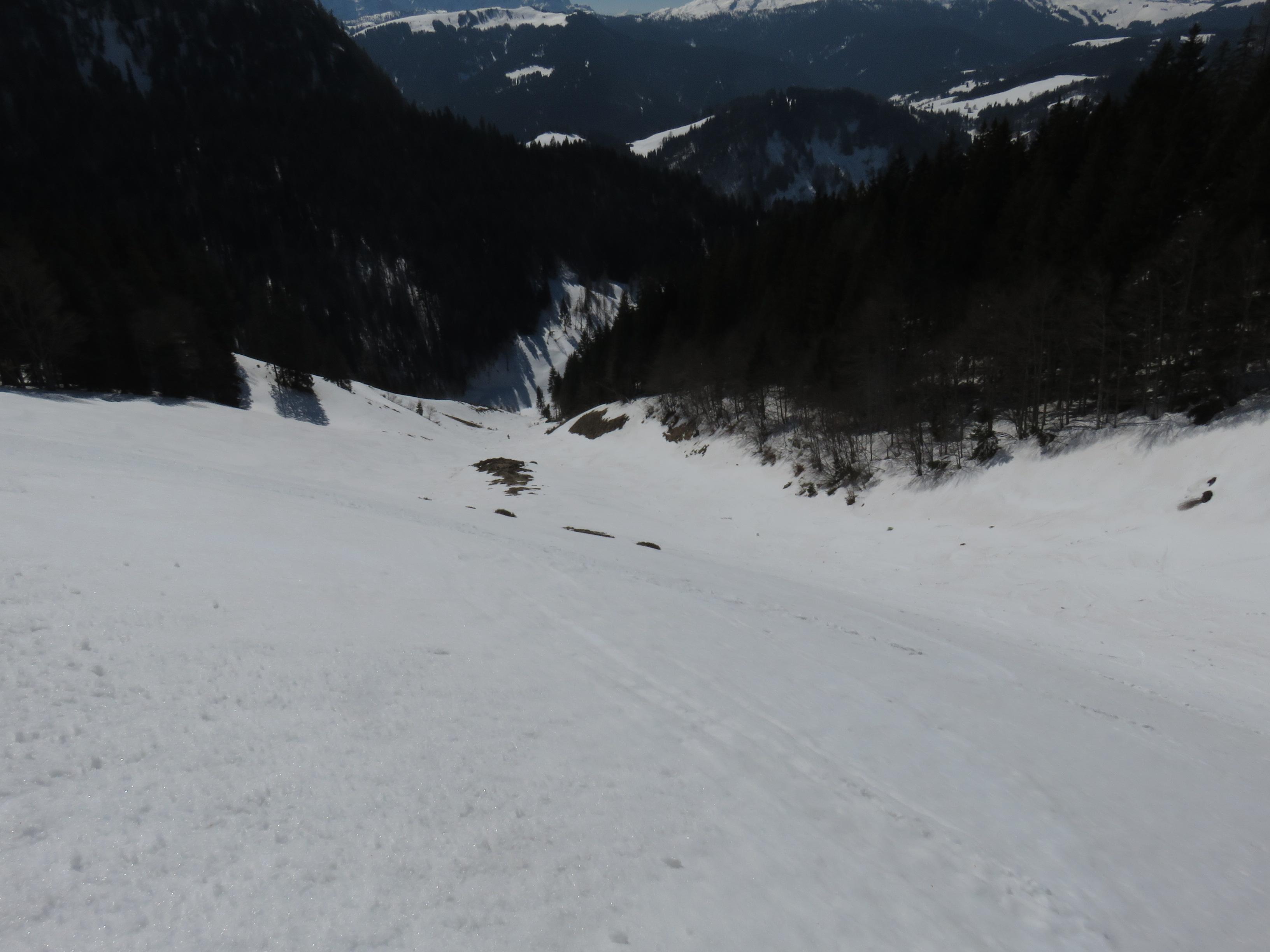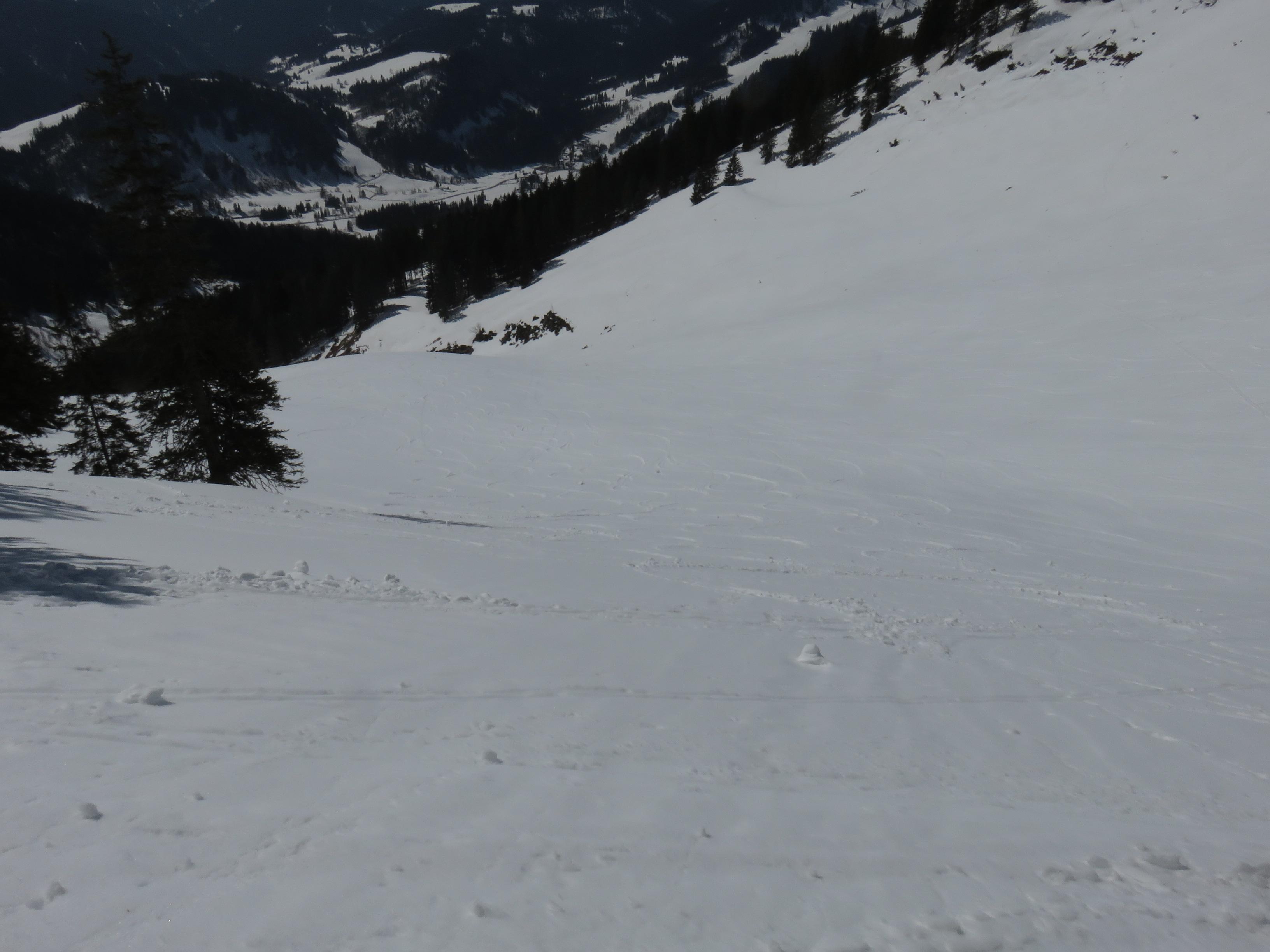 Vom Heutalbauer am Lahnersbachgraben entlang über die Hochalm aufs Hirscheck. Abfahrt am Südhang bei ca.1550m recht ins Reifelkar eingefahren und im Lawinengraben bei bestem Firn bis zum Bach runter.