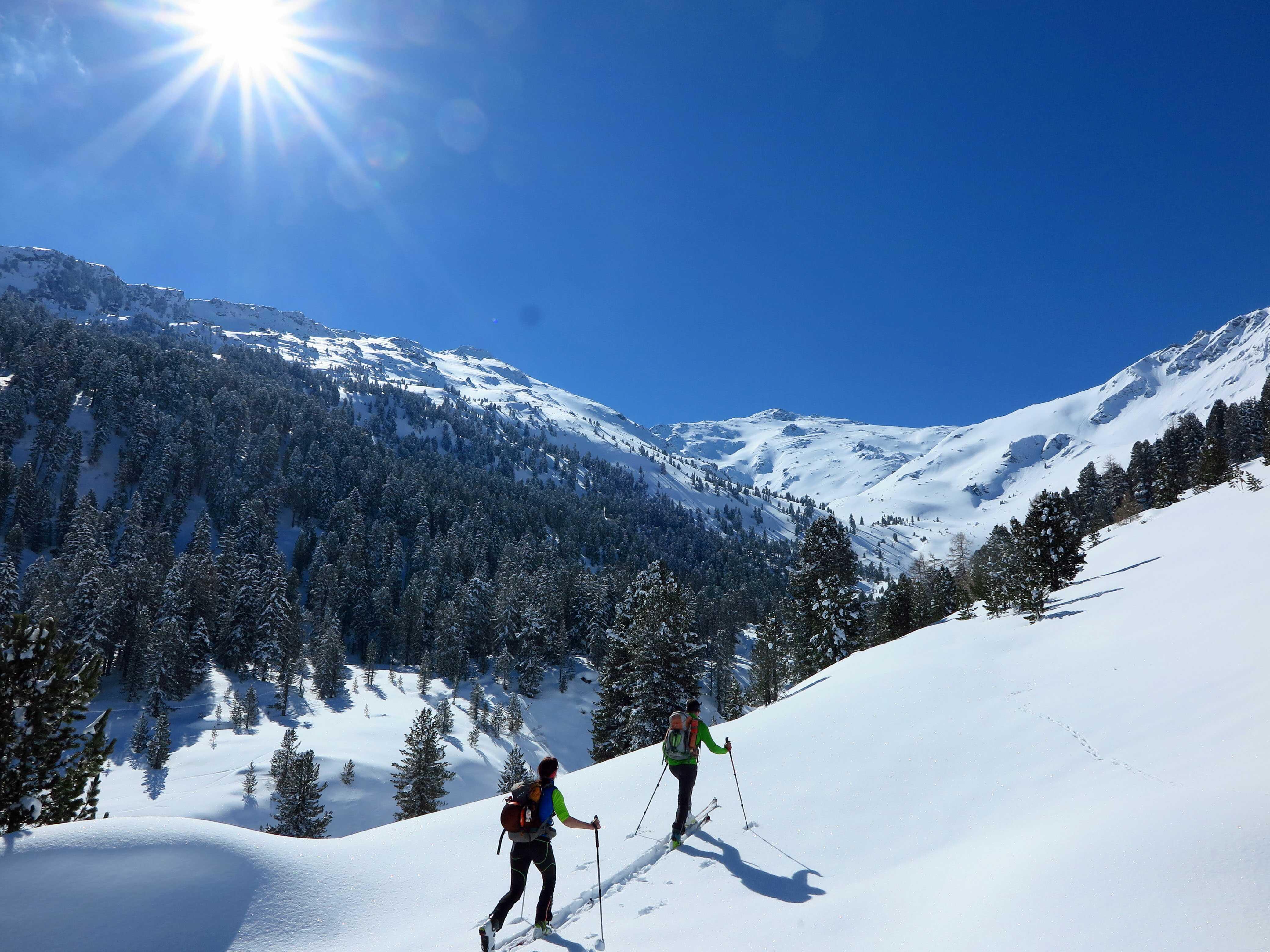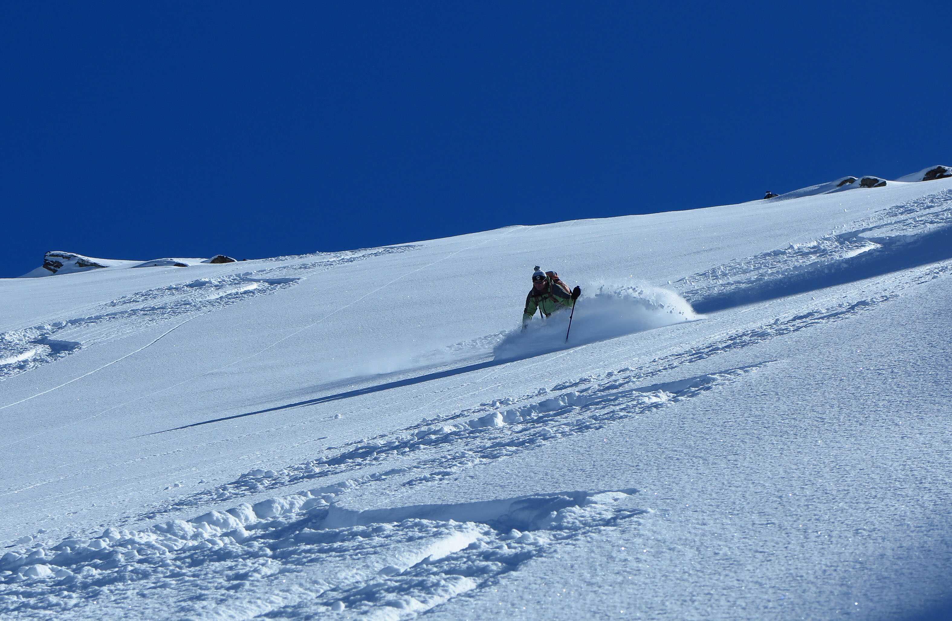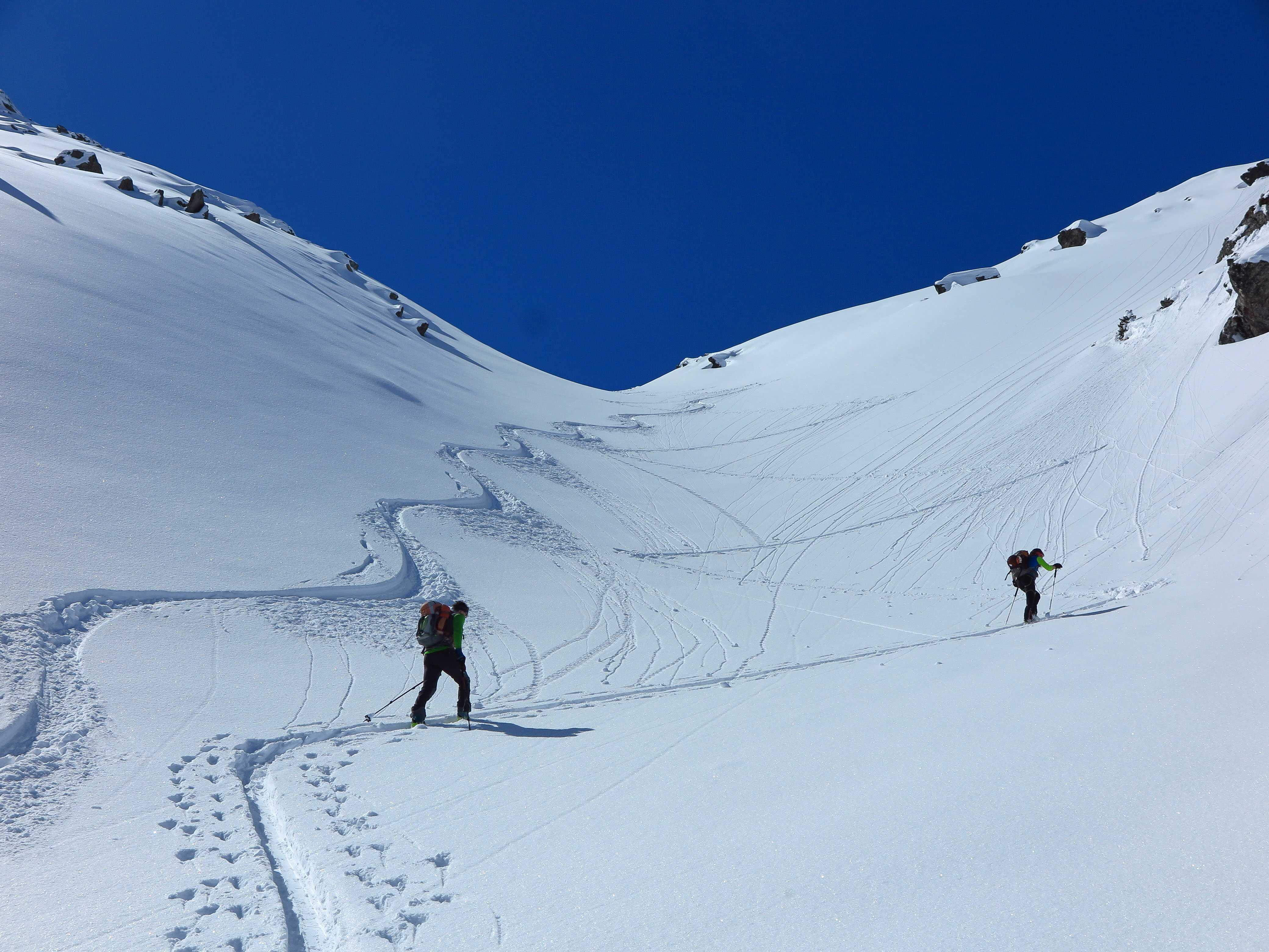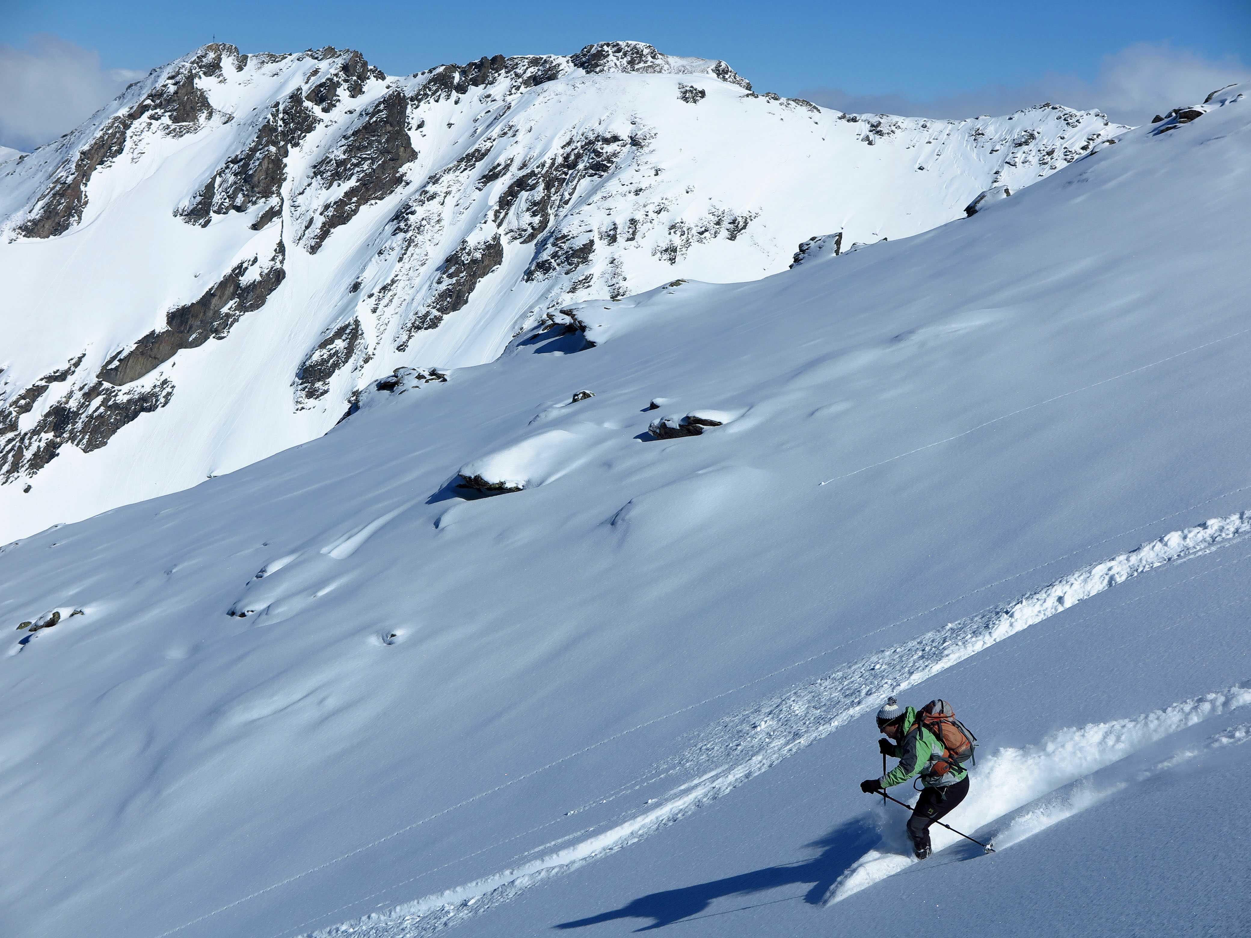 Von Kolsassberg/Fanghaus (1040) über die Studlalm (1600) und durchs Hirzerkar zum Hirzer (2725). Eine relativ lange, aber lohnende Pulvertour.
