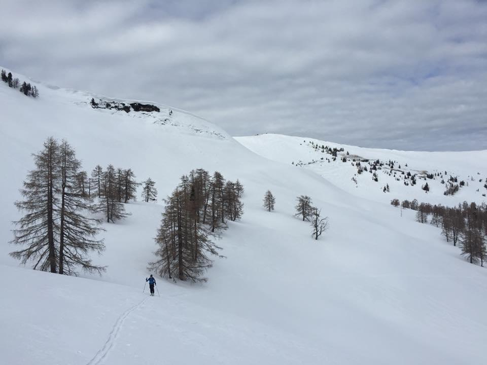 Lawinen: Überall mächtige Gleitschneeabgänge und Anrisse auch in der Abfahrt vom Pischerberg. Können aber gut umfahren werden. Verbindung des Neuschnees zum Altschnee relativ gut. Schicht mit Graupel eingeschneit.