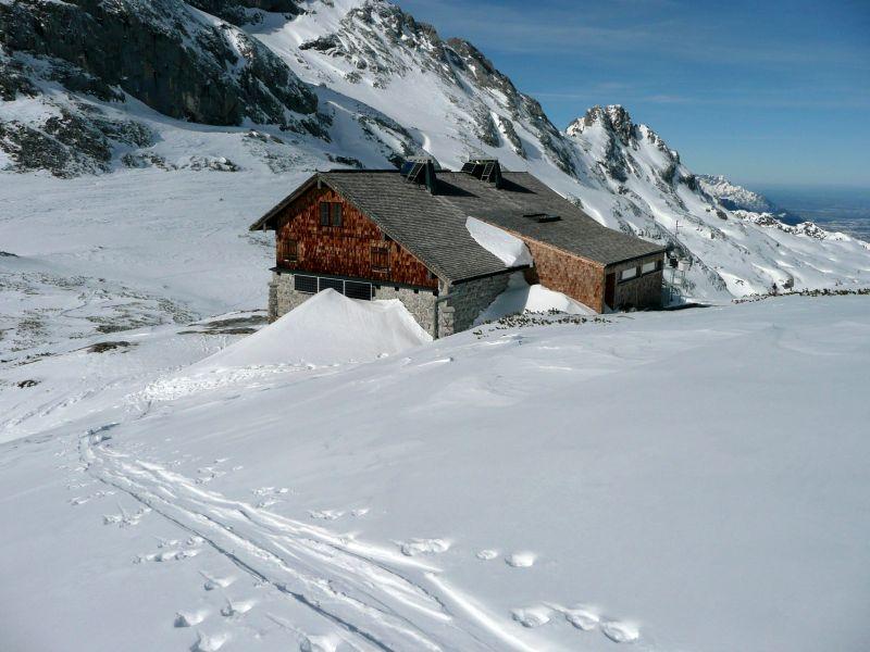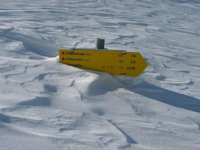 Diesen Winter hat es irre Schneemengen, die Markierung der Wengerscharte ragt kaum noch aus dem Schnee und beim Happisch Haus könnte man ebenerdig in den ersten Stock einsteigen. Ebenso sind viele Höhleneingänge und Portale völlig vom Schnee zugedeckt. Umgekehrt bedeutet diese reichliche Schneeauflage natürlich auch ein schnelles Vorankommen am Plateau, weil die - sonst im Sommer so zerklüftete - Landschaft sehr sanft gewellt erscheint.