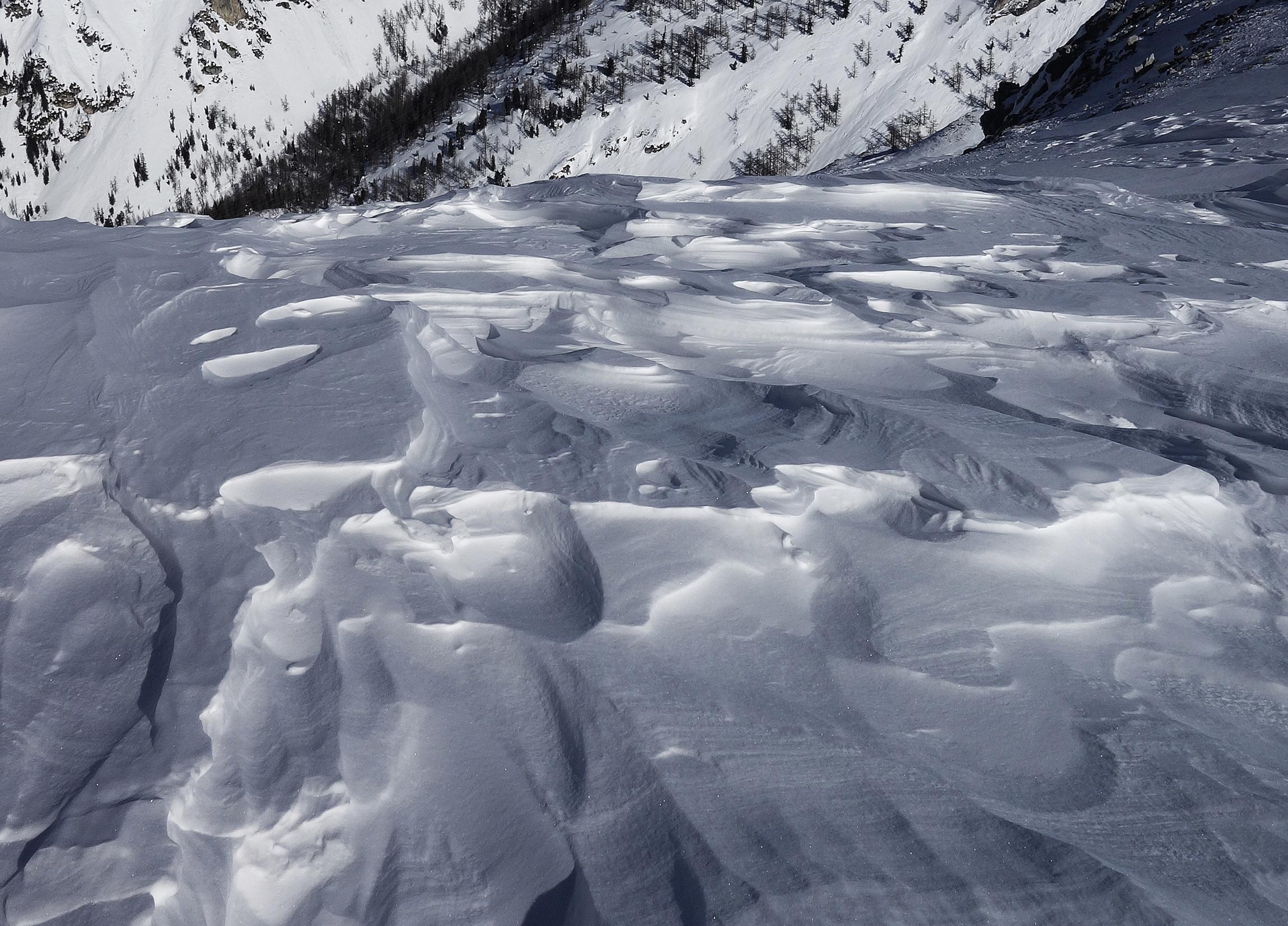 Von Autobahnraststätte Gasthofalm zurück in den Flachauwinkel und über Gamsboden zur Rießlwand. Angenehme Wetterverhältnisse, mäßig Wind, nicht sonderlich kalt, im schattigen Wald noch Reste von Pulverschnee. Bekannt als windiges Eck, meist großflächig Windharsch, ja, und so erleben wir das auch heute hier. Gleich oberhalb Lärchenhang durchwegs "Brettpulver", die Steigfelle haften zeitweise schlecht, Kraft in den Armen notwendig. Freilich, es ist wunderschön hier in diesem Winkel und daher haben wir trotzdem unseren Spaß. Beim Abfahren ist Zurückhaltung geboten, man fährt wie auf einer Waschrumpel.
