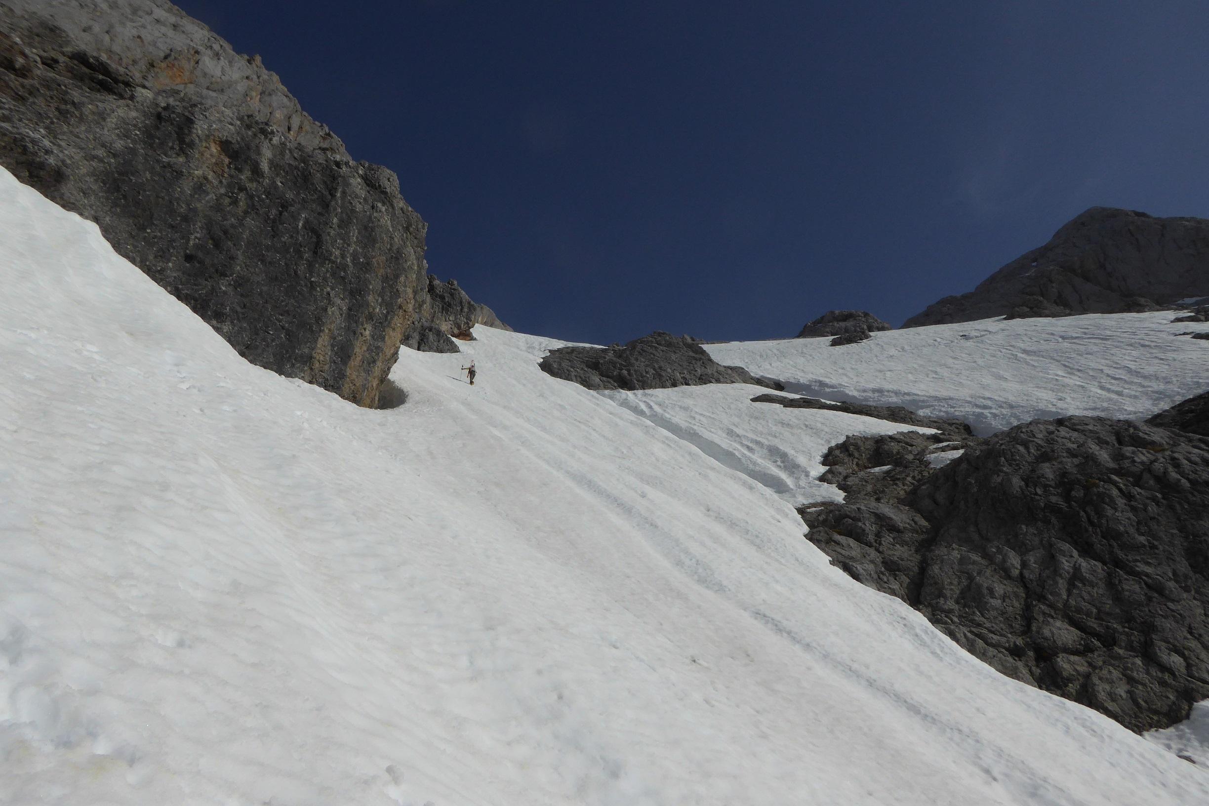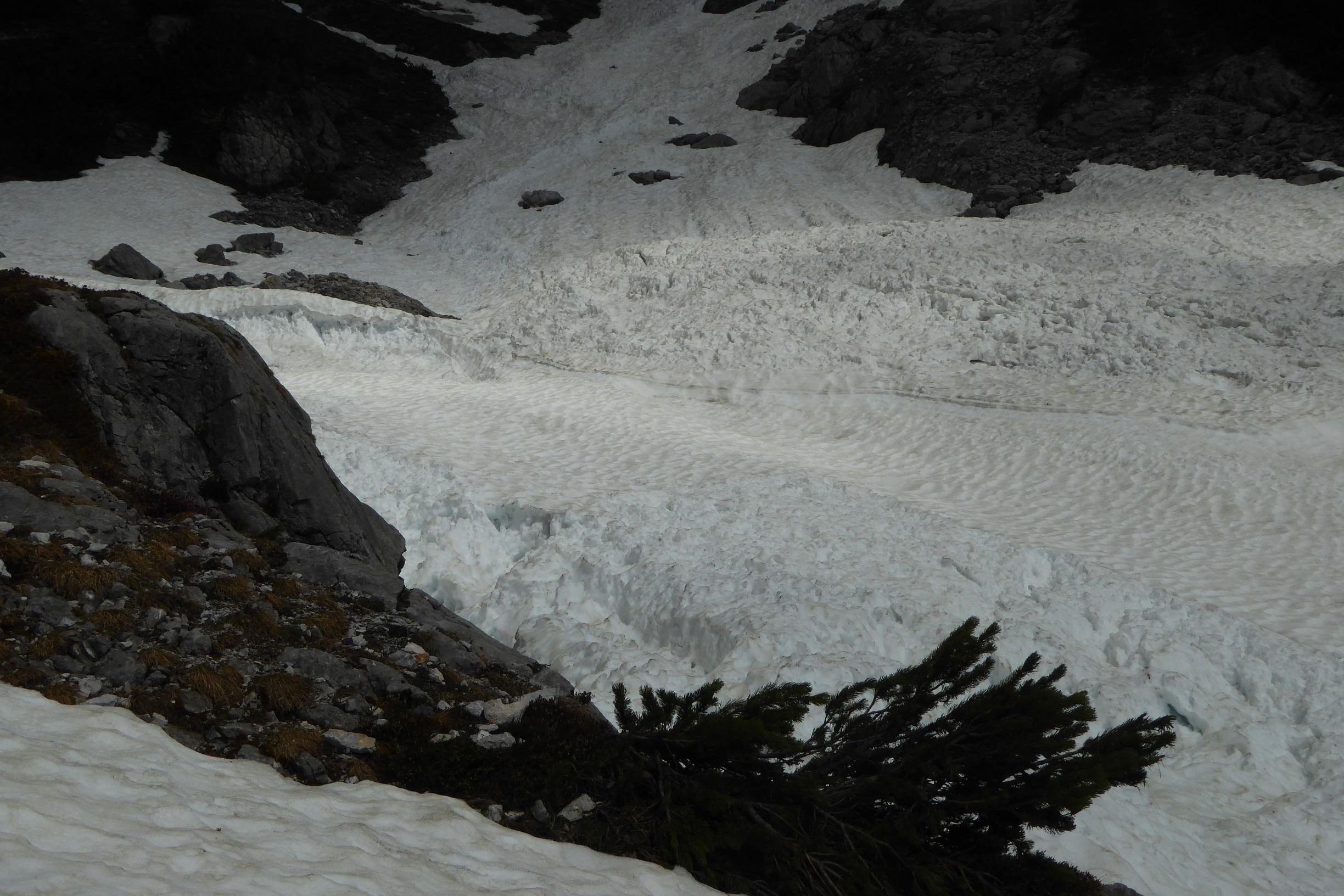 Schöner Sommerfirn, nur schattseitig am Plateau war er noch nicht ganz umgewandelt.