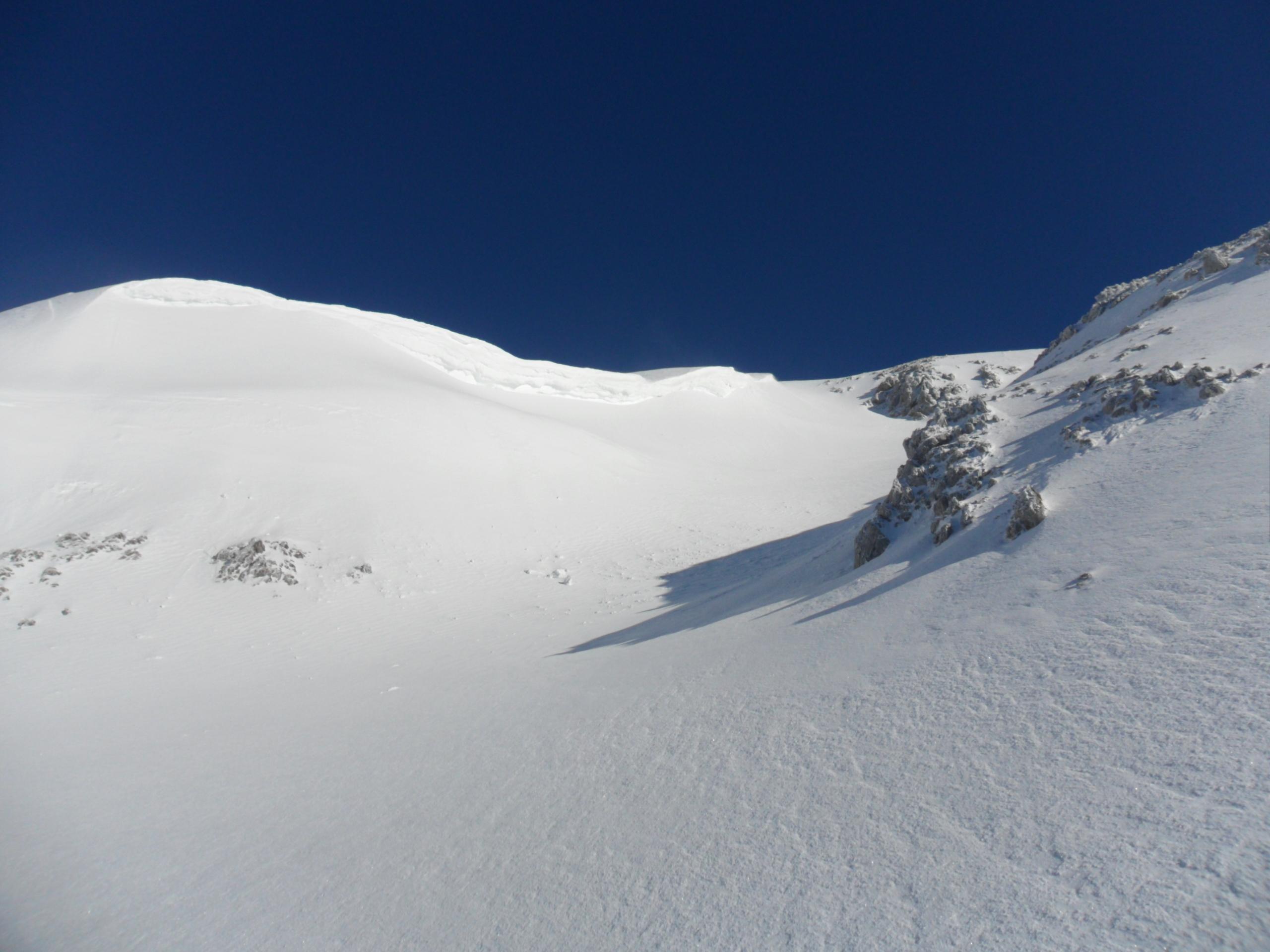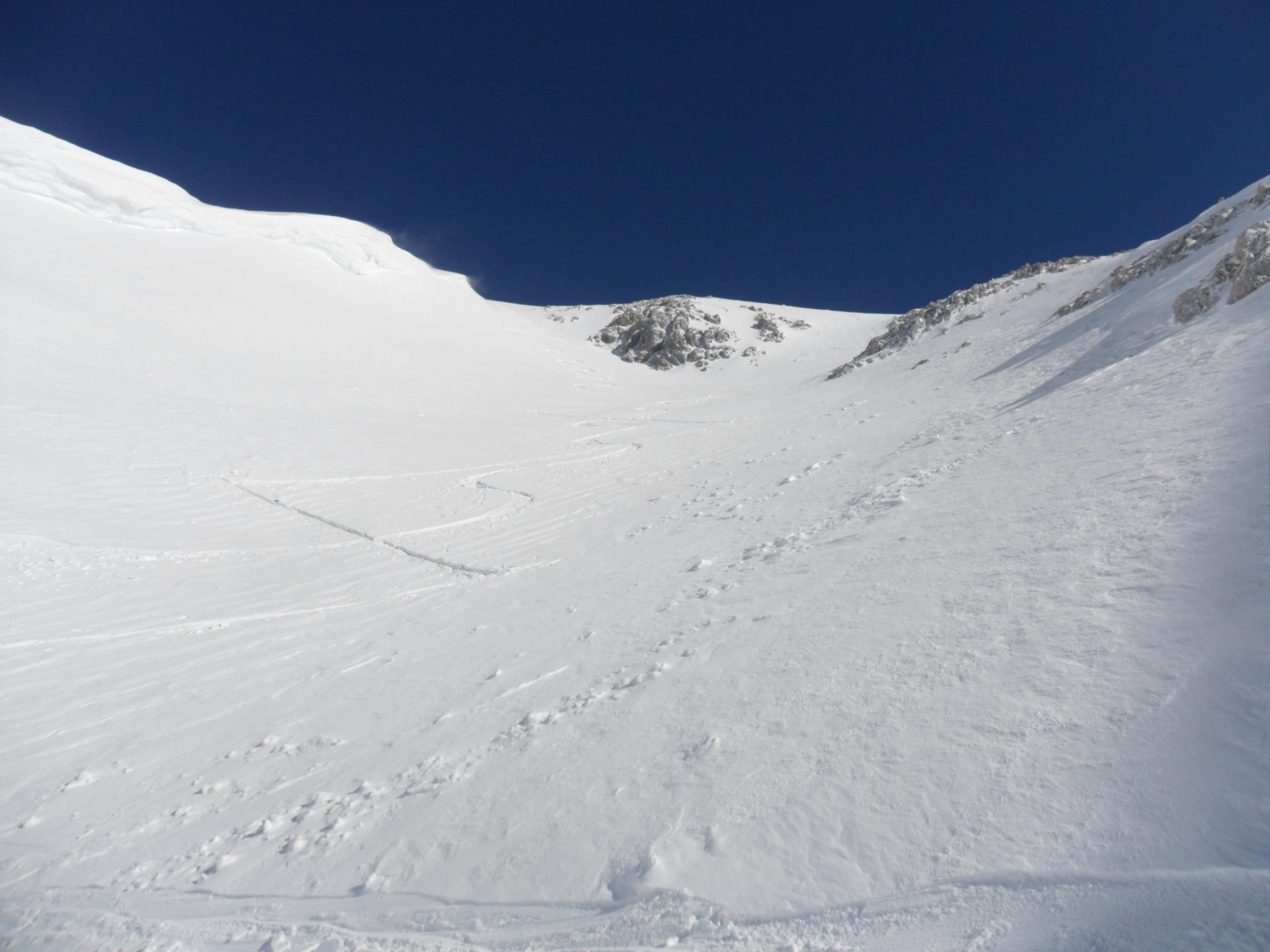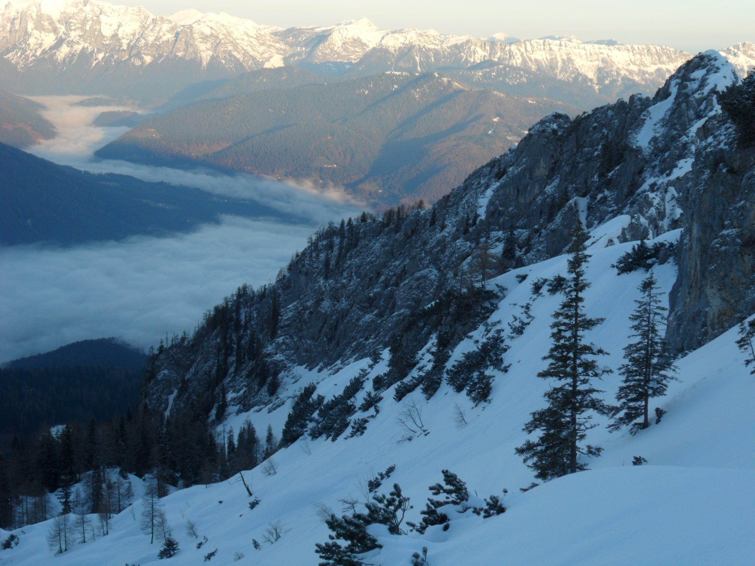 I steh a ned so gern früh auf. Aber des hat sich heid ausgezahlt. Start um 6 Uhr. Einen hab ich überholt, hinter uns kam dann aber ne zeitlang niemand mehr nach. Die Ski kann man kurz nach der Seilsicherung anschnallen. Unten harschig, ab unterhalb der zweiten Steilstufe ( Kehlsteinhausblick ) bis oben hin 10-15 cm griffiger Pulver.