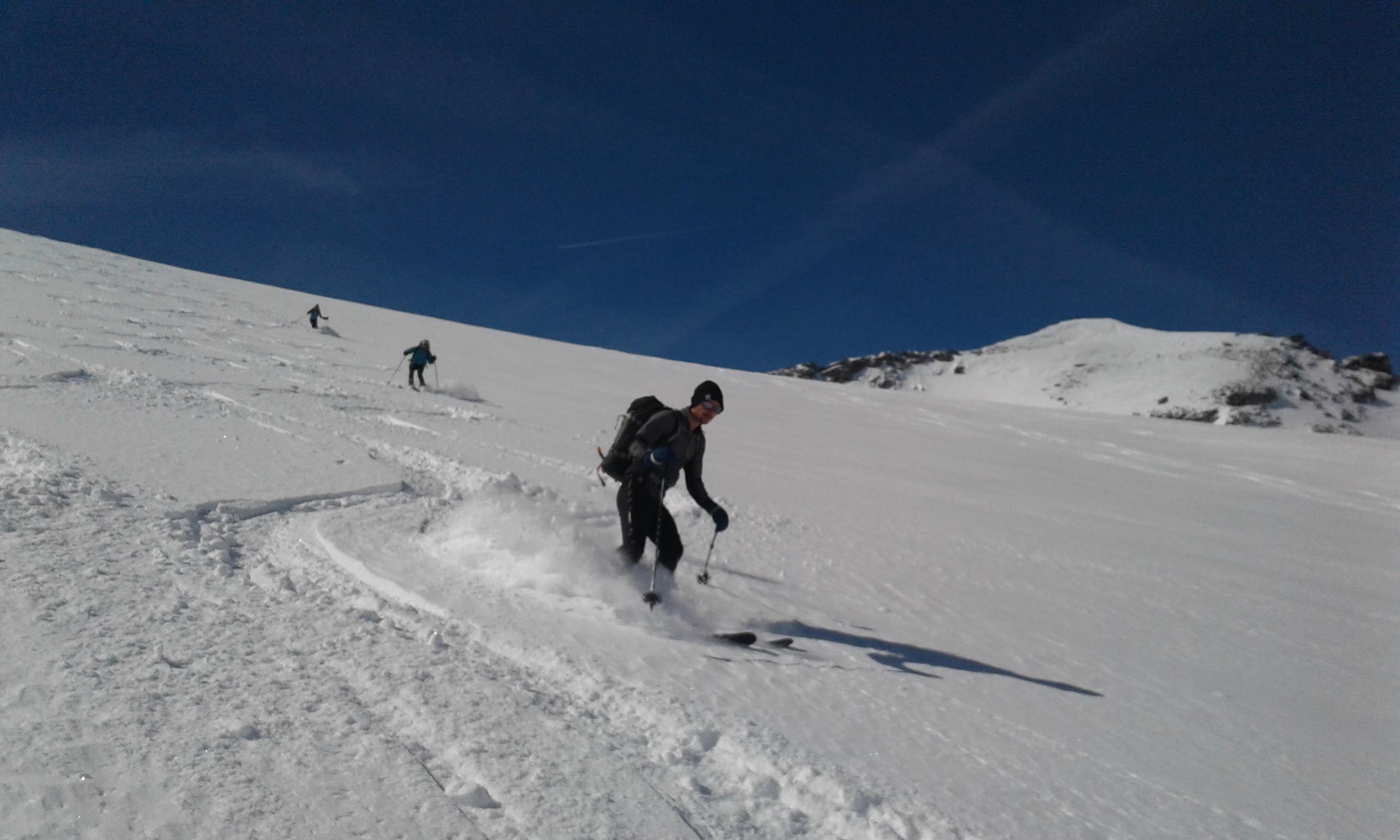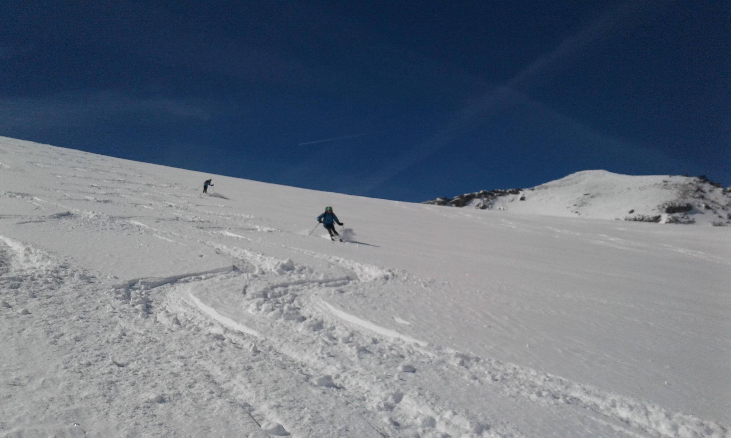 Traumhafte Abfahrt über steile Hänge und Pulverschee bis zum Weißsee.