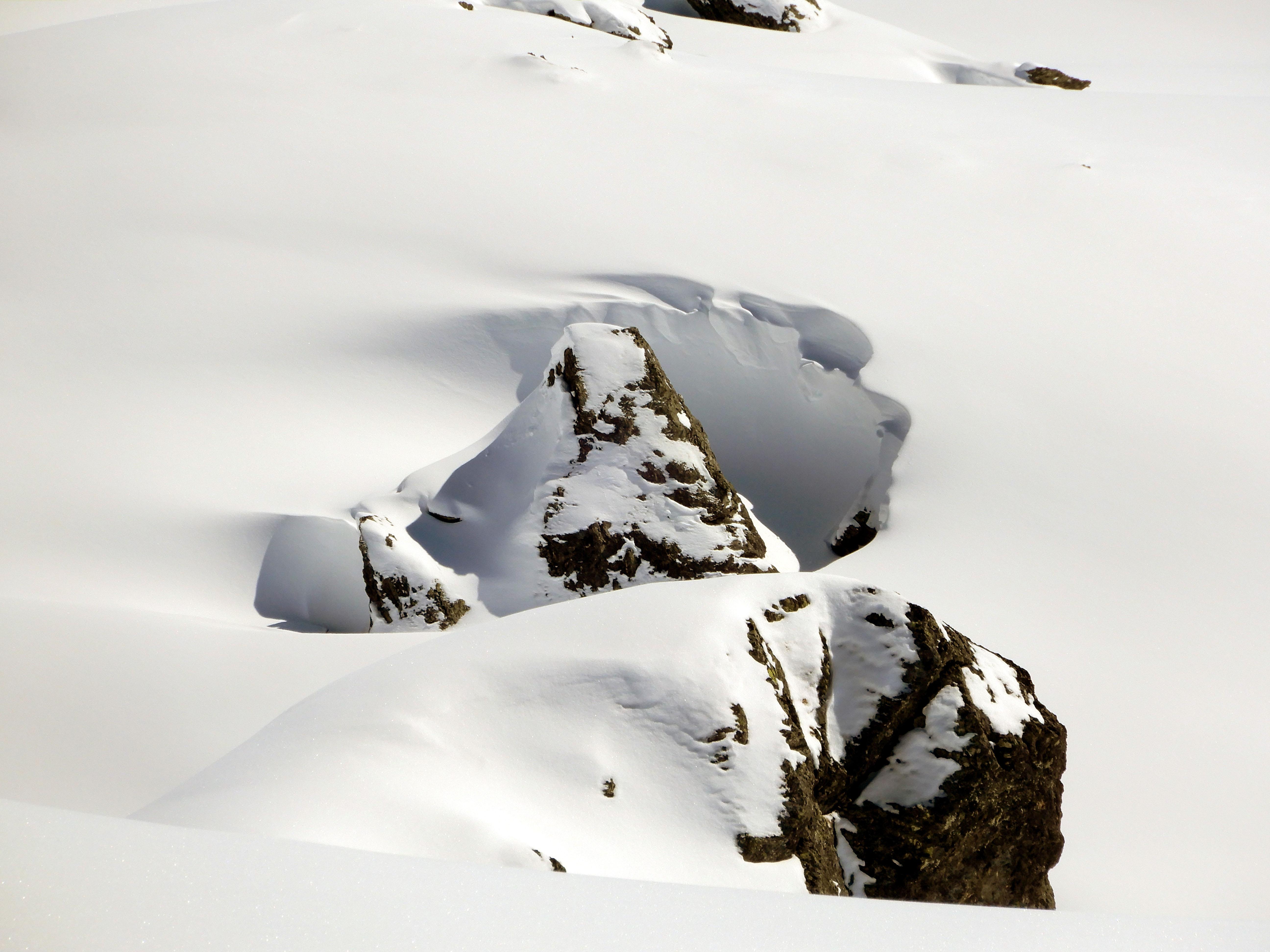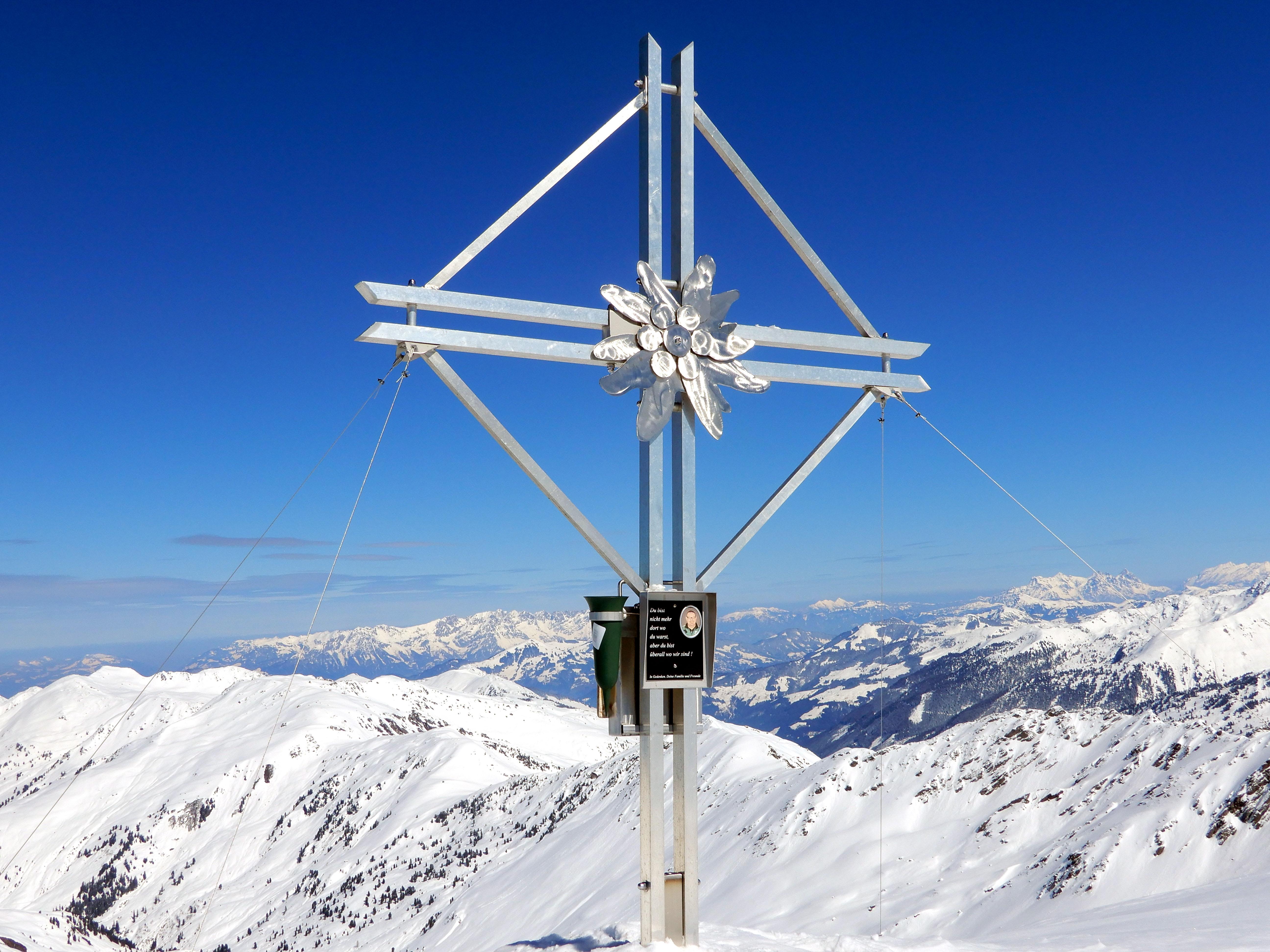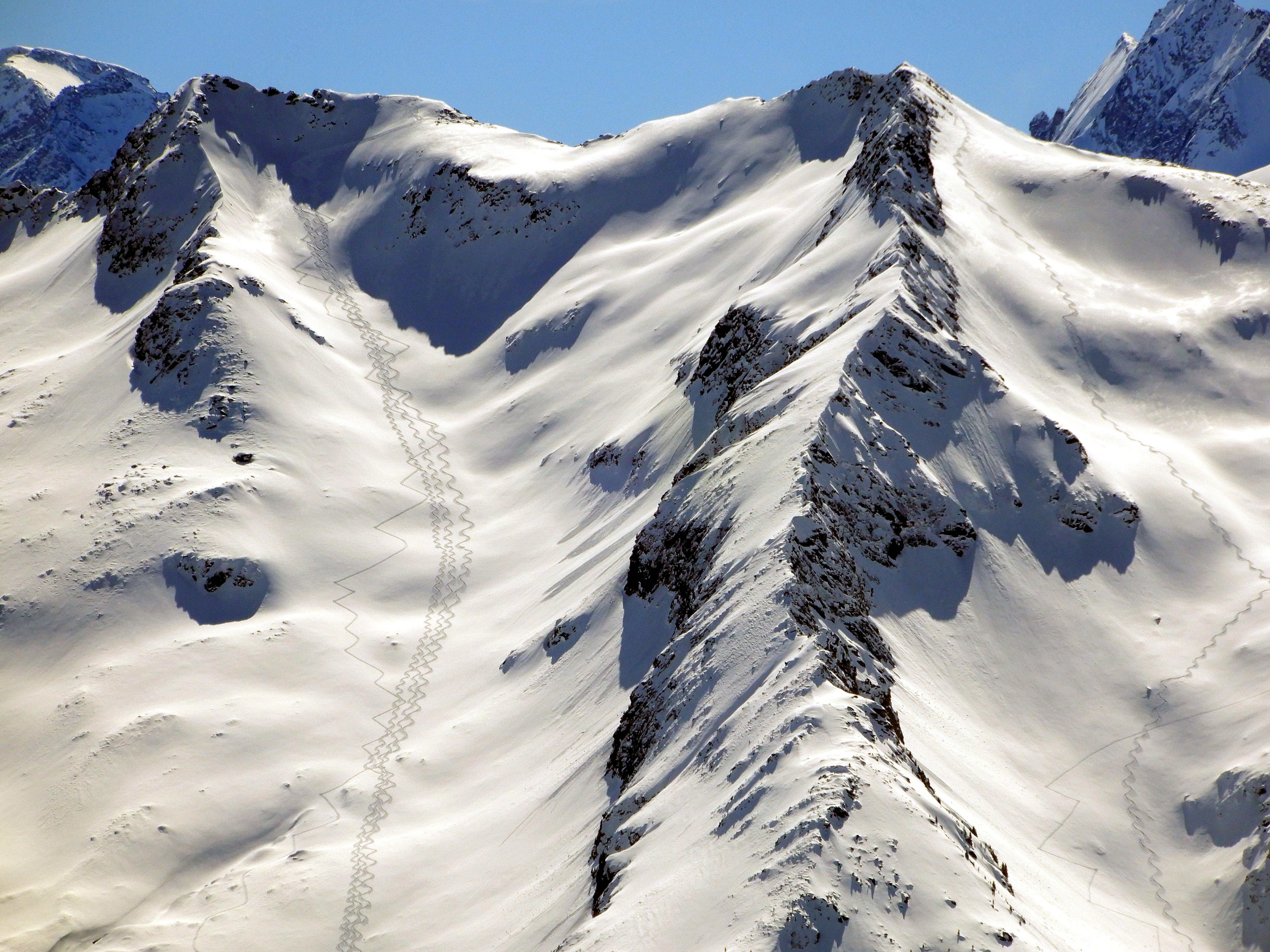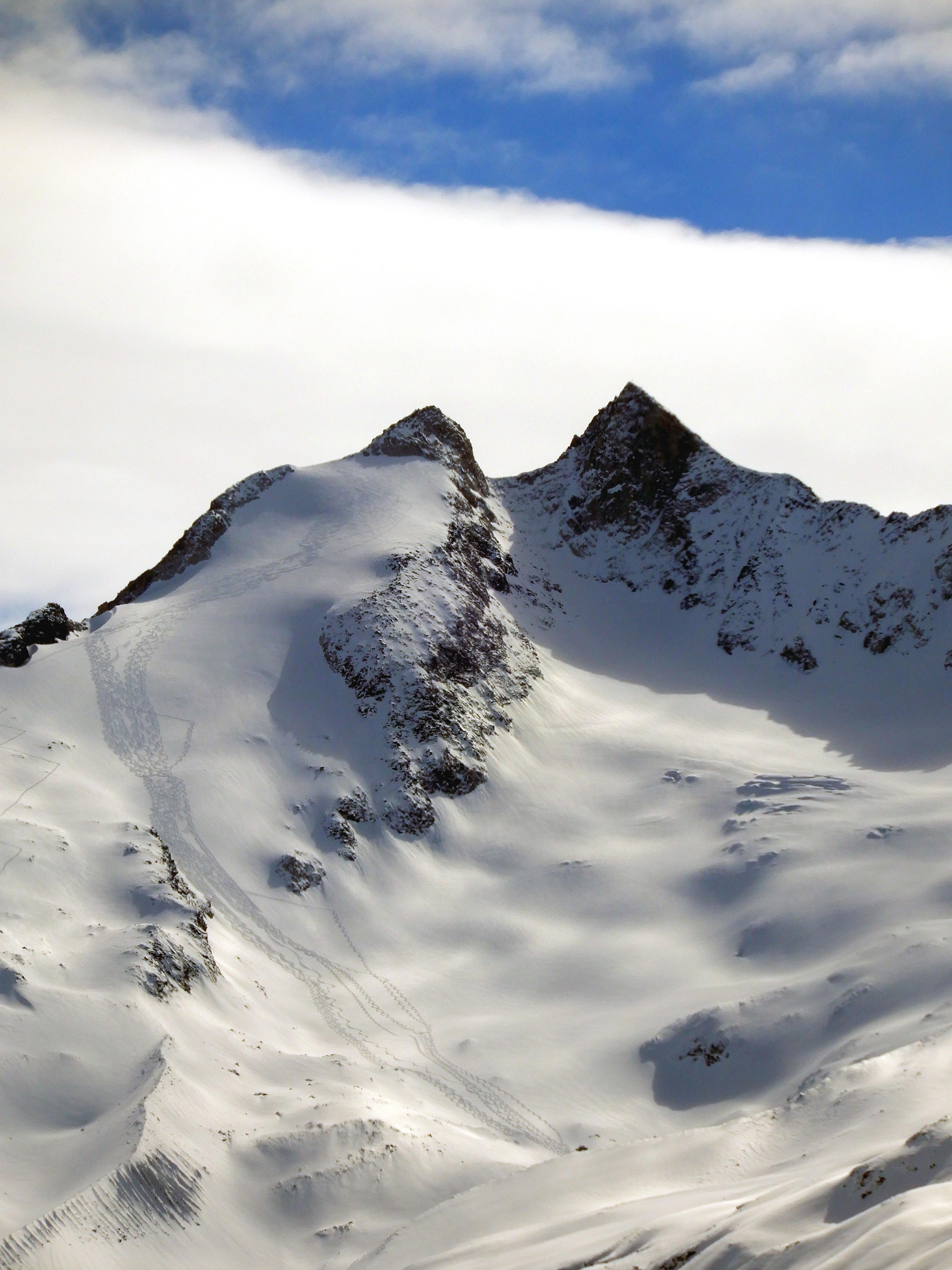Der Katzenkopf ist nach dem Kreuzjoch mit 2535 m der zweithöchste Gipfel der gesamten Kitzbühler Alpen der Rifflerkogel mit 2494 m gemeinsam mit dem nahen Torhelm der dritthöchste. Beide Gipfel sind mit Liftunterstützung von Gerlos aus gut - auch für ältere Tourengeher - erreichbar, besonders bei so guten Wetter- und Schneebedingungen wie an diesem 22.März 2018. Eine bis zu 10 cm "mächtige" Neuschneedecke auf meist tragendem Harsch ließ sogar Hochwintergefühle aufkommen. Die Verbindung zwischen Harschdeckel und Neuschnee war allerdings relativ schwach, sodass in steilerem Gelände der Neuschnee dort und da (durch Schwünge ausgelöst) abrutschte.