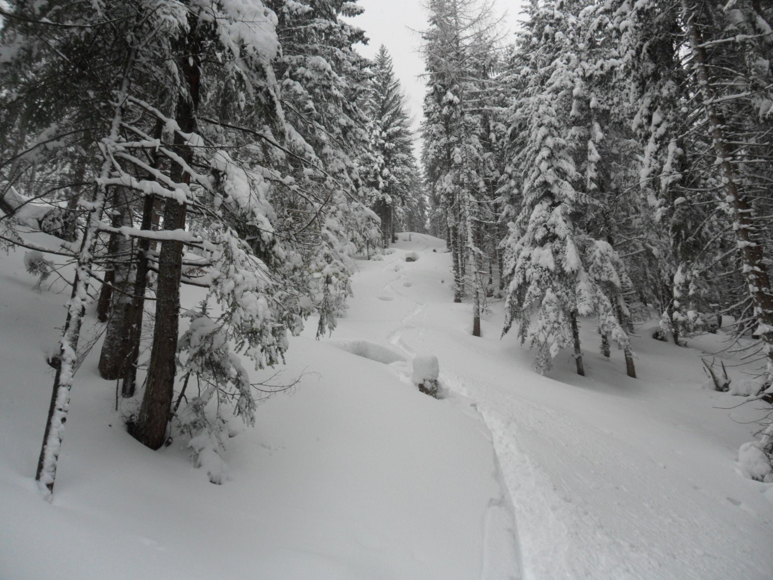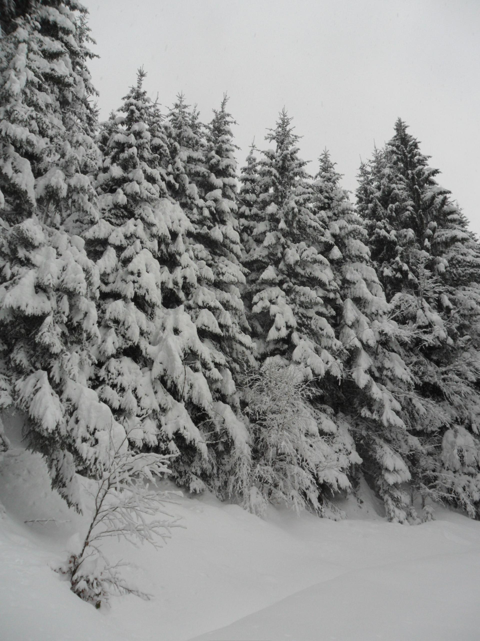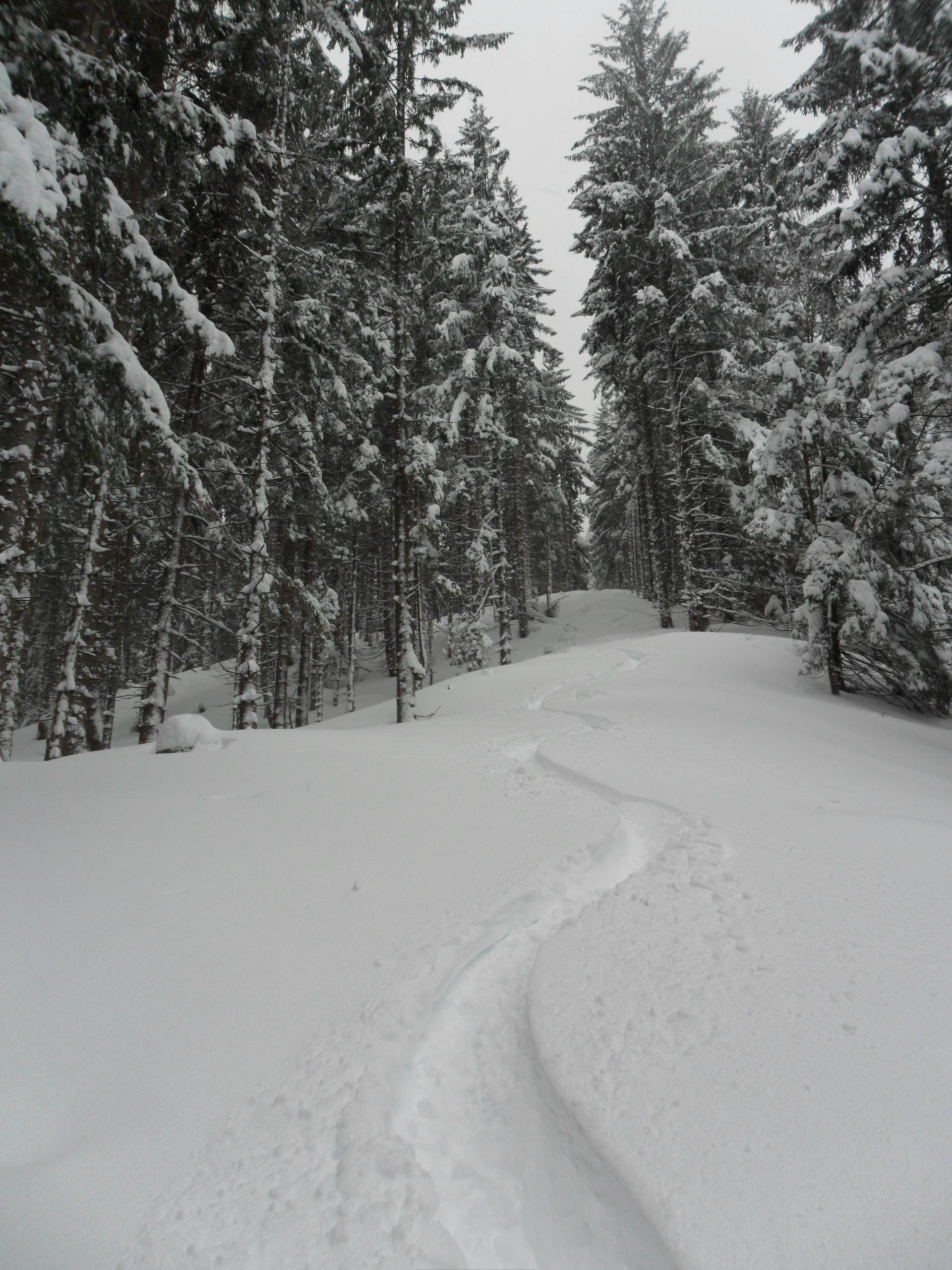 Das Spuren, bei dem Pappschnee war anstrengend. Weiter oben war dann der Schnee stellenweise fast Kniehoch. Die Abfahrt auf dem Kartoffelsalat anspruchsvoll. Für flockigen Pulver muss man wohl noch weiter rauf ? Wobei dort der Schnee wahrscheinlich stark windbehandelt ist. Schneeverfrachtungen hat es selbst im Wald gegeben.