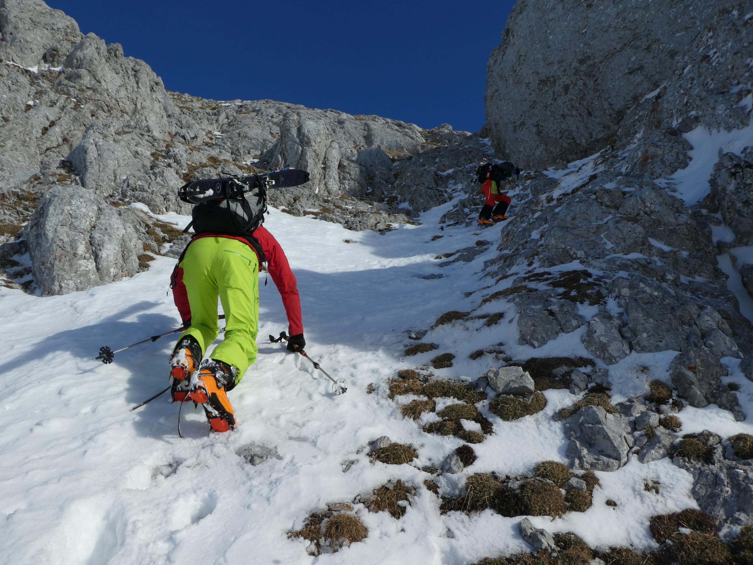 Leobner Mauer Ochsenboden; vom Hochturm direkt in den Rötzgraben (Anschnallen am Rande des Gipfelplateaus); Leobner Mauer - Ochsenboden - Trenchtlingrinne - Ausgangspunkt