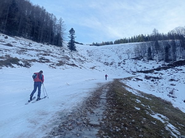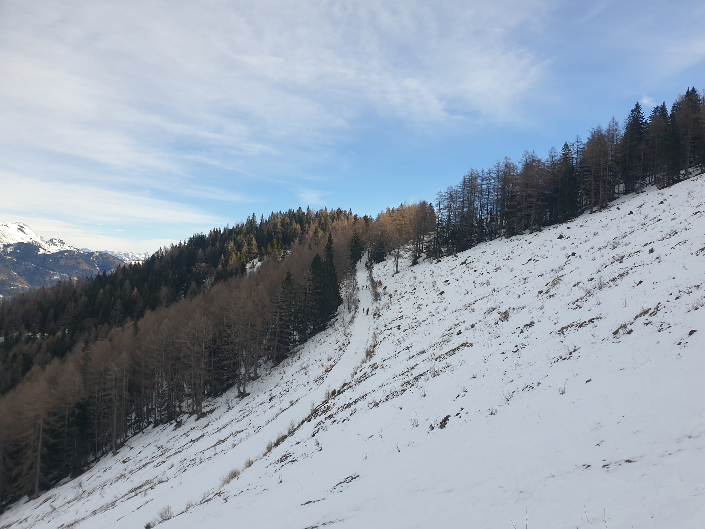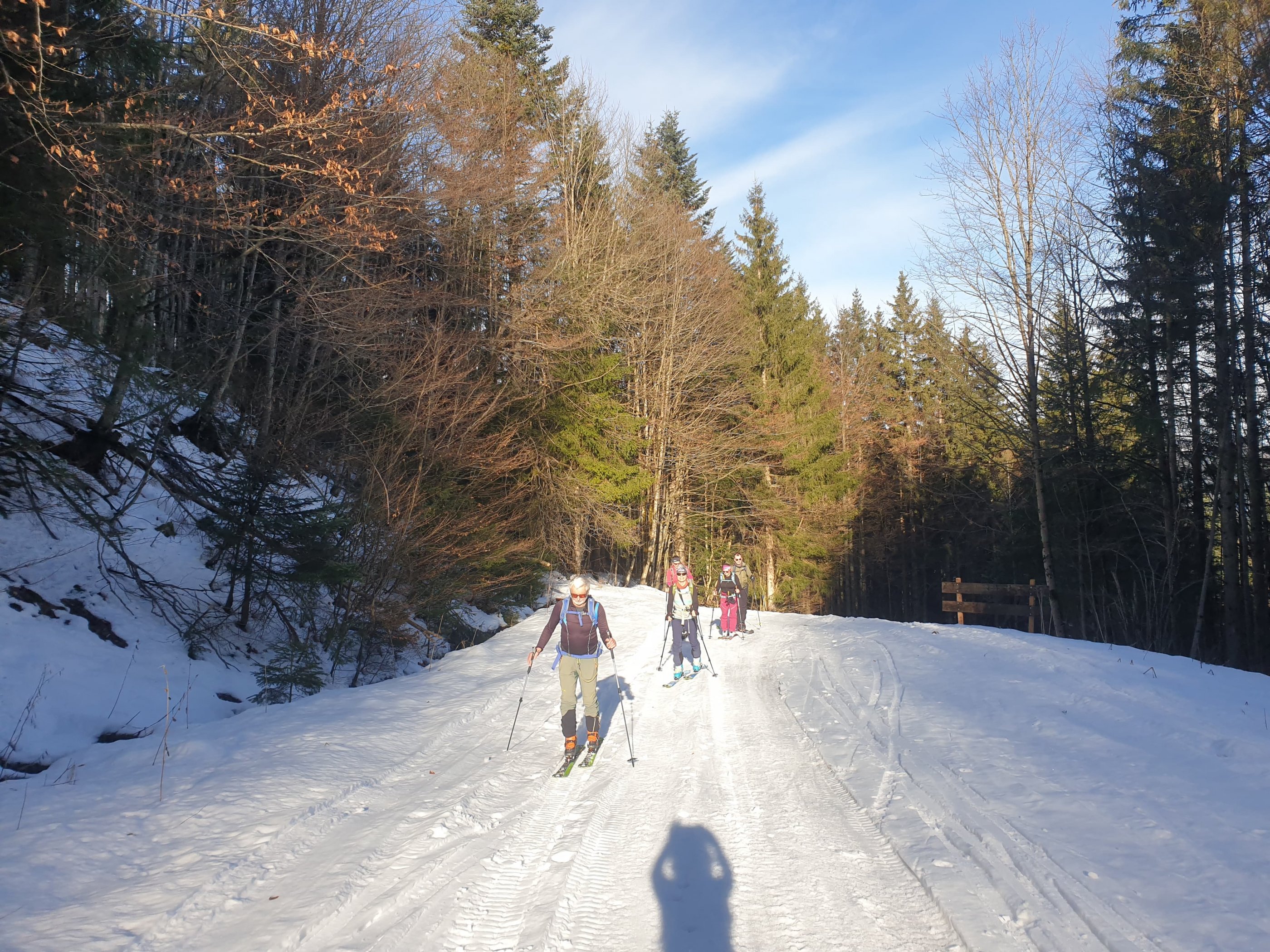 Die Abfahrt ist nur noch über die Forststraße möglich und die war extrem hart und eisig. Bei einem übersichtlichen und moderaten Fahrstill kamen wir heute noch ohne Tragepassagen runter.
