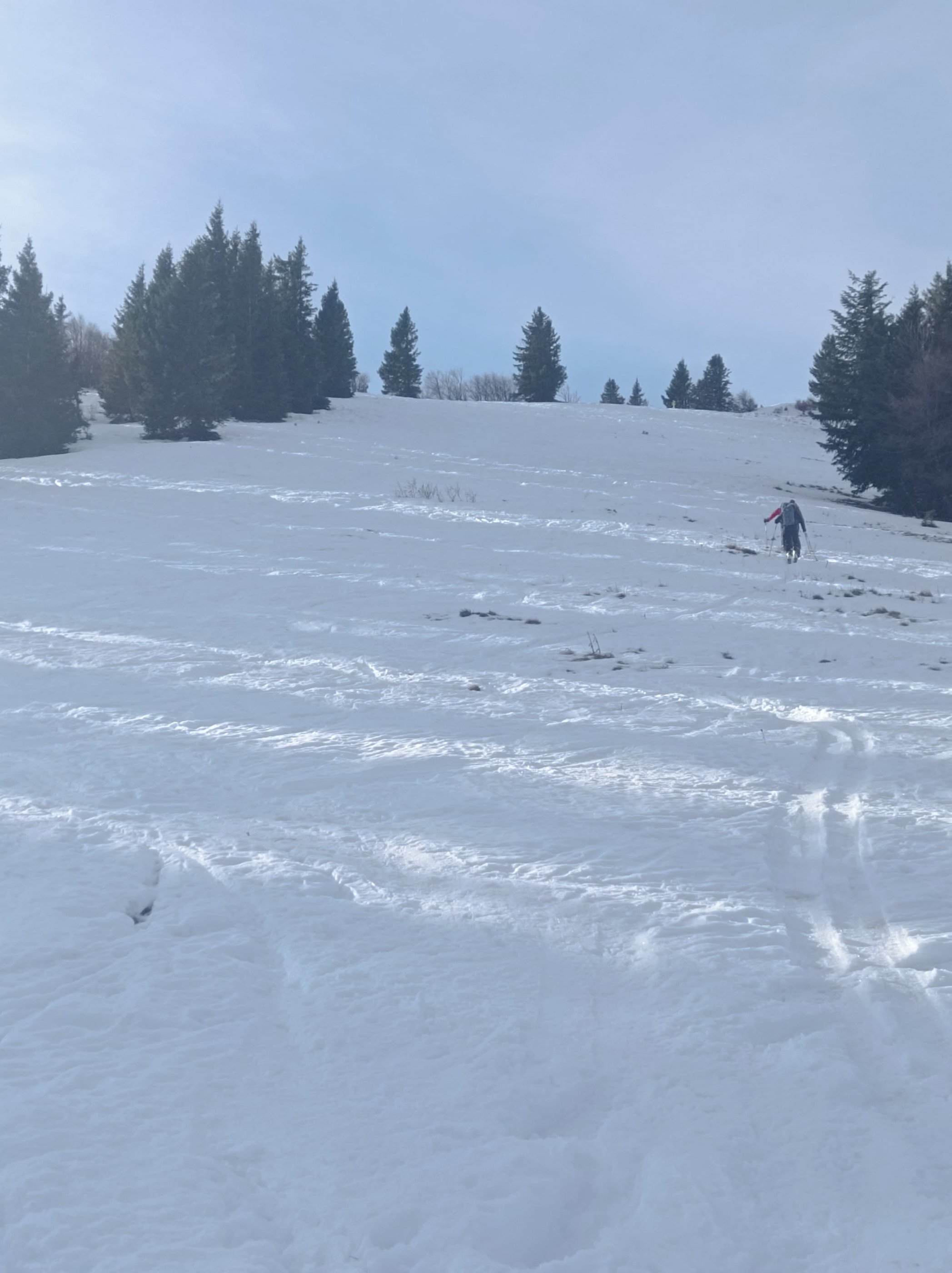 Der erste Wiesenhang am Laimer Lift war noch vielversprechend, aber desto weiter man hinaufkommt, desto weniger wird der Schnee.