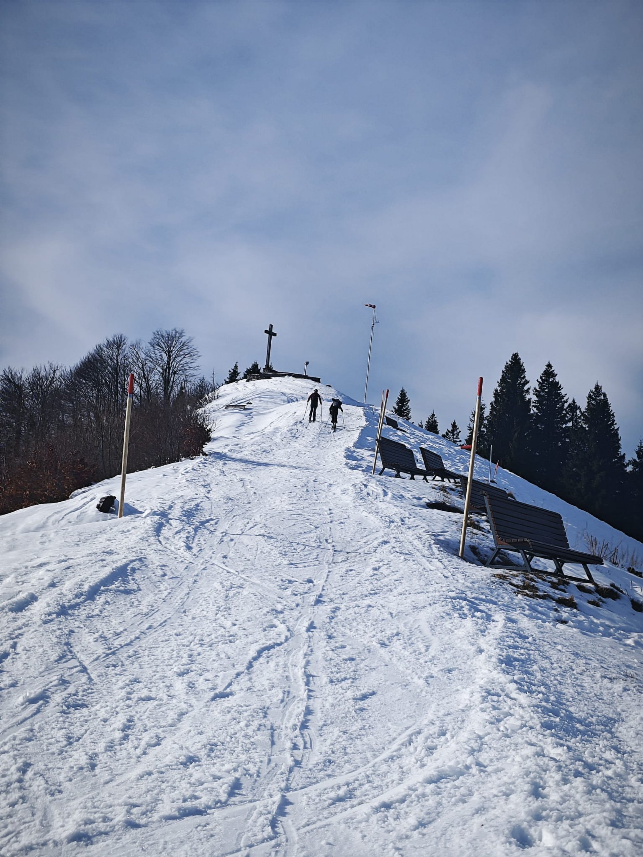 bereits um die Skibeläge gebangt. Weil es am Gipfelkreuz wunderbar warm