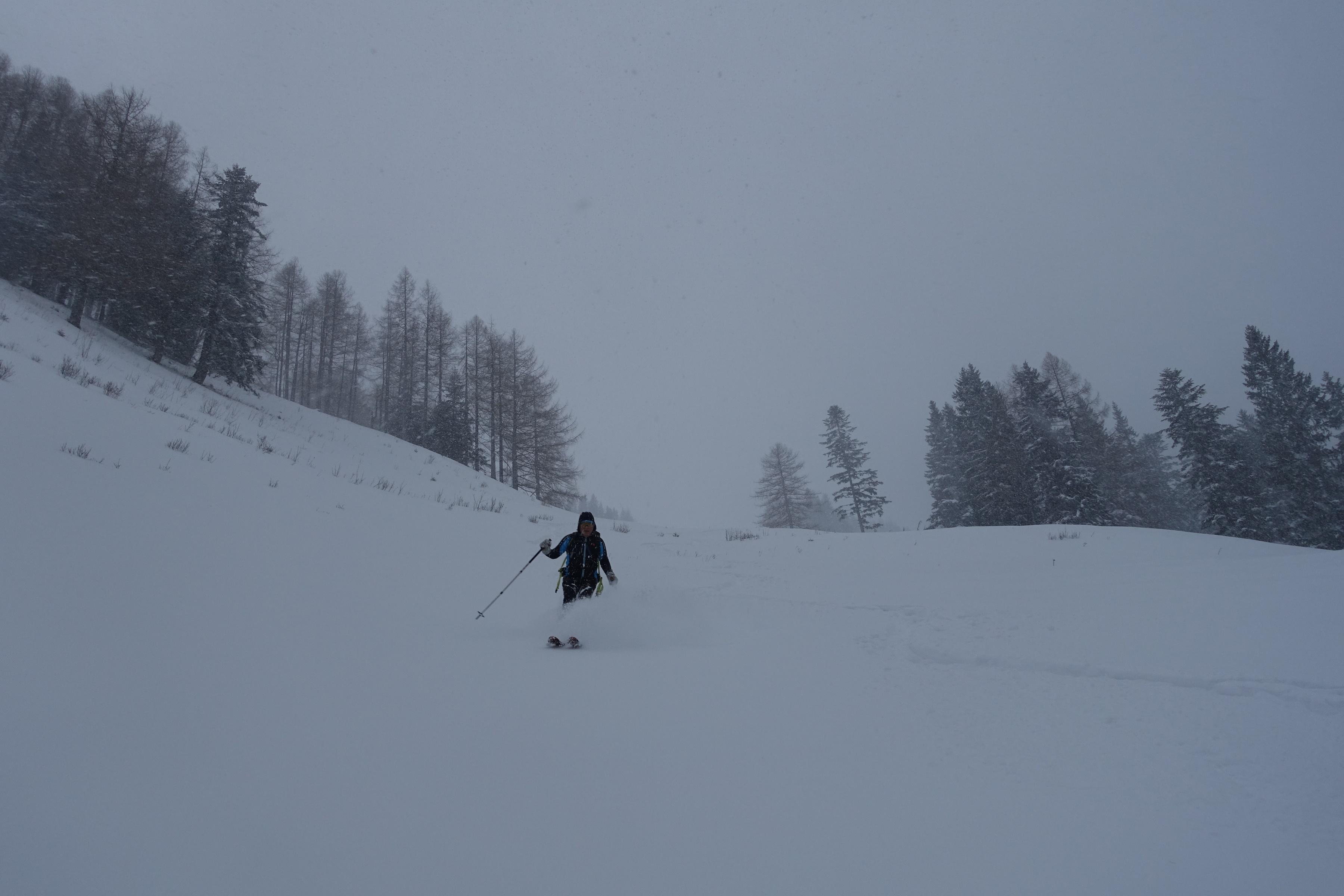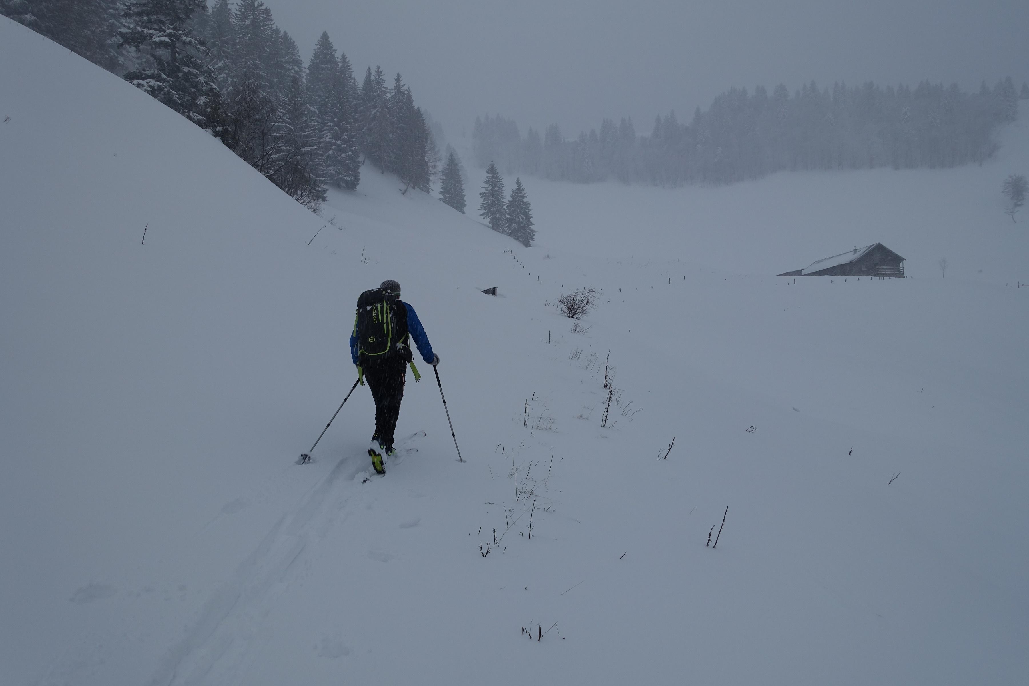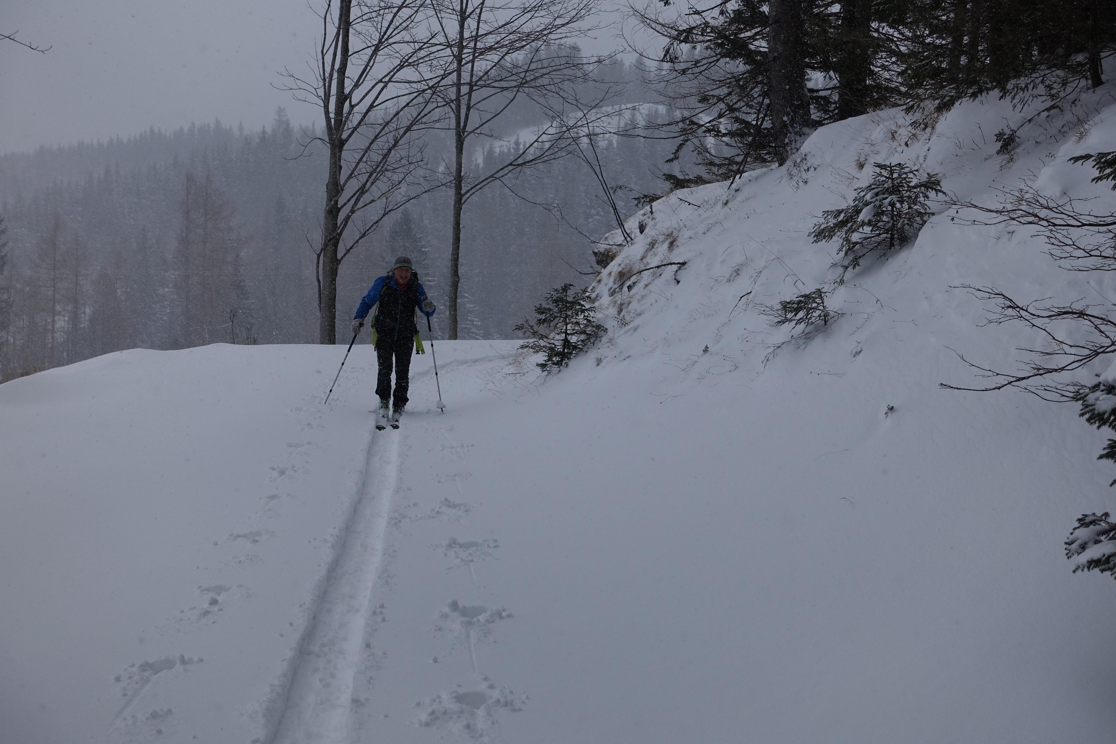 Inspiriert von Johann Allgeiers Bericht "Zwölferhorn vom 29.11." machten wir uns heute auf den Weg zum Pillstein auf. Am Parkplatz Tiefbrunnau um 10.15 Uhr nur 4 Autos und ca. 20cm Neuschnee bis zum Gipfel jedoch auf ca 40/50cm ansteigend - starker Schneefall, difuses Licht und oben teilw. windverfrachtet. Ab der Abzweigung zum Zwölferhorn war Spuren angesagt (außer uns Beiden niemand unterwegs). Abfahrt im lockeren Pulver - im oberen Bereich auf festem Untergrund; unten ohne Unterlage aber ohne jeglichen Steinkontakt - bis zum Auto schön zu fahren. Für die lange Querfahrt nach der Stubneralm hatte es fast zuviel Schnee. Keine Anzeichen von Lawinengefahr.
