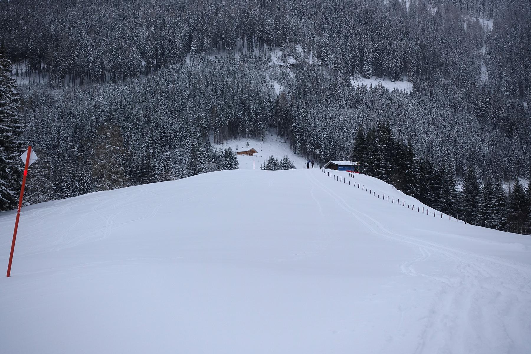Willkommen sind hier die Tourengeher! Es ist lawinensicher, hat 500 Höhenmeter, eine gemütliche Hütte unterm "Gipfel", wo das Feuer im offenen Kamin brennt, und die Parkplätze sind gebührenfrei. Wird der Schnee zu tief, fährt auch mal eine Pistenraupe alles platt. Für Einsteiger, Spätaufsteher und alle, die dem Nebel und Wind weiter oben fernbleiben wollen, die Tour der Wahl.