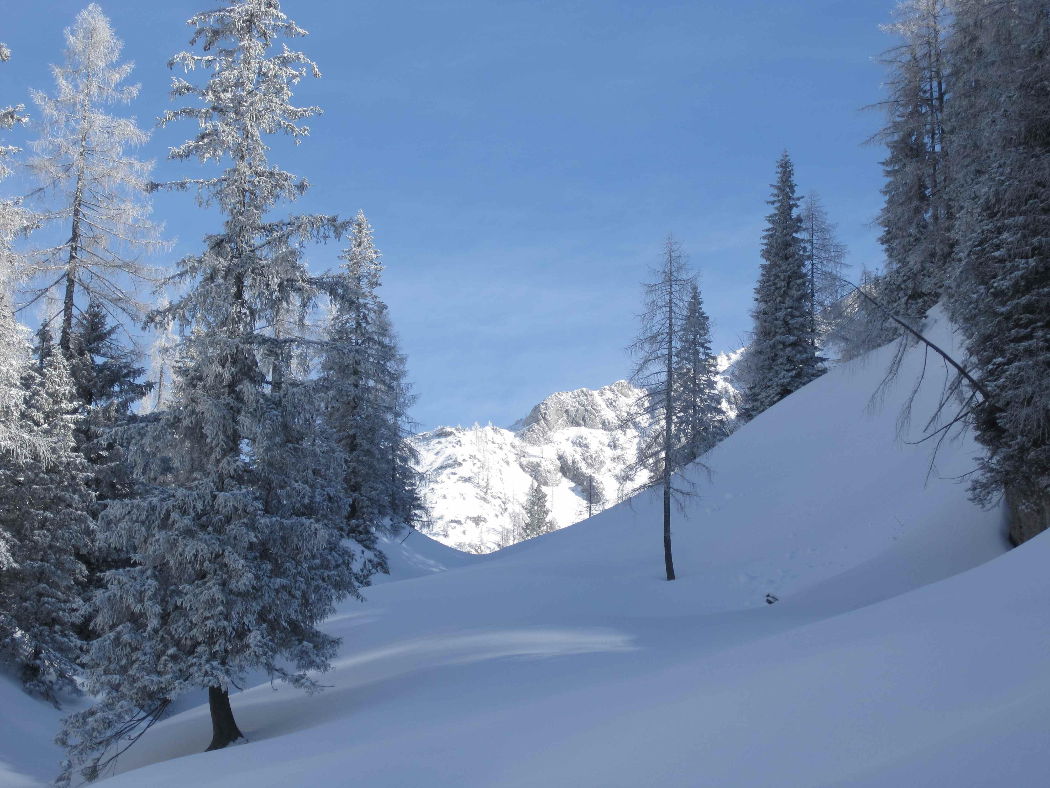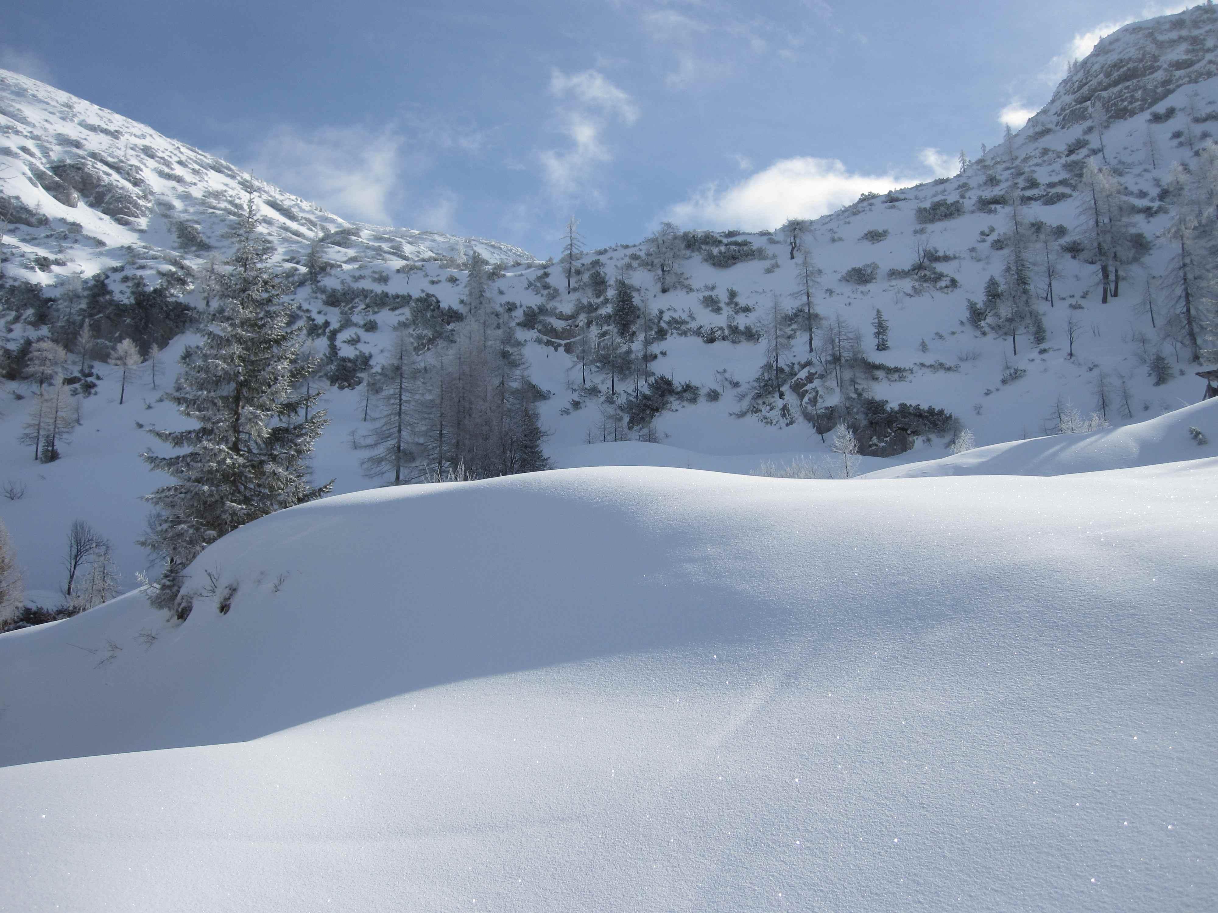 Teilweise mühsam zum Gehen da eingewehte Schnee auf der vereisten Unterlage immer wieder wegrutschte.