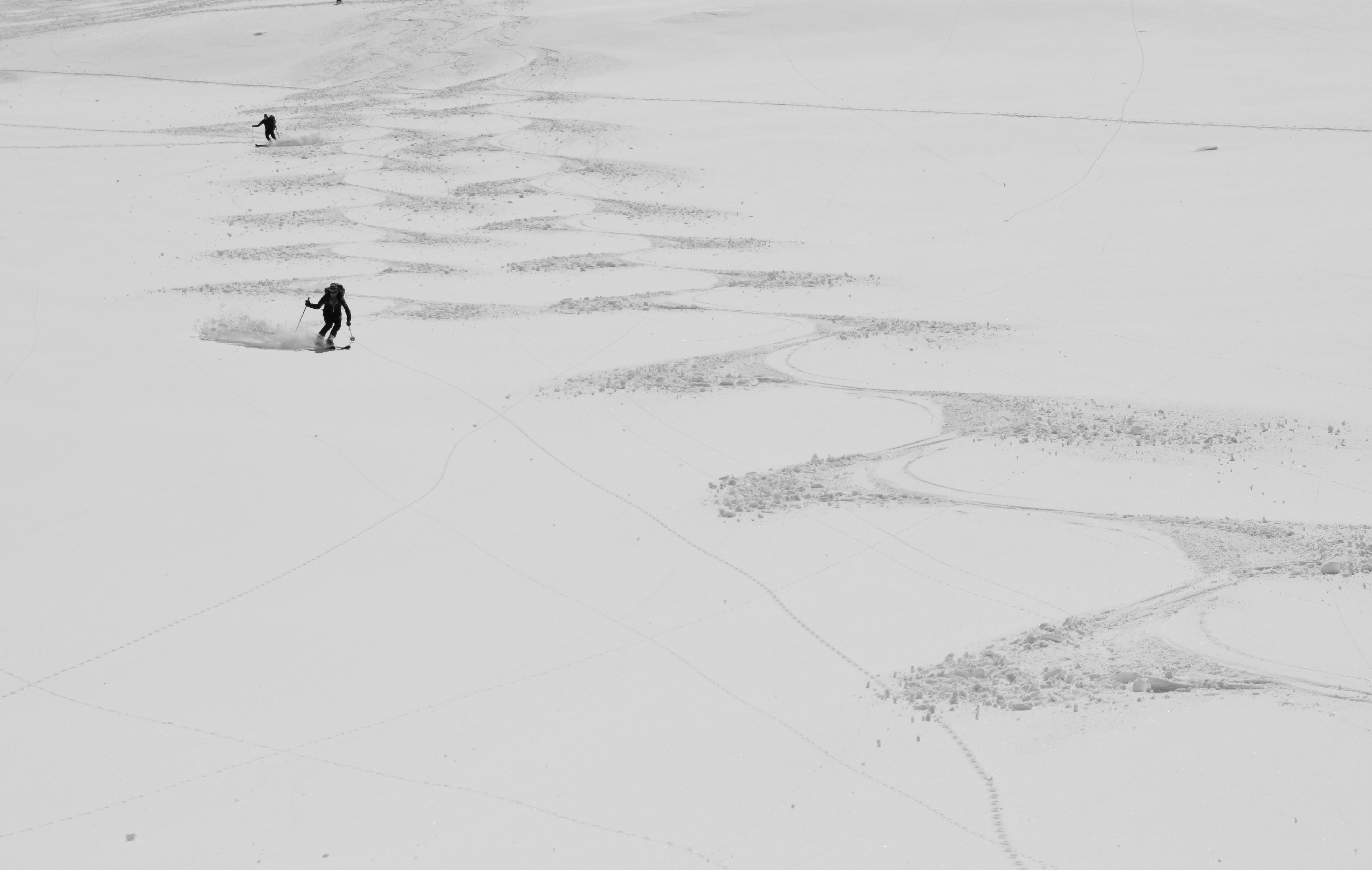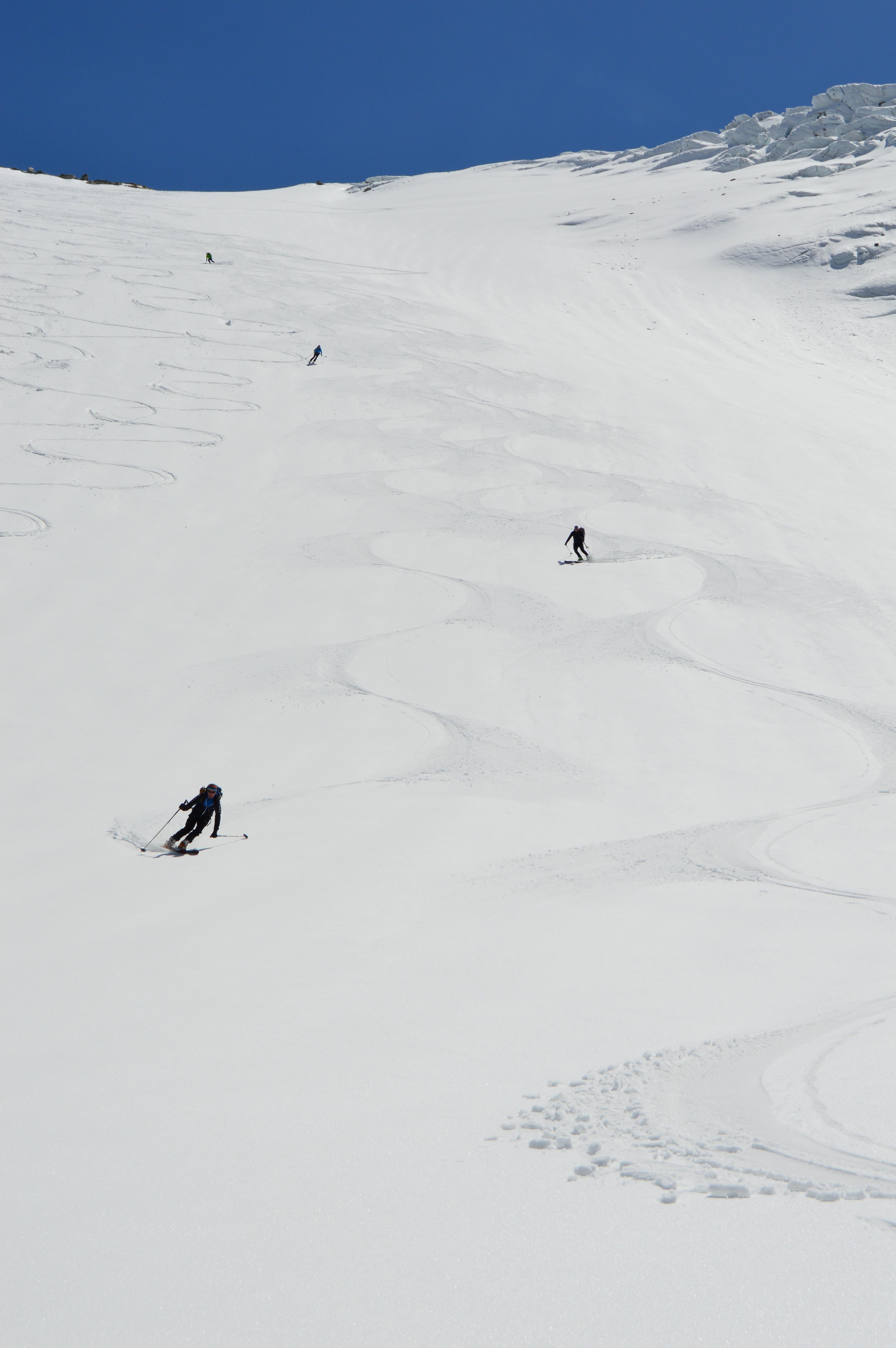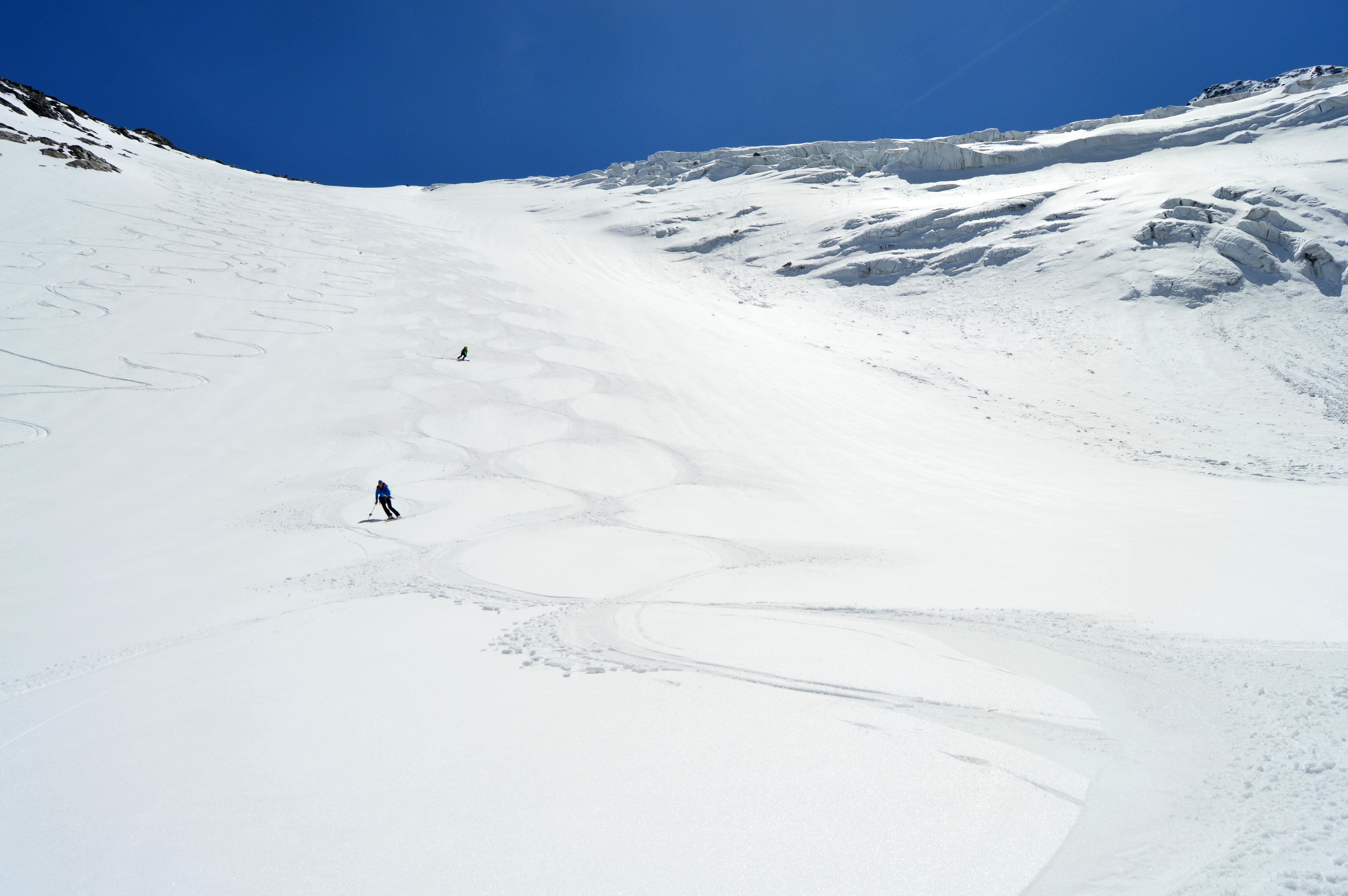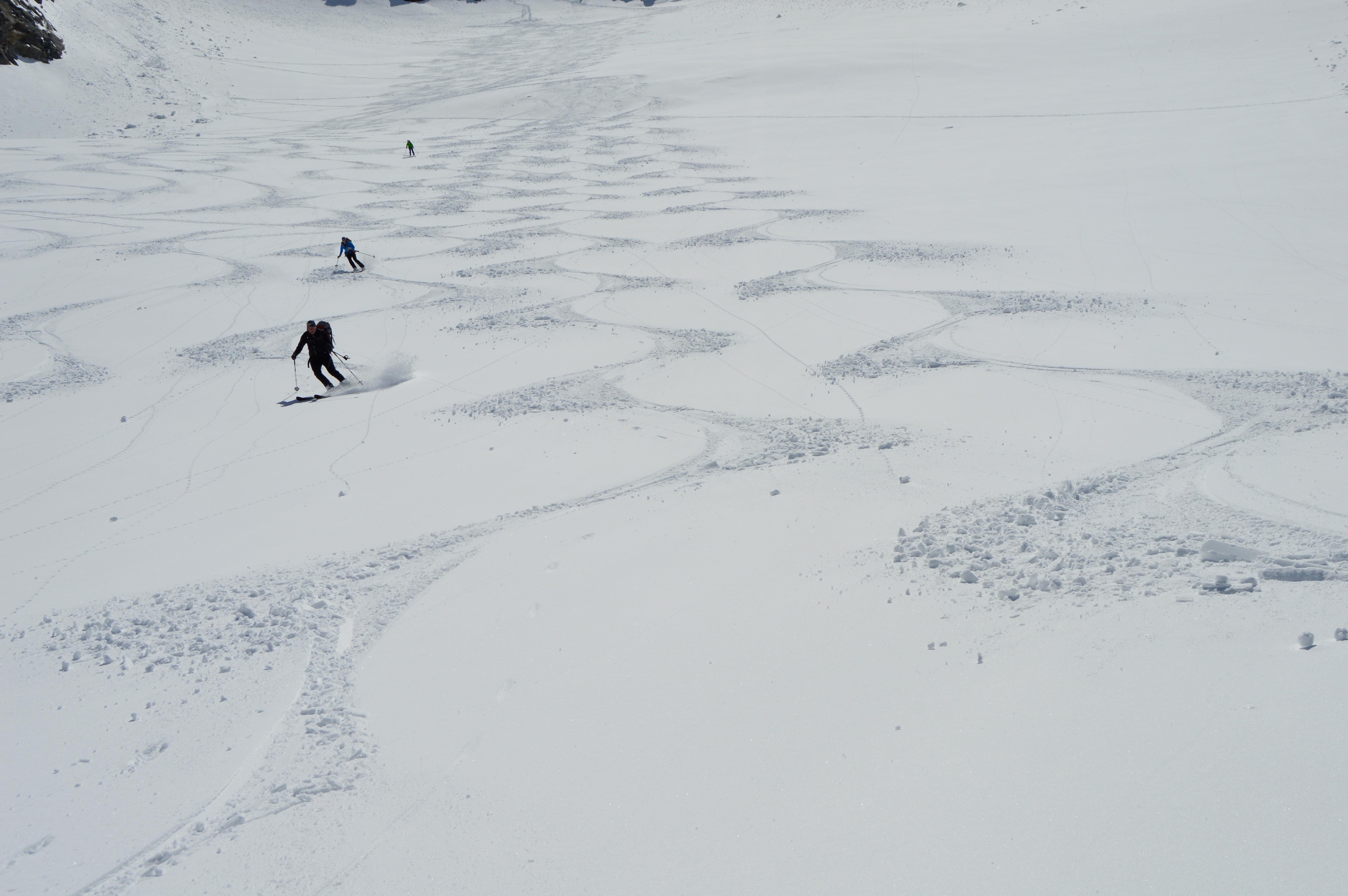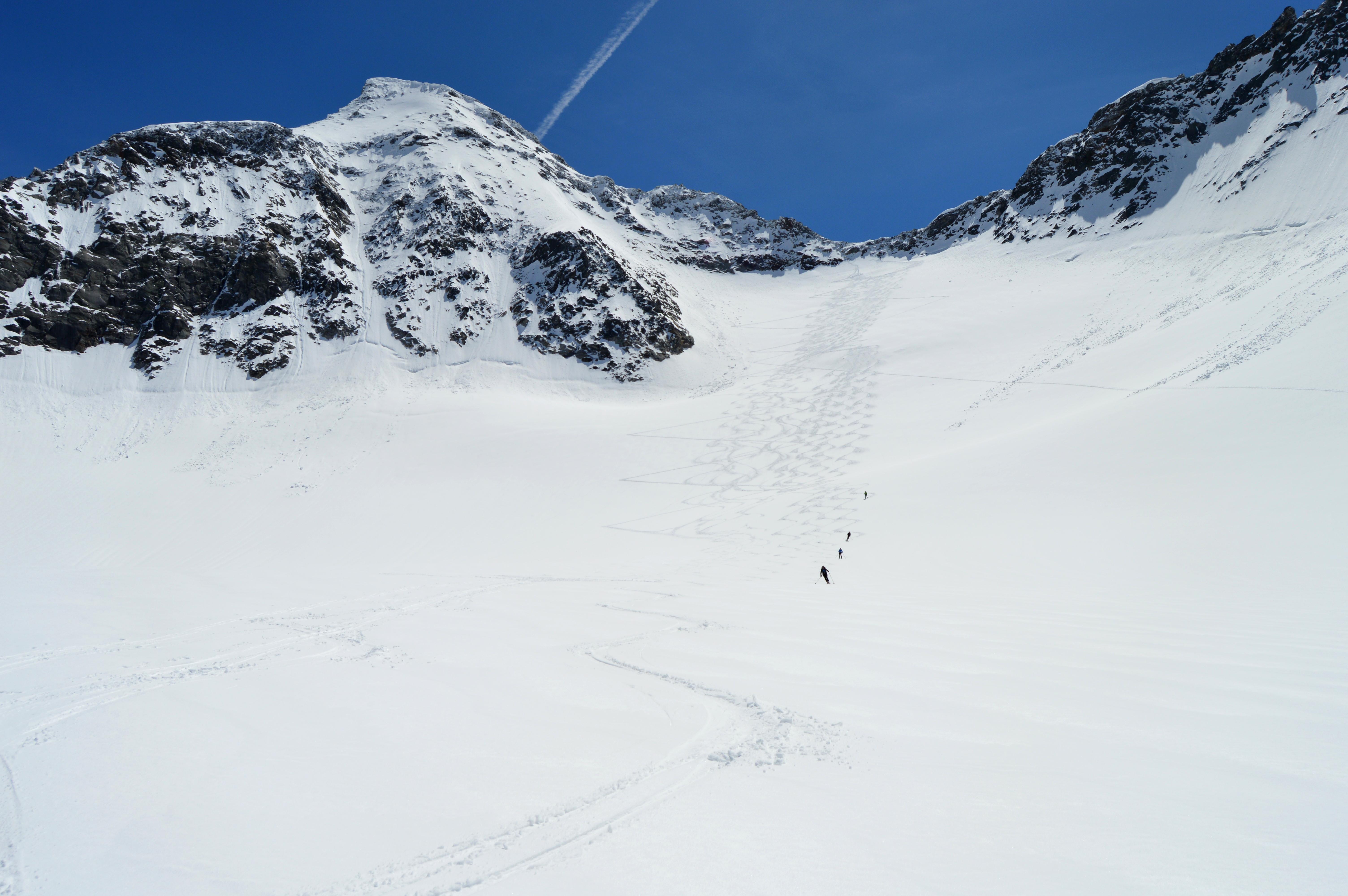 Die Geiger-Gipfelflanke war komplett vom Kreuz weg mit Schi befahrbar :-).