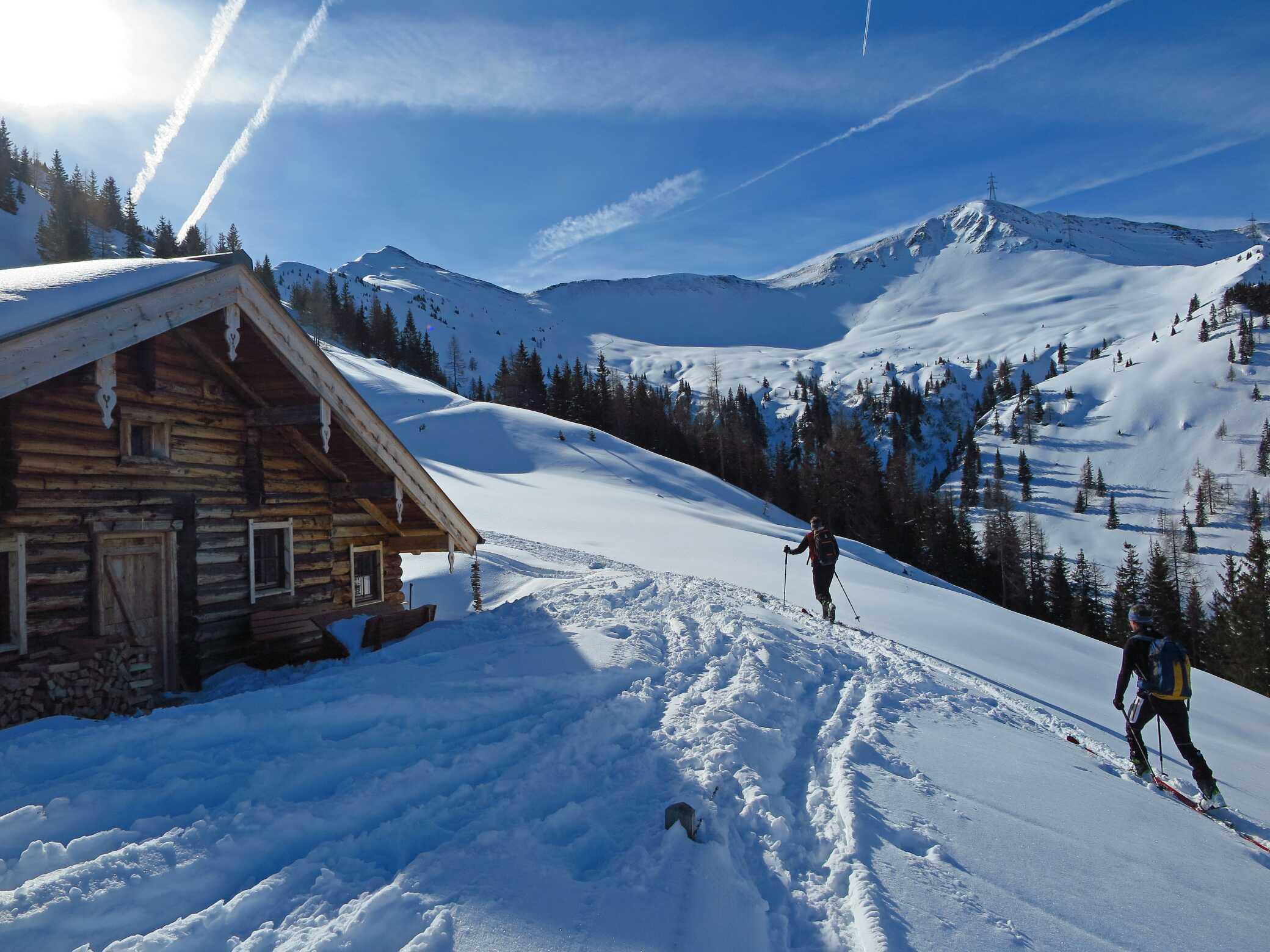 Vom Schwarzachengraben (1261) über die Huber-Hochalm (1734) zum Medalkogel (2123); Abfahrt NW-seitig bis zur Waldgrenze und Wiederaufstieg über Medalscharte zum Bärensteigkogel (2225). Abfahrt N-seitig zurück in den Schwarzachengraben.