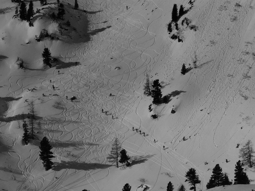Herrliches Wetter, kaum Wind, einsam (am Bösenstein Massenauftrieb), lawinentechnisch süd- u. ostseitig im Bereich Seekarspitze, Rübe, Hauseck alles abgegangen, was noch irgendwie möglich war