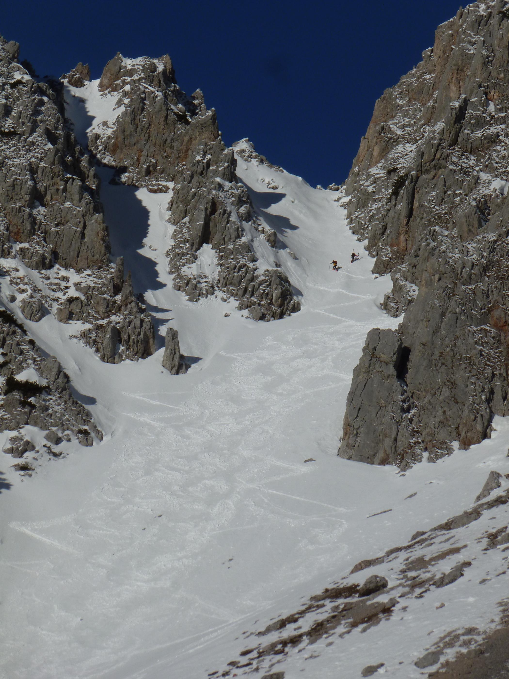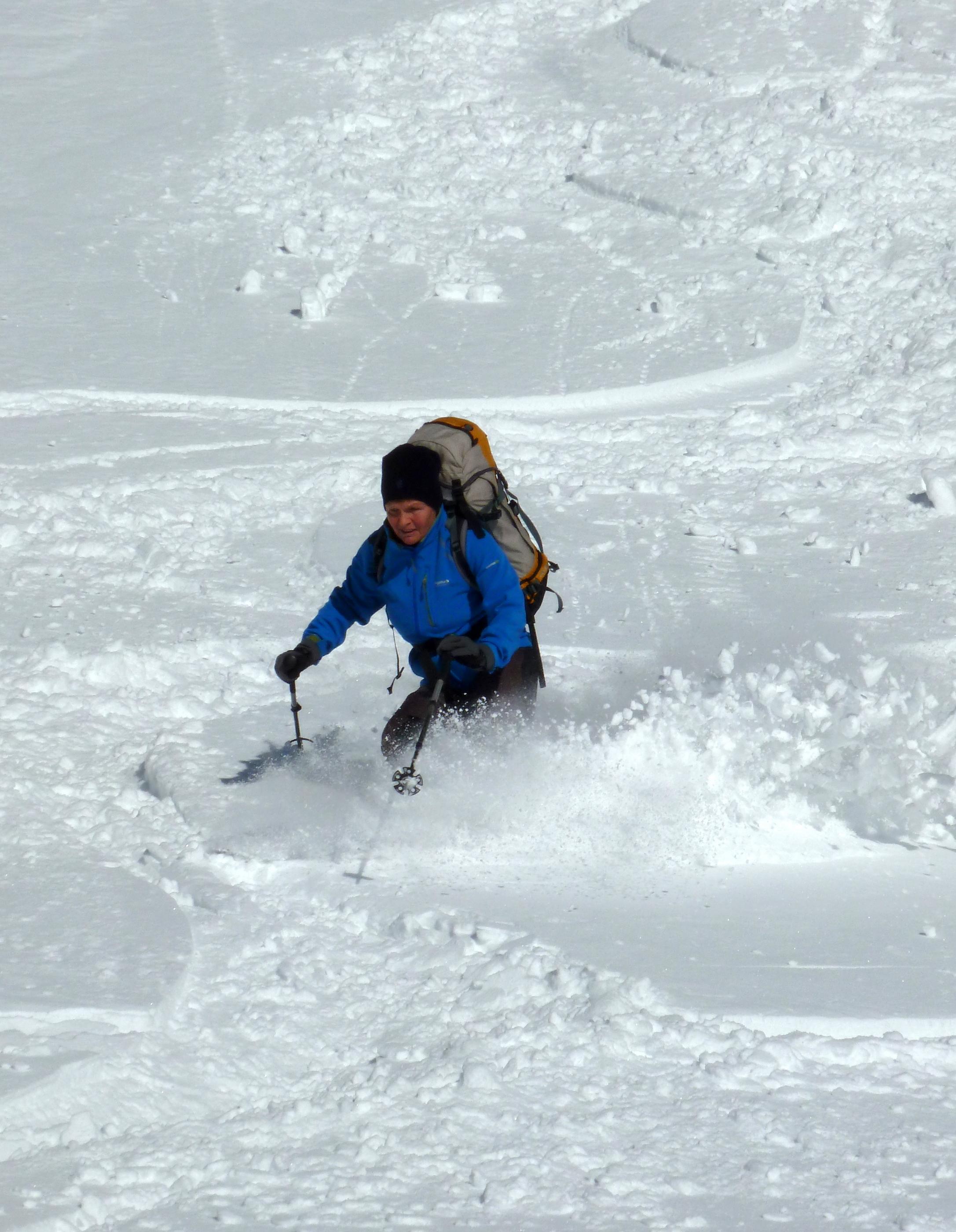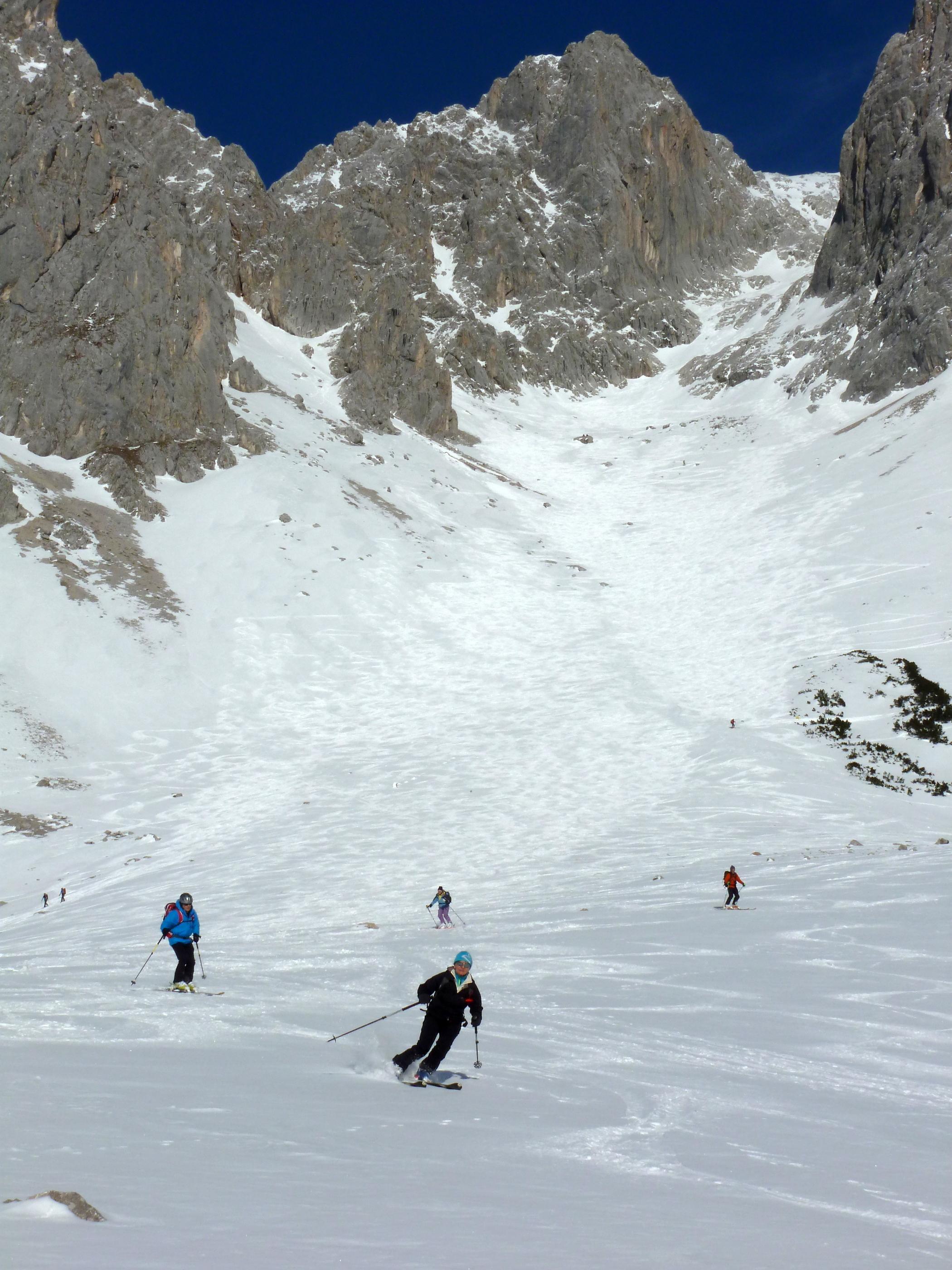 Dem Bericht und den Spuren von N. Zollhauser folgend, konnten wir zum Jahresausklang gleichfalls noch letzte Pulver-Reste entdecken, wobei Wind und Sonne schon wieder ein Stück Arbeit mehr verrichtet haben. Gegenüber dem gestrigen Pulver im Gebiet um die Südwiener im Vergleich jedoch deutlich geringere Neuschnee-Auflage. Auch alle Varianten der Sulzenschneid und des Windlegerkares mit seinen steilen Seitenästen waren stark besucht. Bei der Abfahrt konnten wir gegen 13:00 Uhr einen spontanen Lawinen-Abgang aus einer der steilen Rinnen beobachten, der auch über ein bereits teilweise ausgapertes Geröllfeld drüberfuhr. Den Latschengürtel rund um den Schnittlauchmoosboden sollte man bei den dzt. Verhältnissen zumindest in der Abfahrt am besten umgehen. Abfahrt auf der Rodelbahn bis zum Parkplatz befahrbar, ganz unten zwar eisig, aber weitestgehend steinfrei!