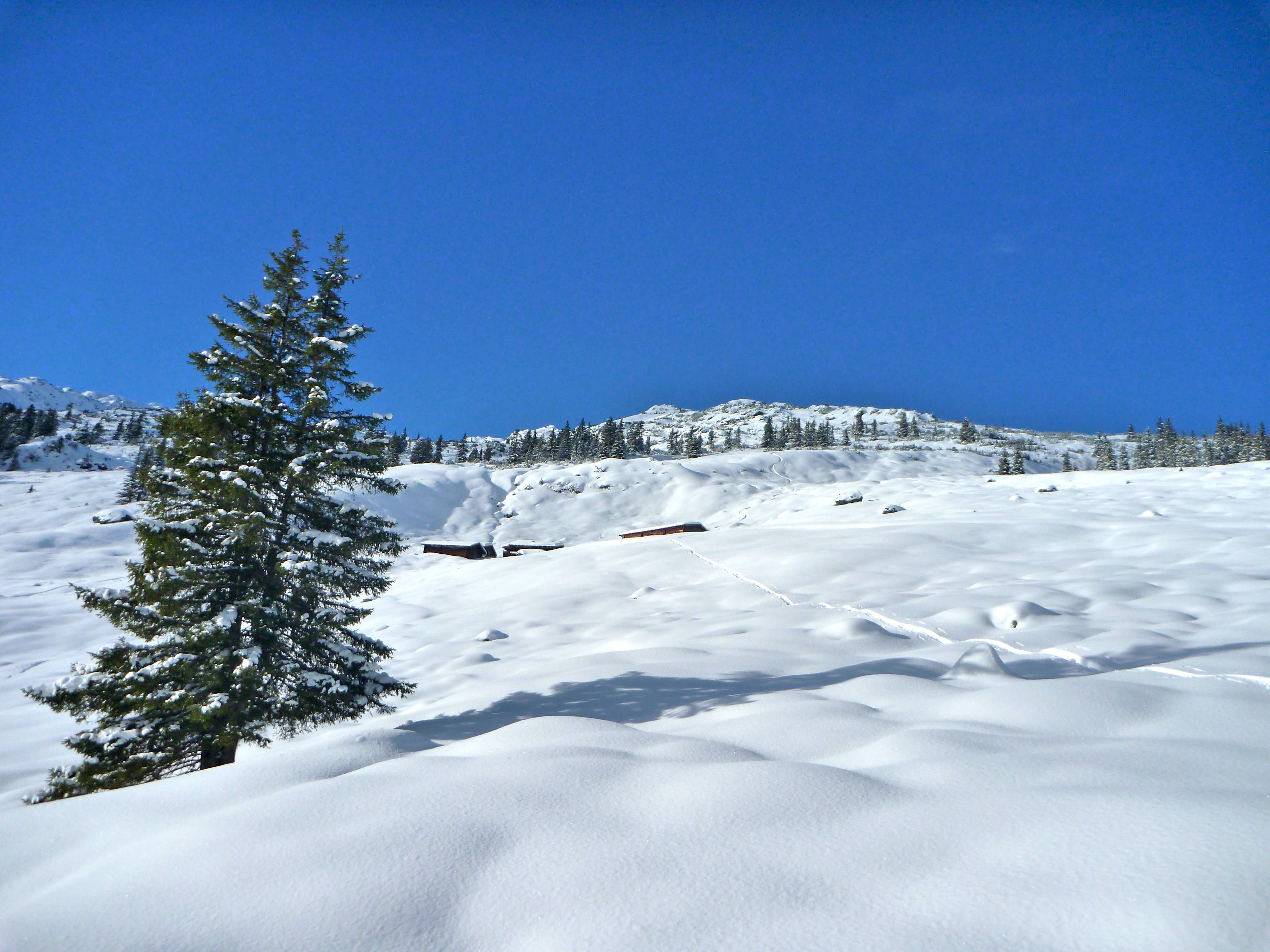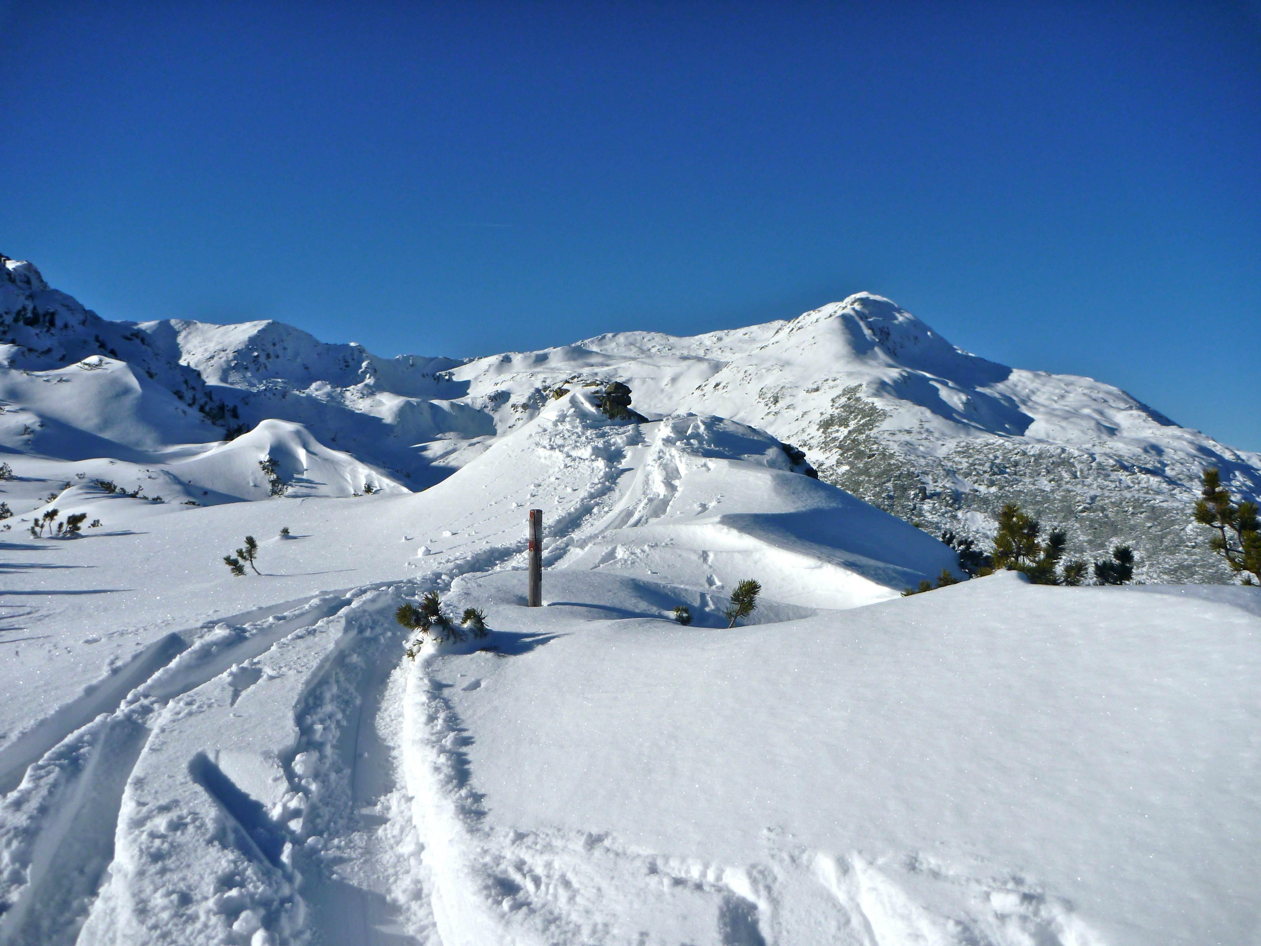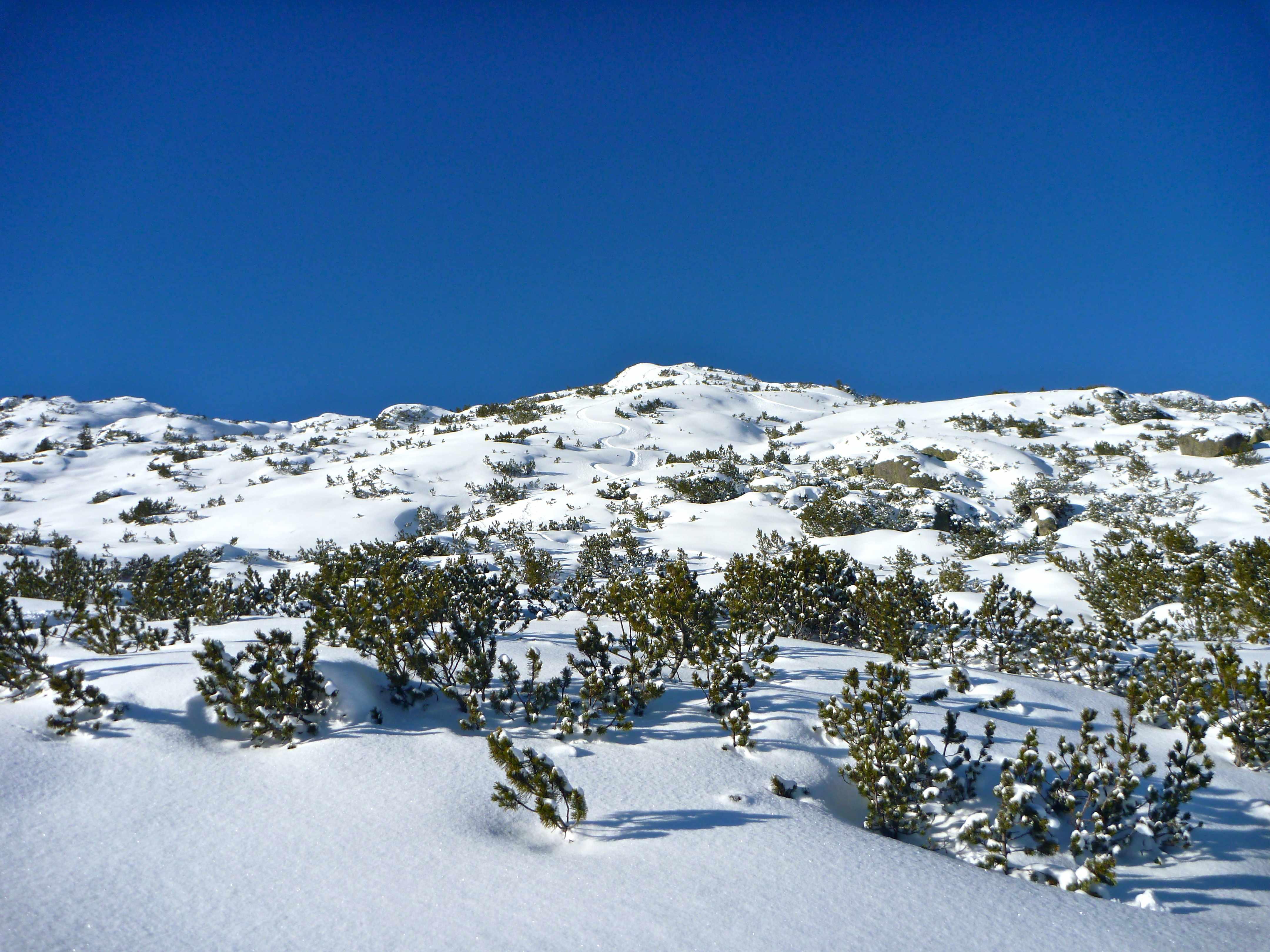 ....abgesehen vom Gipfelgrat war kein Windeinfluss erkennbar, auch der war bombensicher, da nur die Latschen zugeweht wurden.