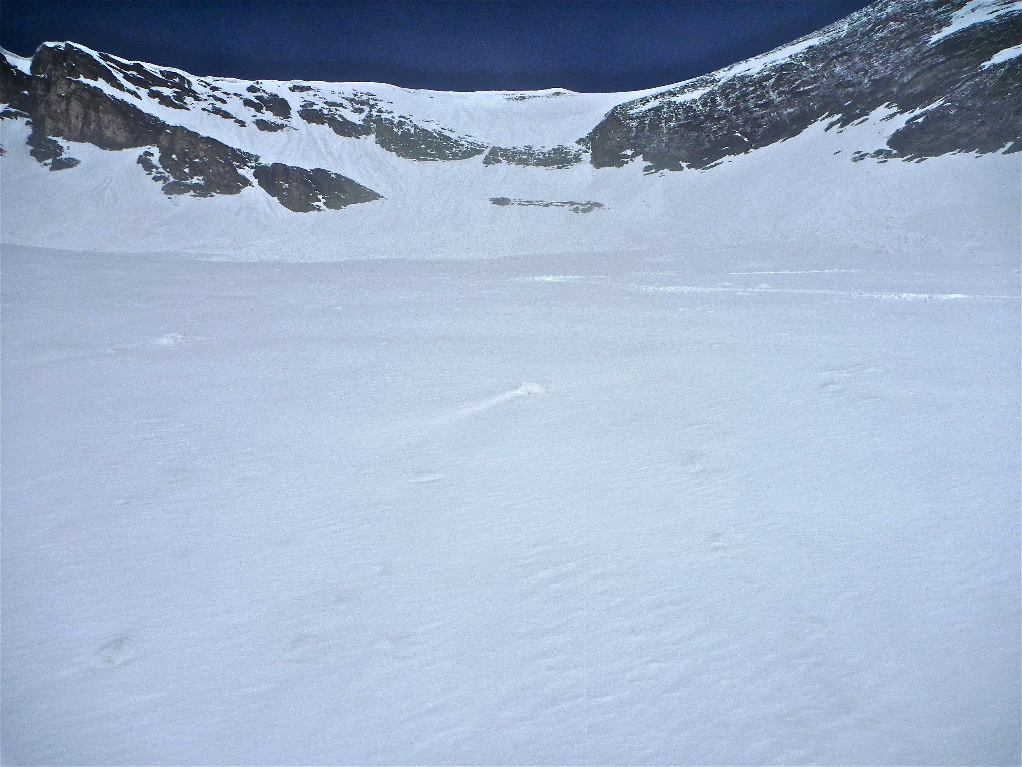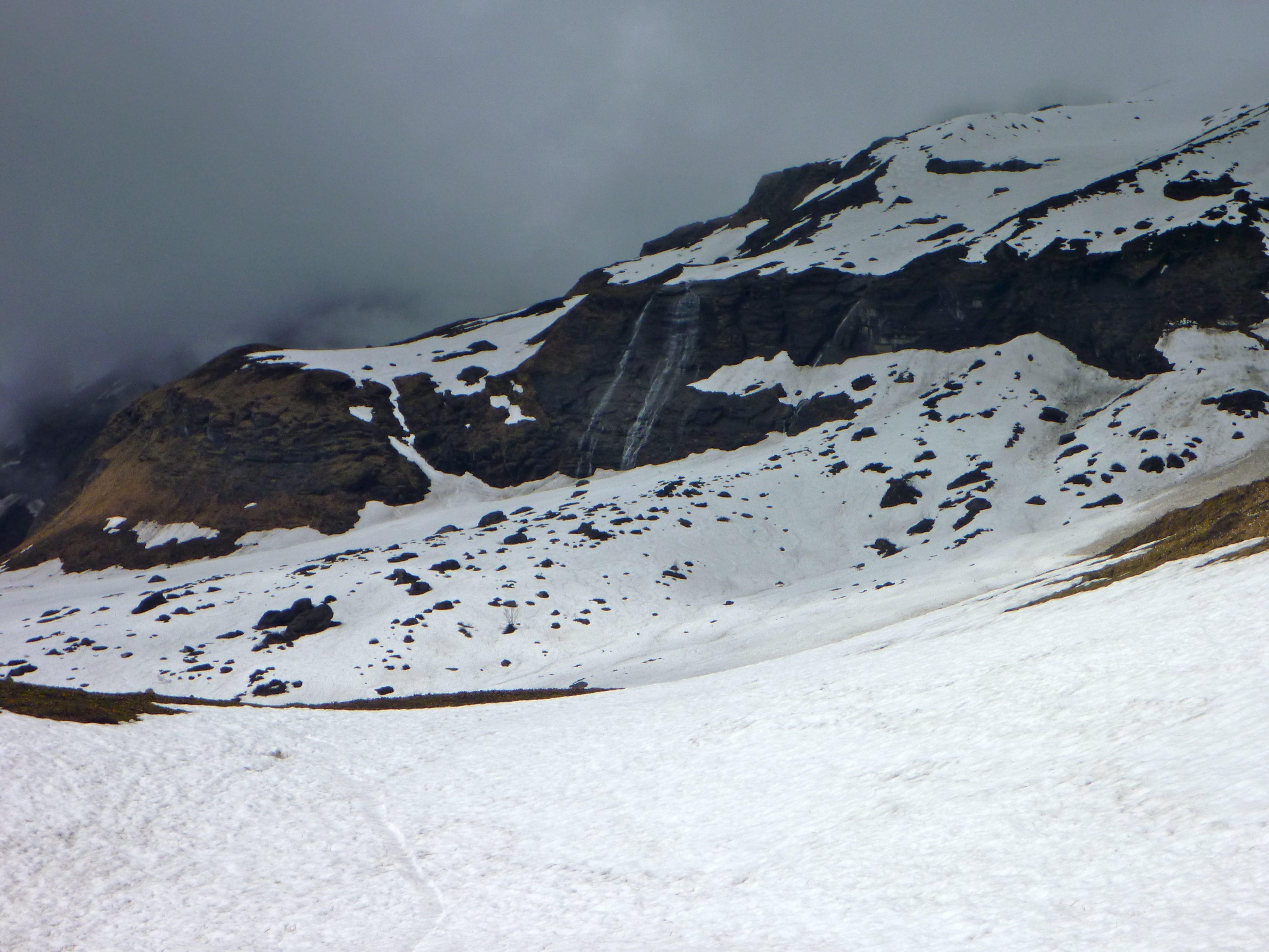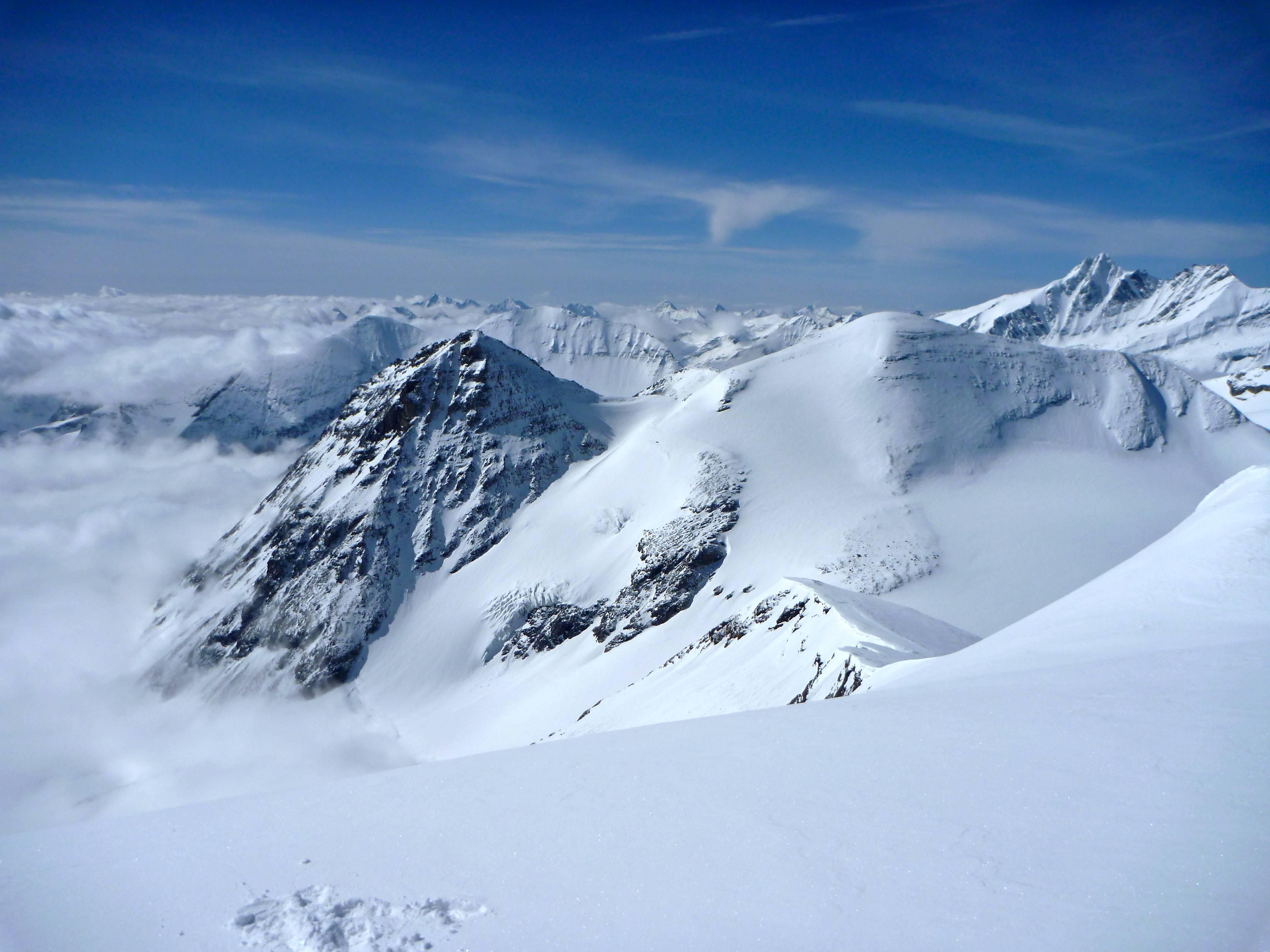 Start war bei Nebel um 4:30, dann gings zu Fuß bis zur Eichhornruhe (hätte auch eher anschnallen können), mit Skiern zur Käferleiten, zu Fuß hinauf, danach mit Skiern über Hochgruberkees, Gruberscharte zum Gruberbiwak, weiter mit Steigeisen zur Klockerin. Unten hats gestern einiges geregnet, oberhalb 2200m feucht geschneit, die Bedingungen waren perfekt, bis zum Biwak ging`s ohne Harscheisen und abgesehen von ca. 100hm rund um die Biwakschachtel, wär auch die Klockerin mit Skiern zu begehen gewesen, nur hatte ich da das Bild vom Mittwoch im Kopf...Am Gipfel der Klockerin hatte ich dann erstmals das Objekt der Begierde im Auge und musste erkennen, dass dieses nicht befahrbar ist und zum Kraxeln hat`s auch ein wenig heikel ausgeschaut, zumindest für einen Möchtegernalpinisten wie mich. Also nutzte ich die perfekten Bedingungen um mir die direkte Variante von der Klockerin zum Hochgruberkees einmal live anzusehen. Das hat sich echt ausgezahlt, so gut kann man die Flanke wahrscheinlich selten erwischen. Bis zur Engstelle (ca. 2m breit) erfolgte die Abfahrt in einem imposanten Schneeballbalett, darunter mussten kurz Lawinenstriche gequert werden, bis es wieder softer wurde. Der Rest der Abfahrt war bis auf ca. 2200m zwar sichtmäßig getrübt, trotzdem ein wahrer Genuss, darunter hat`s halt gerupft, man kommt aber über Lawinenstriche noch bis auf ca. 1300m, dann noch ein Spaziergang und um 11:00 war ich wieder beim Auto.