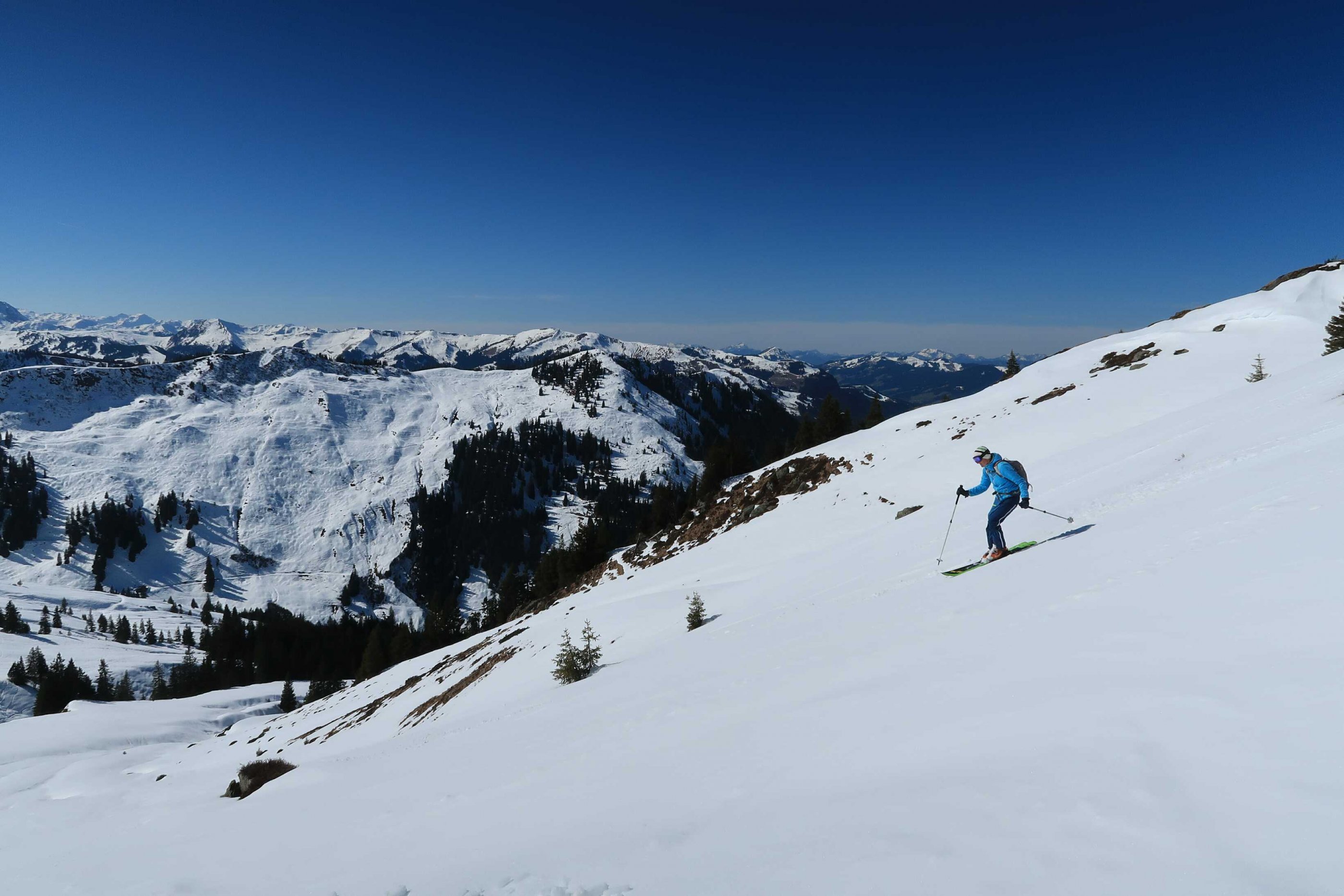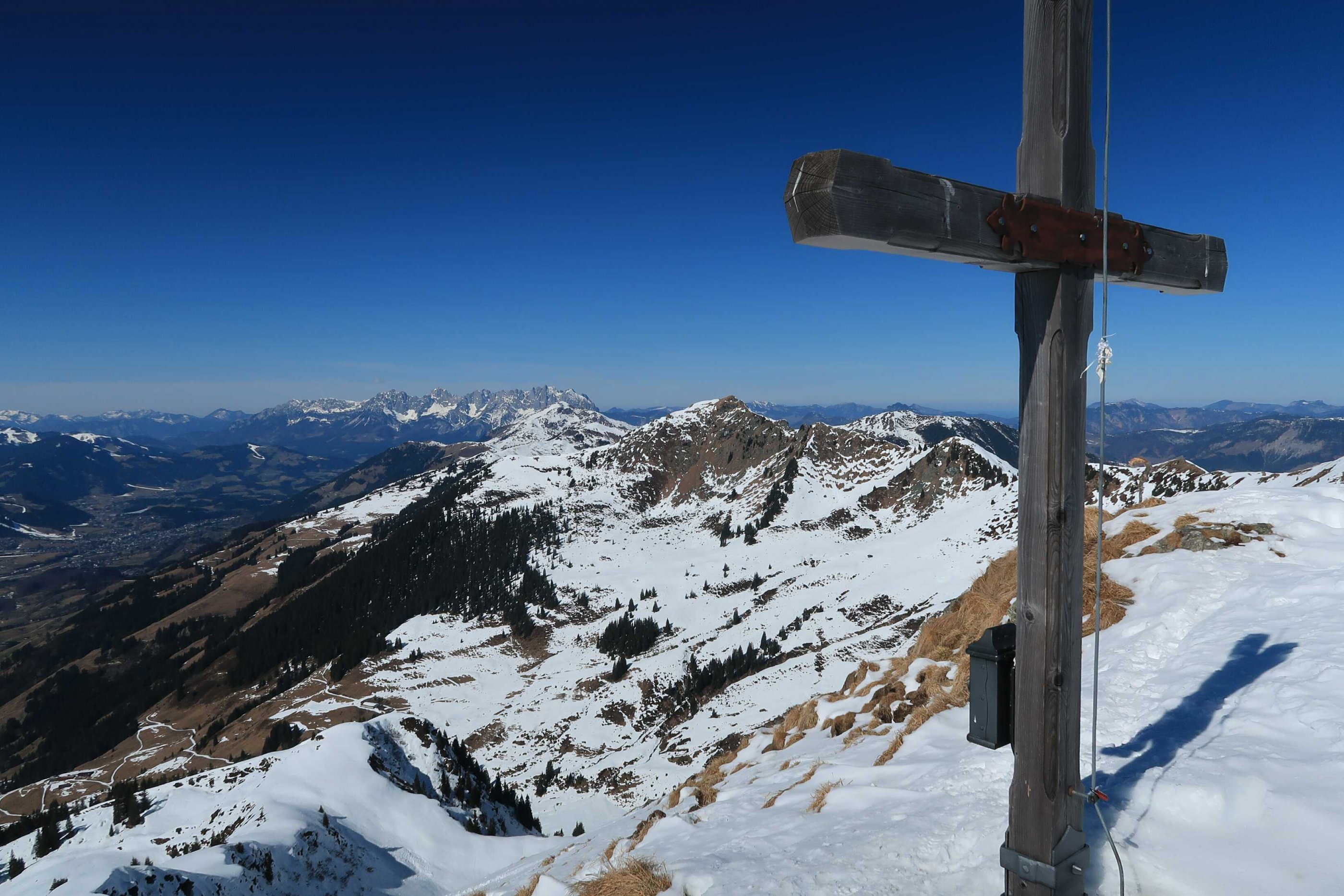 Vom PP im Auracher Graben ca. 3 Minuten Ski getragen. Dann im Aufstieg alles mit Ski, der Fahrweg hat aber einige kurze apere Unterbrechungen, die bei der Rückfahrt Abschnallen erfordern. Zuerst bei der Brachofenbachalm (was für ein Name !) rechts über die O-Hänge hinauf auf den Laubkogel (1815). Abfahrt über die schönen weiten O-Hänge bei perfektem Firn retour zur Brachofenbachalm. Weils so gut ging nochmal hinauf und oben links haltend auf den Hahnenkampl (1812). Abfahrt zuerst am Rücken südwärts Richtung Rauber, dann über die recht zügigen Hänge ostseitig hinab in den hintersten Wildalmgraben. Schon wieder Firn vom Feinsten. Im Graben wieder angefellt und über die mittlerweile sonnigen Westhänge an der Staffalm vorbei auf die Sonnspitze (2062). Abfahrt retour über den steilen südwestseitigen Gipfelrücken und schöne Hänge bis in den Graben auf ca. 1700m. Mist, schon wieder perfekter Firn ! Also nochmal angefellt und über die nordseitigen, harschigen Hänge hinauf auf den Kornbichl (1980). Nach gründlicher Rast um 14:45 direkt vom Gipfel über die recht zügigen W-Hänge wieder bei perfekten Firnverhältnissen zurück in den Wildalmgraben und retour zum PP. Eine meiner besten Touren in dieser armseligen Wintersaison.