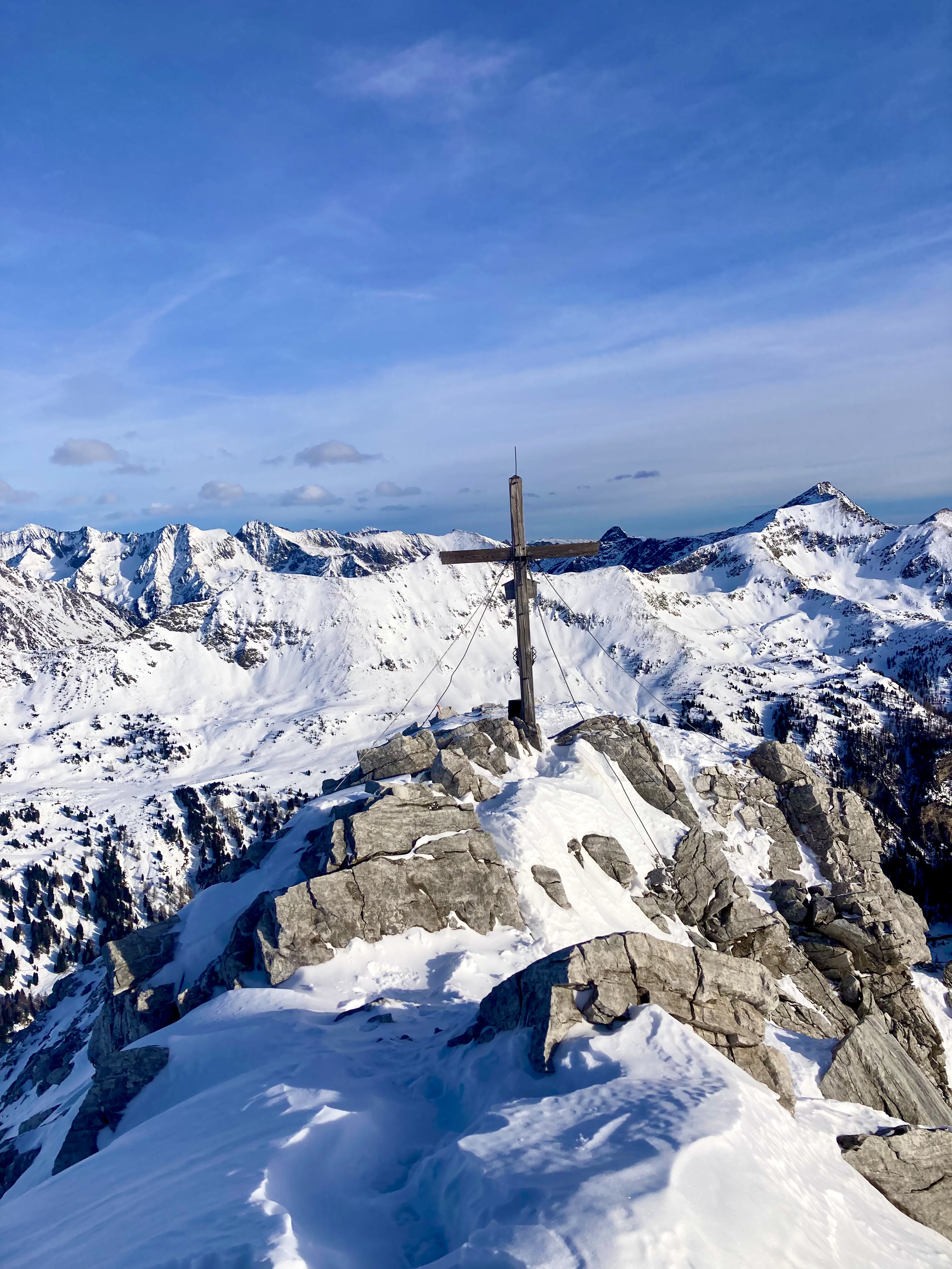 Um dem Regen in Salzburg zu entfliehen wählten wir Tweng als Zielgebiet… kurz nach Obertauern zeigte sich in diffusem Licht bereits die Sonne *jackpot* 😁 Am Parkplatz gegen 11:00 Uhr angekommen ganze 5 Autos… wie genial 😀 Die Forststrasse bis zu den Almen bzw. von dem was noch steht mit guter Schneeauflage, ab dort auch angenehm aufgefirnter Schnee… Bis zum Skidepot unter dem Gipfel war ein Longsleeve ausreichend da die Sonne bereits noch präsenter und es komplett windstill war, absolut angehnem, wie der Wind in den letzten Tagen da oben gegangen sein muss lassen die Schneeformen nur erahnen… Am Gipfel selbst wars dann doch zeitweise windig, was anderes hätte ich mir auch nicht erwartet… und die dicke Daune nötig… Abfahrt über Südhang super fein gegangen… Fazit.: Ein Unerwartetes Traum Tagal…😊
